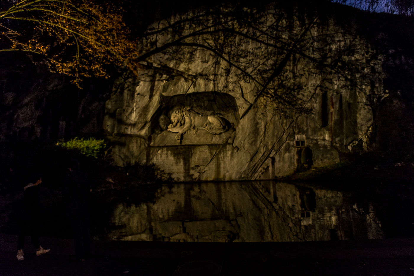 Dass der schlafende Löwe mit einer neuen, nach Plan Lumière definierten Beleuchtung auch nachts im neuen Glanz erstrahlt, war den meisten Besuchern der Illumination vor dem KKL entgangen.