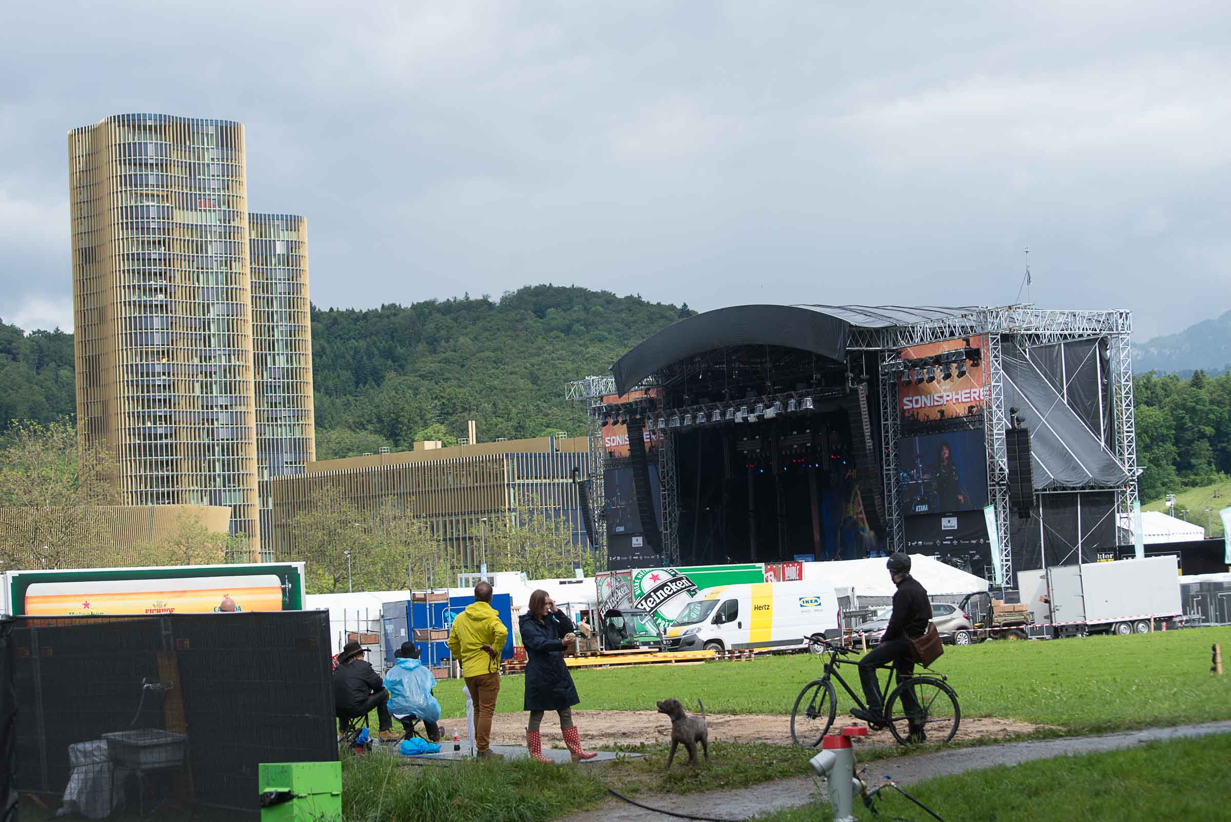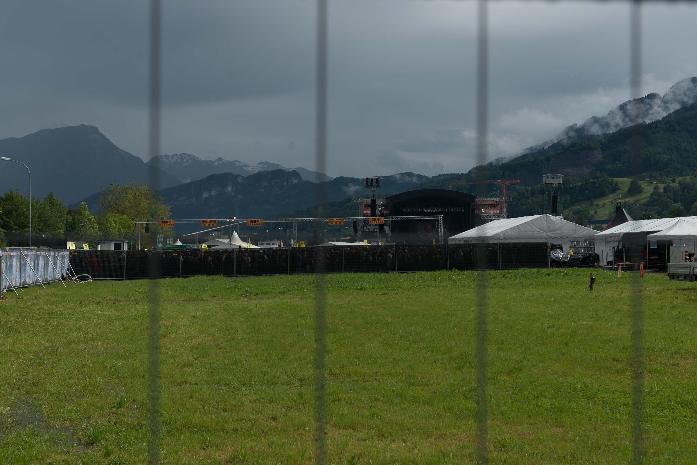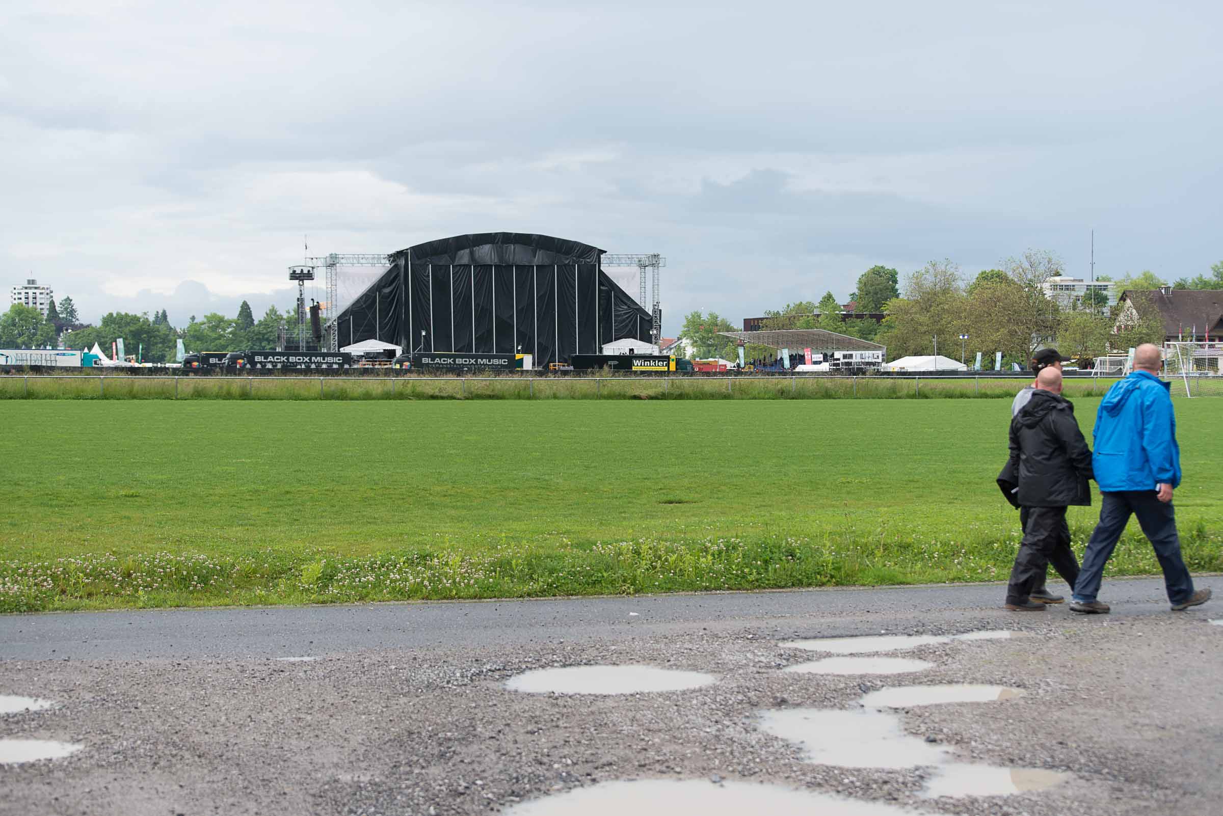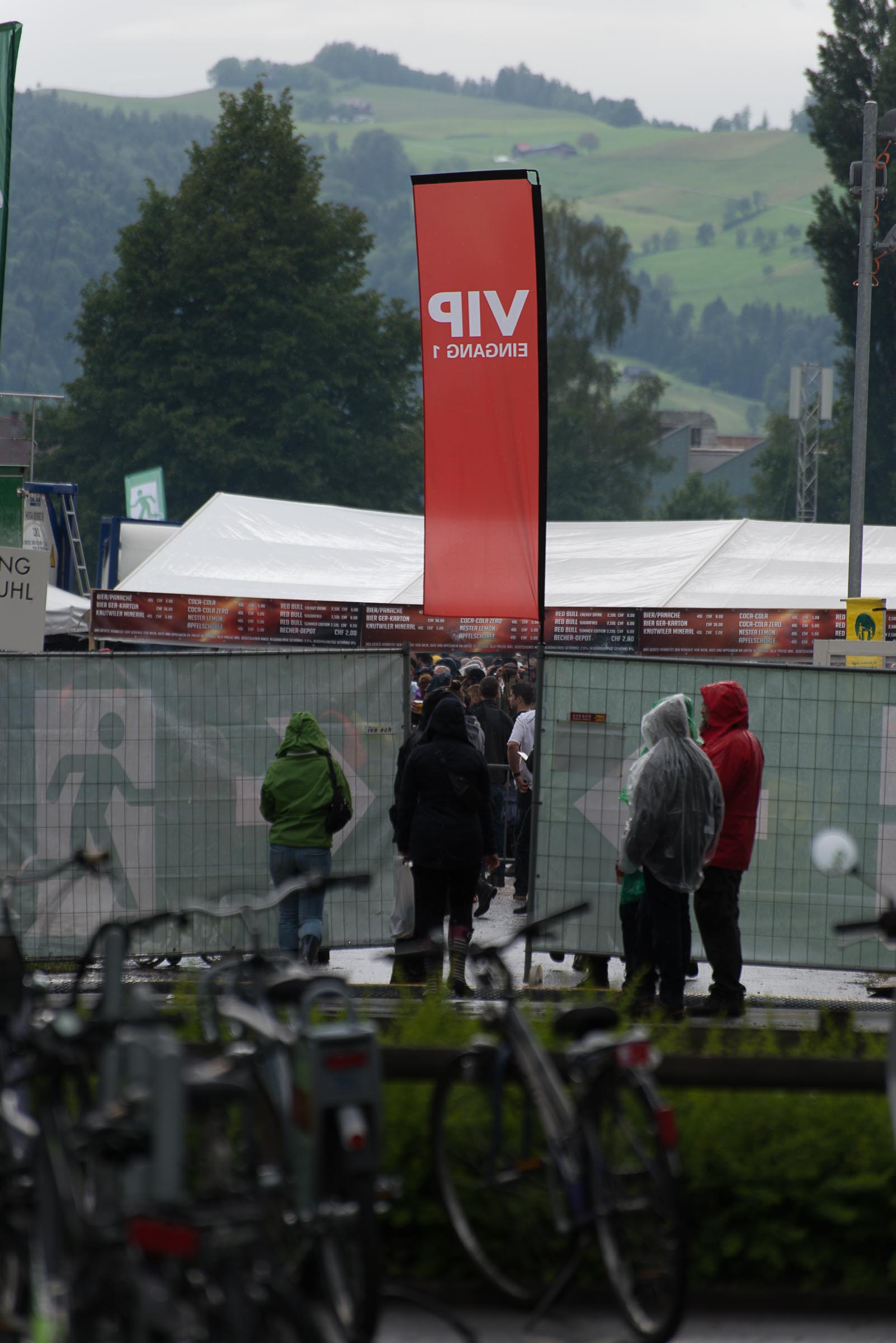 Morastig ist es, das Gelände. Und all jene, die bereits am Freitag vor Ort waren, erlebten den Regen hautnah. Ich hörte von Besuchern, dass sie nach vier Stunden schnell mal nachhause gingen um die Kleider zu wechseln. Quartierbewohner geniessen, dass das Konzert direkt vor Ihrer Türe stattfindet. Ins Letzi wären sie nie gegangen, aber hier auf der Allmend - das muss man erleben -, sagen sie.