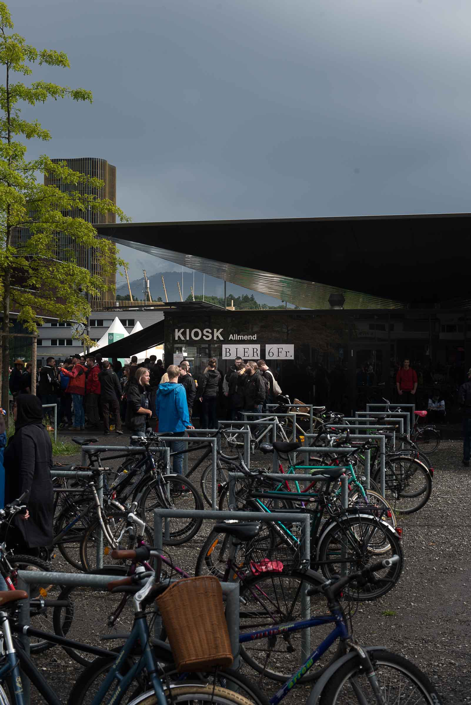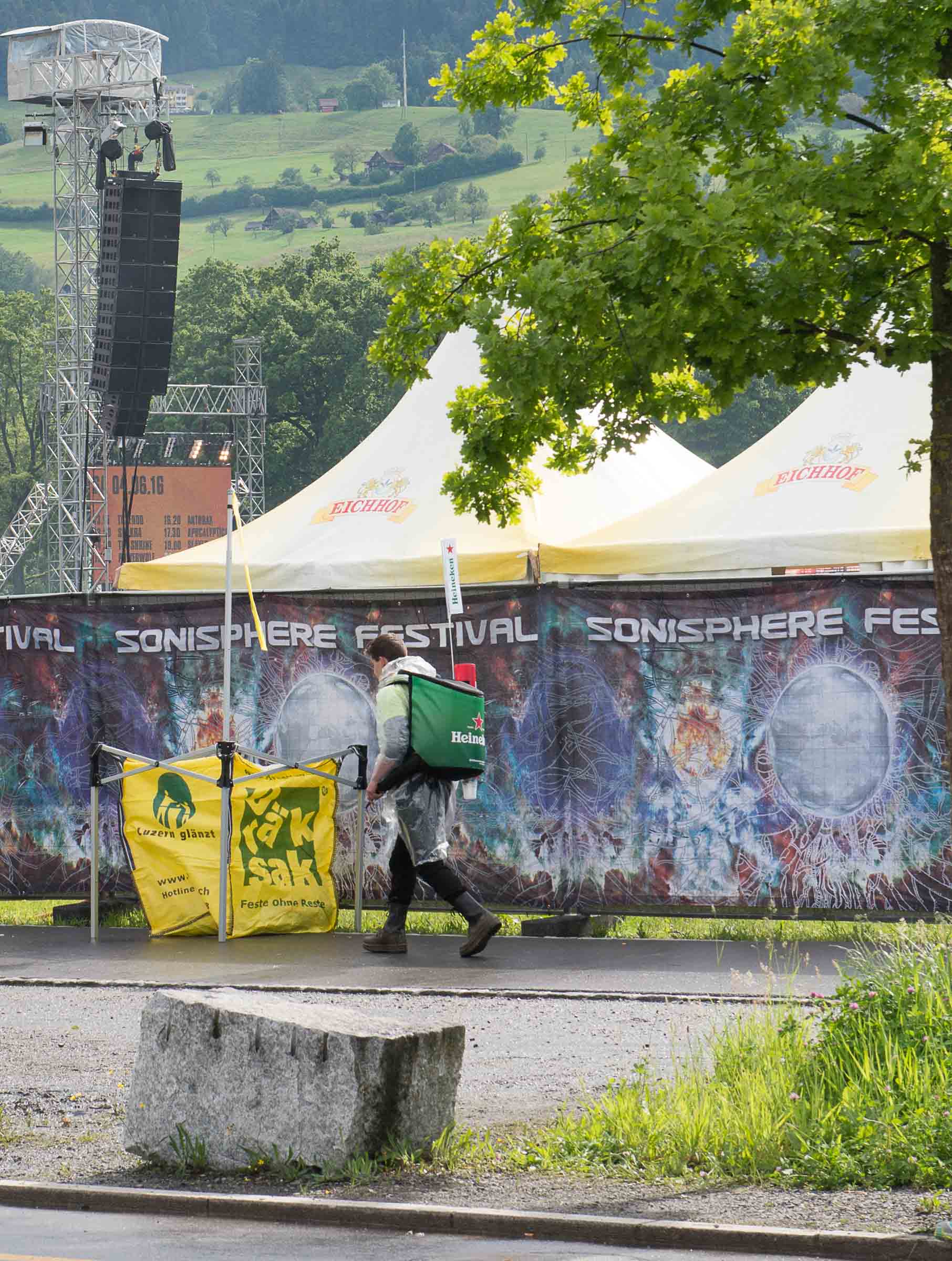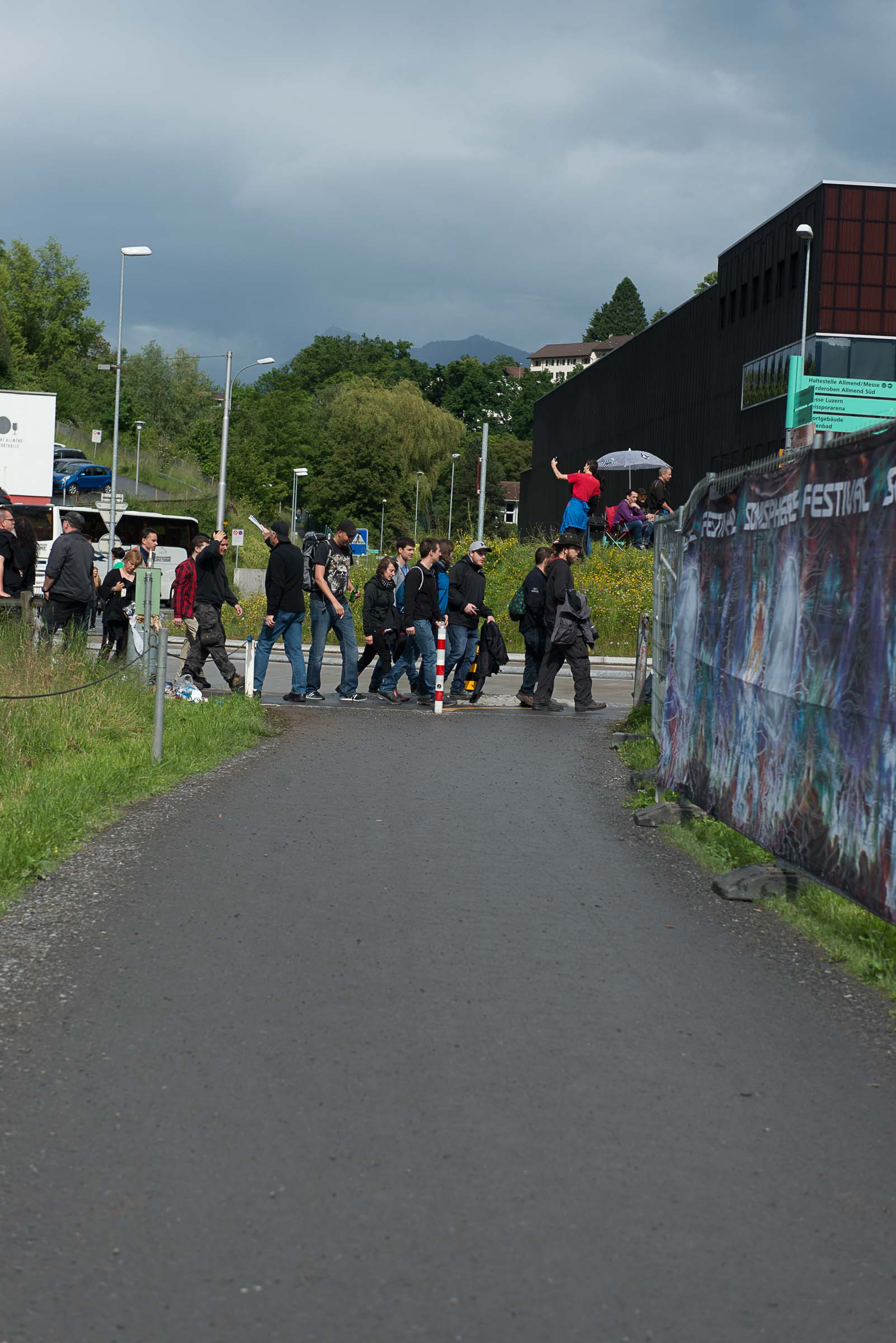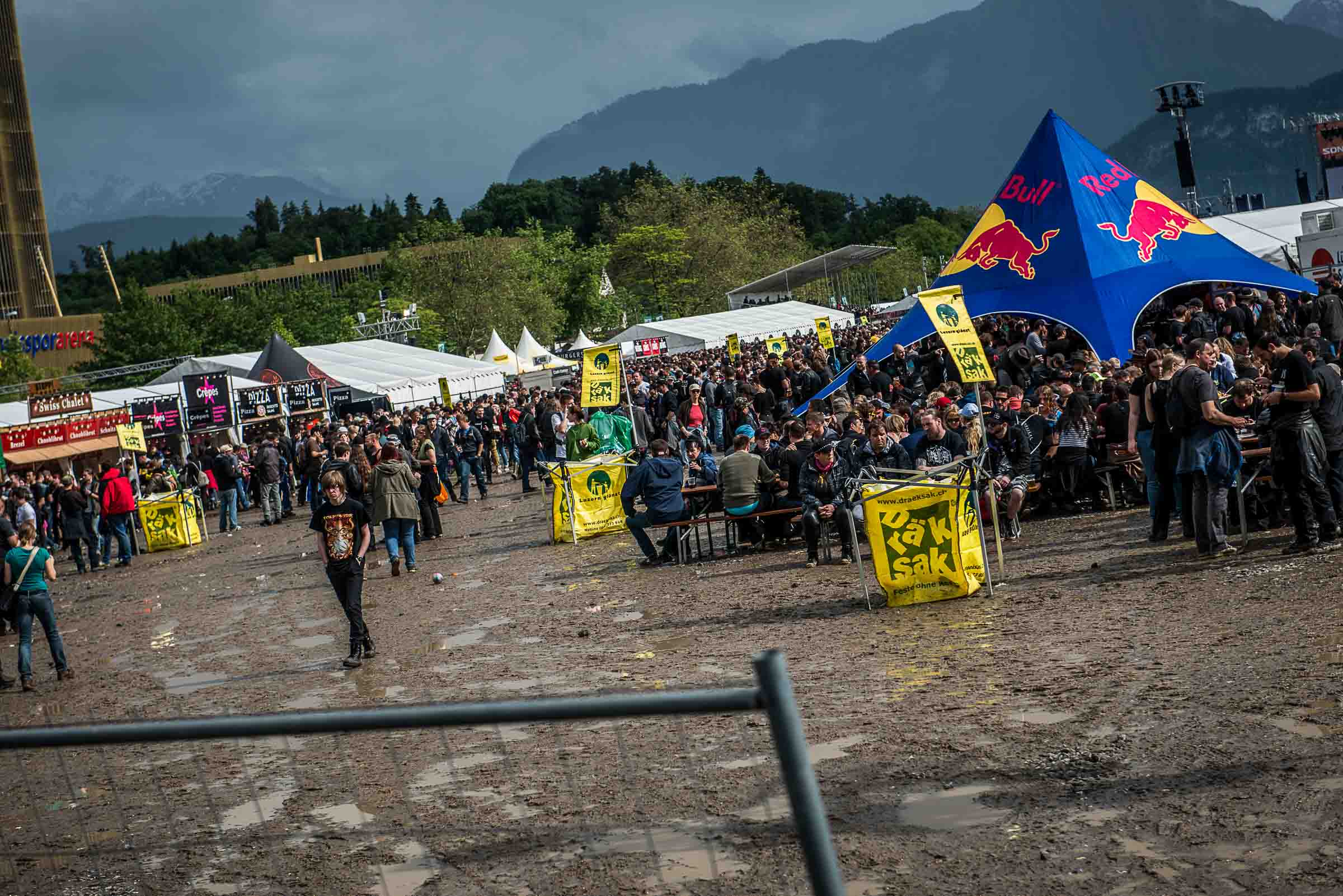 Morastig ist es, das Gelände. Und all jene, die bereits am Freitag vor Ort waren, erlebten den Regen hautnah. Ich hörte von Besuchern, dass sie nach vier Stunden schnell mal nachhause gingen um die Kleider zu wechseln. Quartierbewohner geniessen, dass das Konzert direkt vor Ihrer Türe stattfindet. Ins Letzi wären sie nie gegangen, aber hier auf der Allmend - das muss man erleben -, sagen sie.