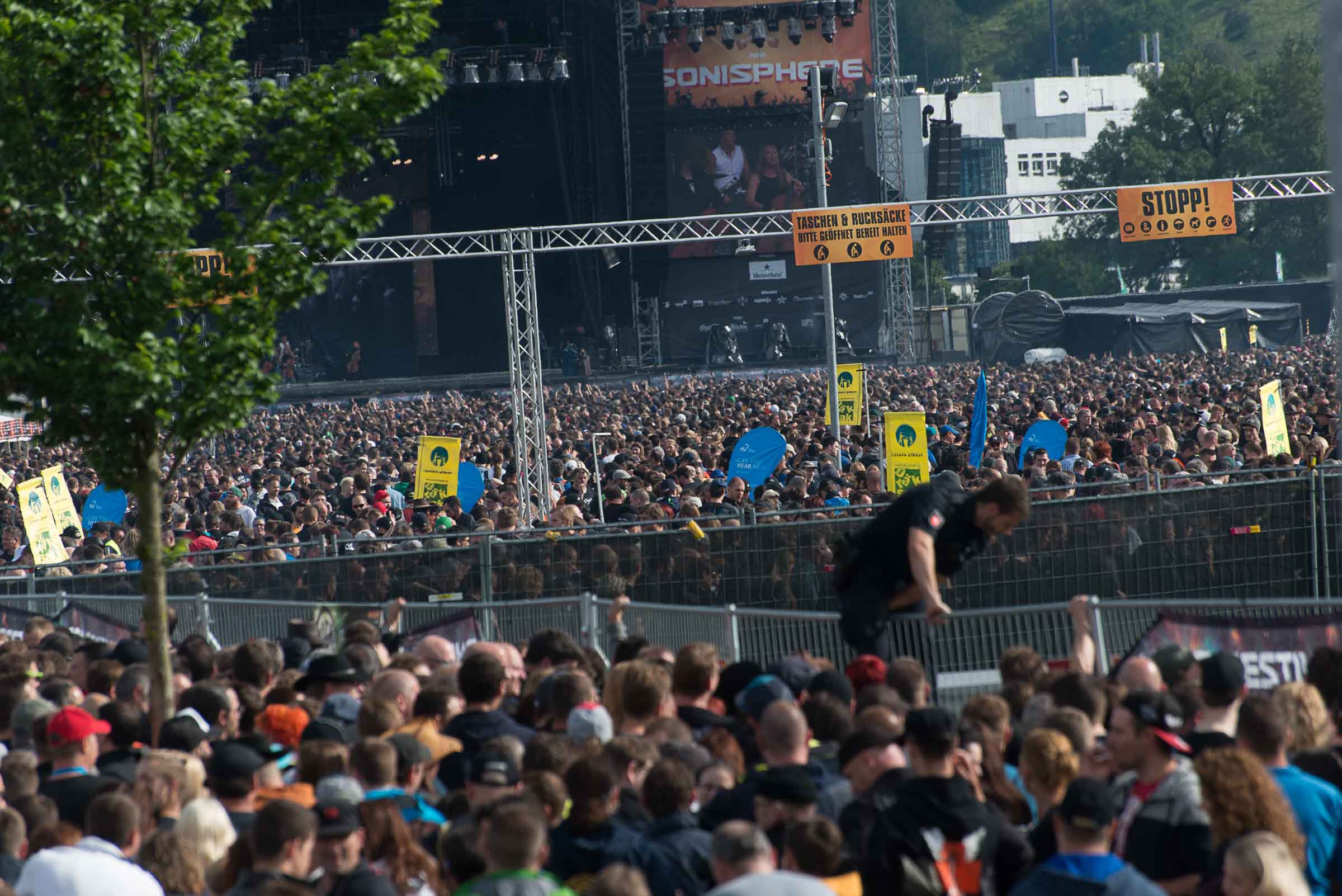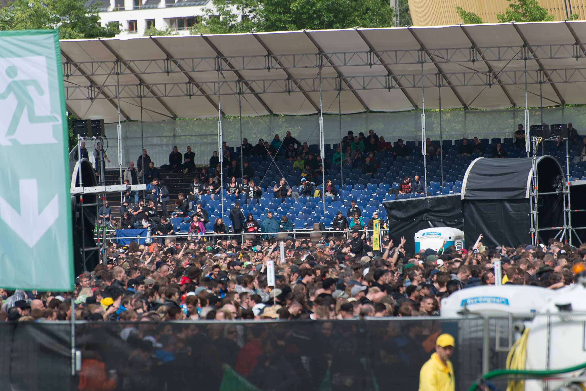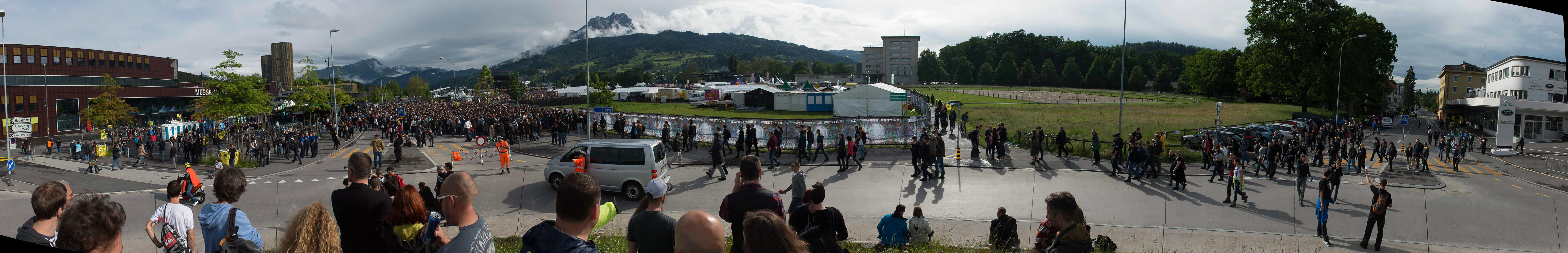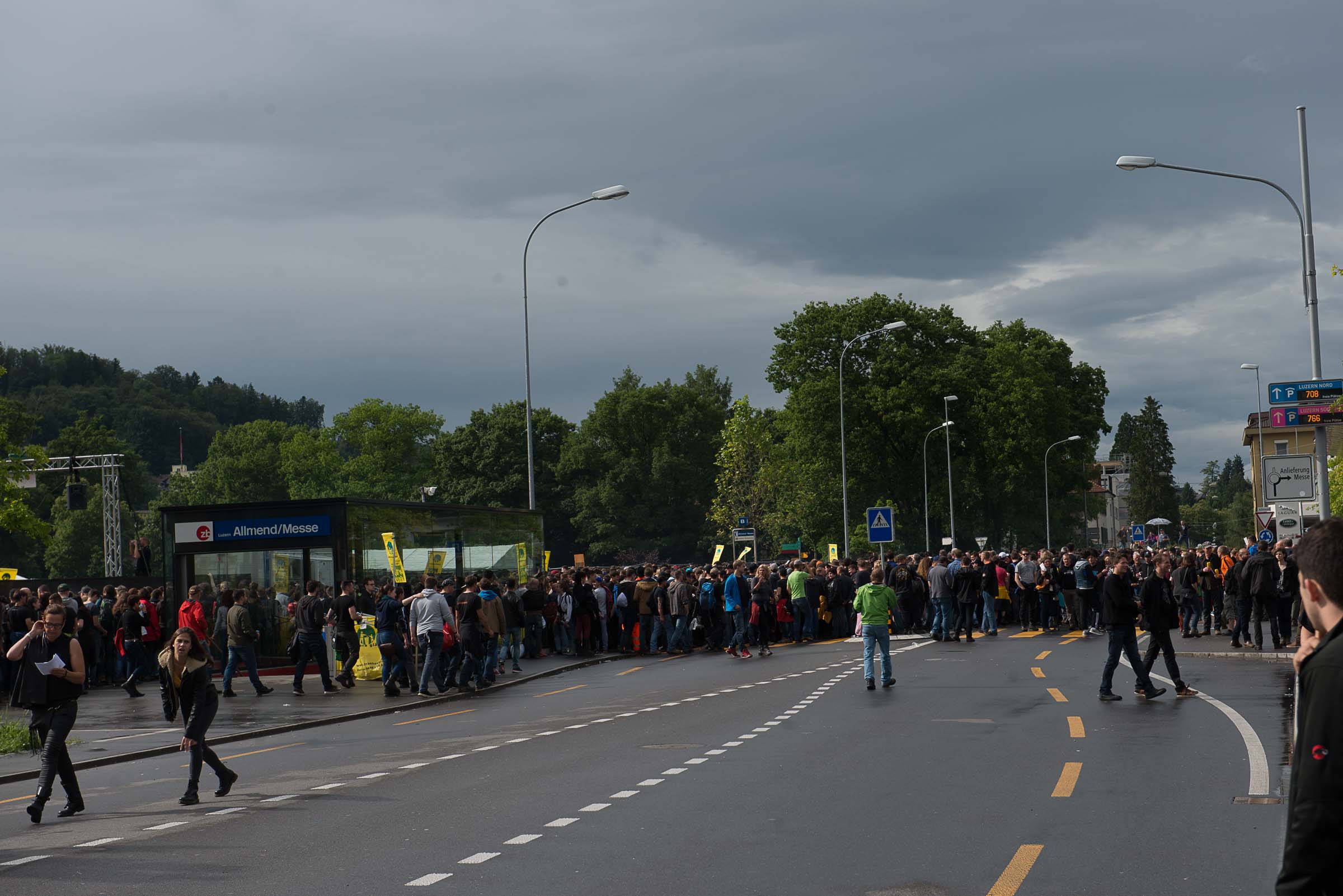 Morastig ist es, das Gelände. Und all jene, die bereits am Freitag vor Ort waren, erlebten den Regen hautnah. Ich hörte von Besuchern, dass sie nach vier Stunden schnell mal nachhause gingen um die Kleider zu wechseln. Quartierbewohner geniessen, dass das Konzert direkt vor Ihrer Türe stattfindet. Ins Letzi wären sie nie gegangen, aber hier auf der Allmend - das muss man erleben -, sagen sie.