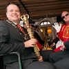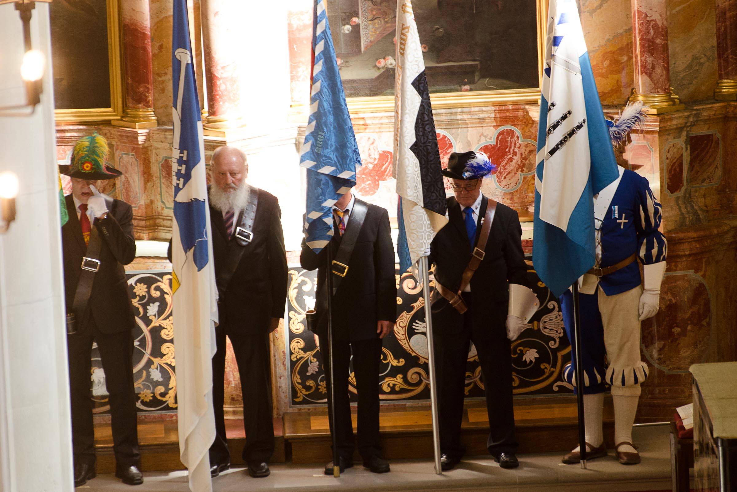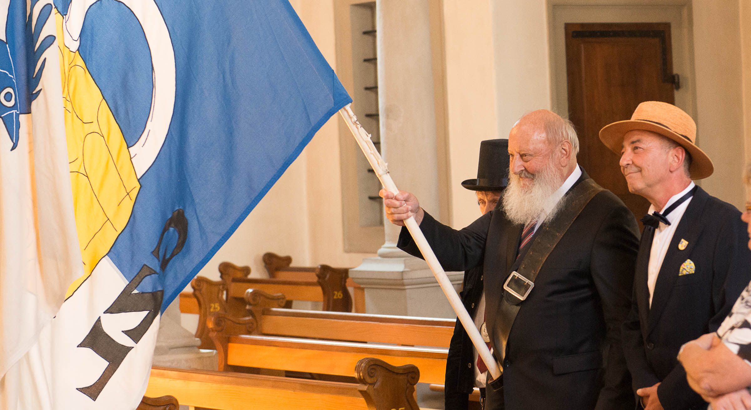Der Bannerherr zu Fuss, Erich, darf das neue Banner entgegennehmen.