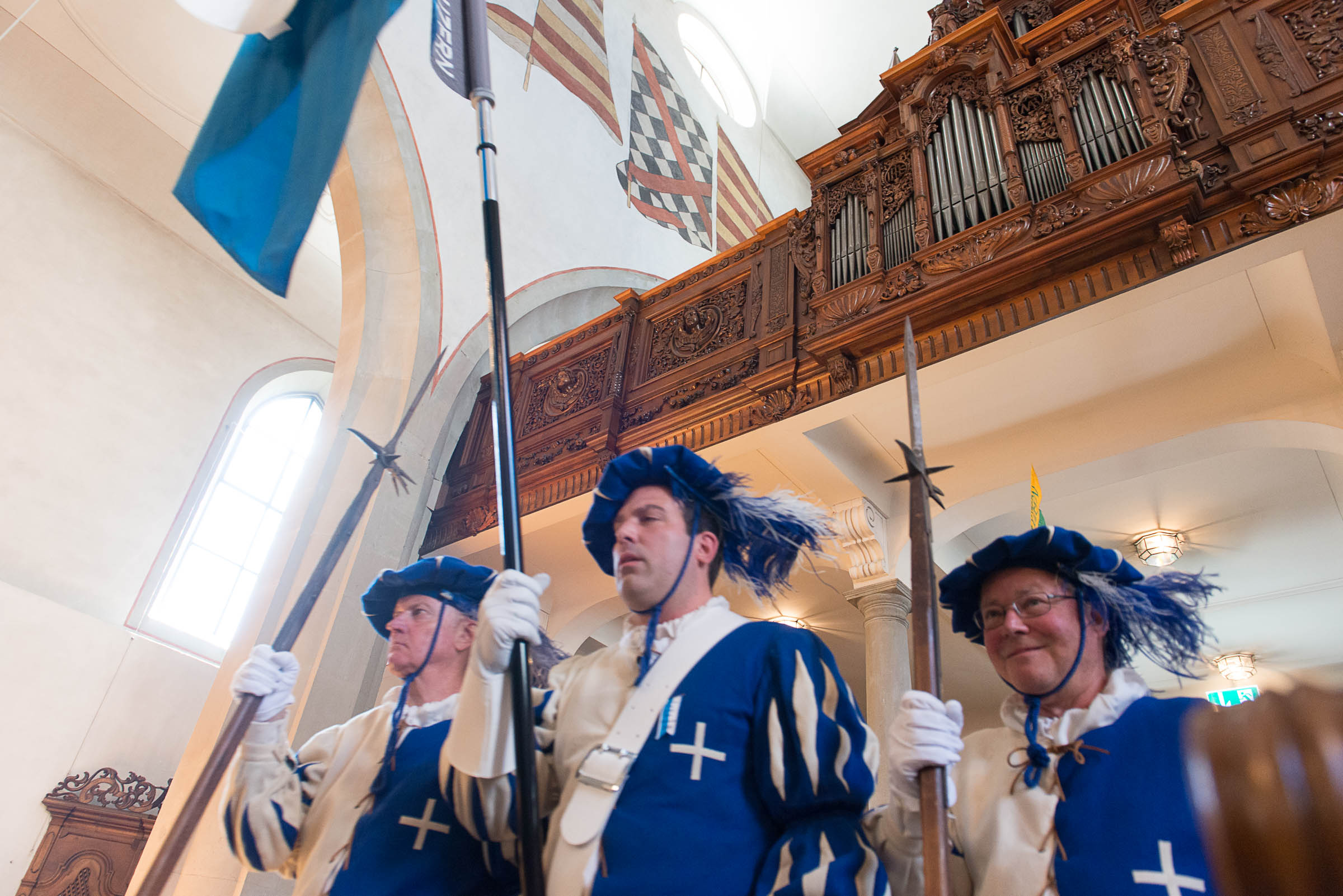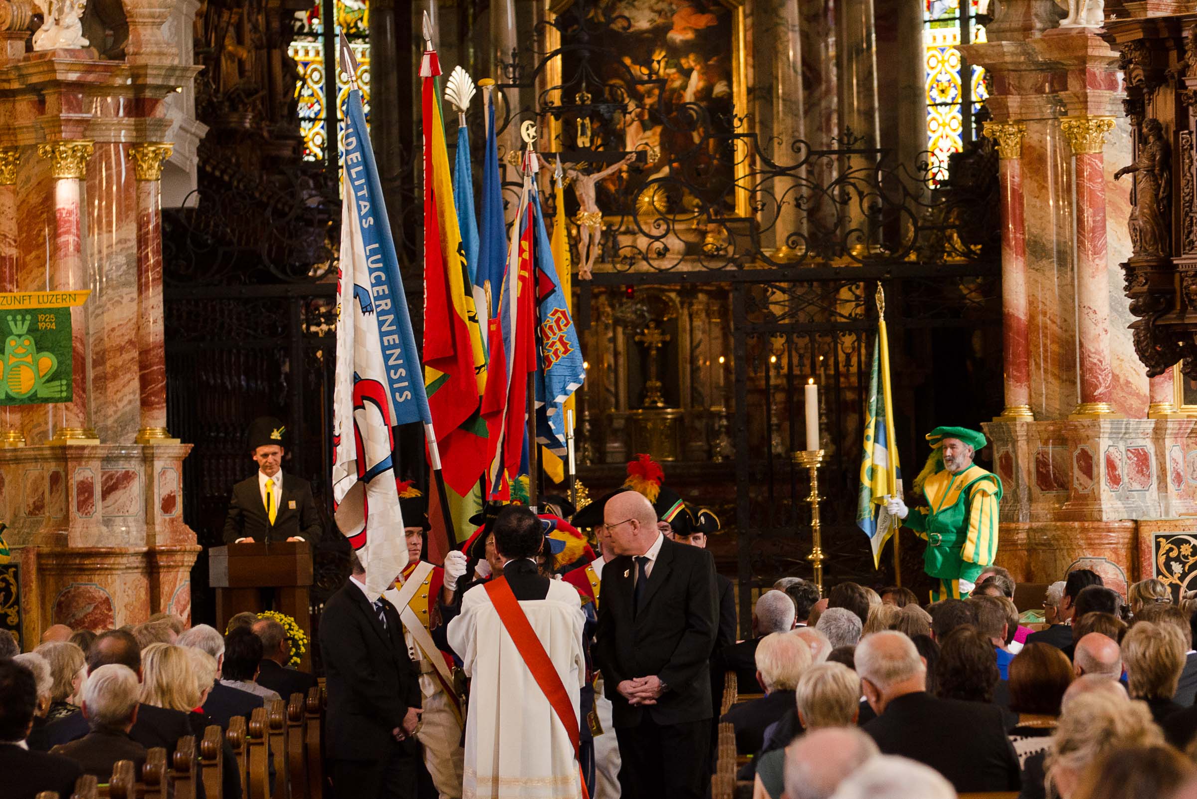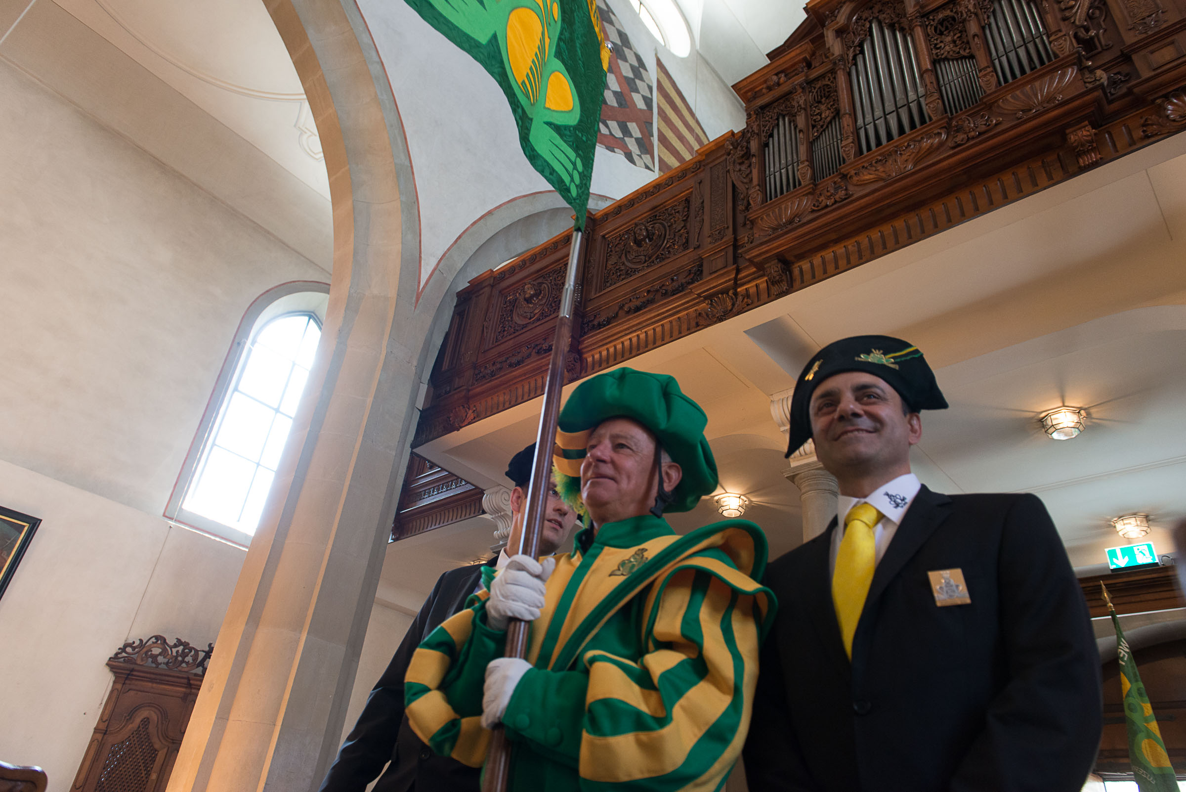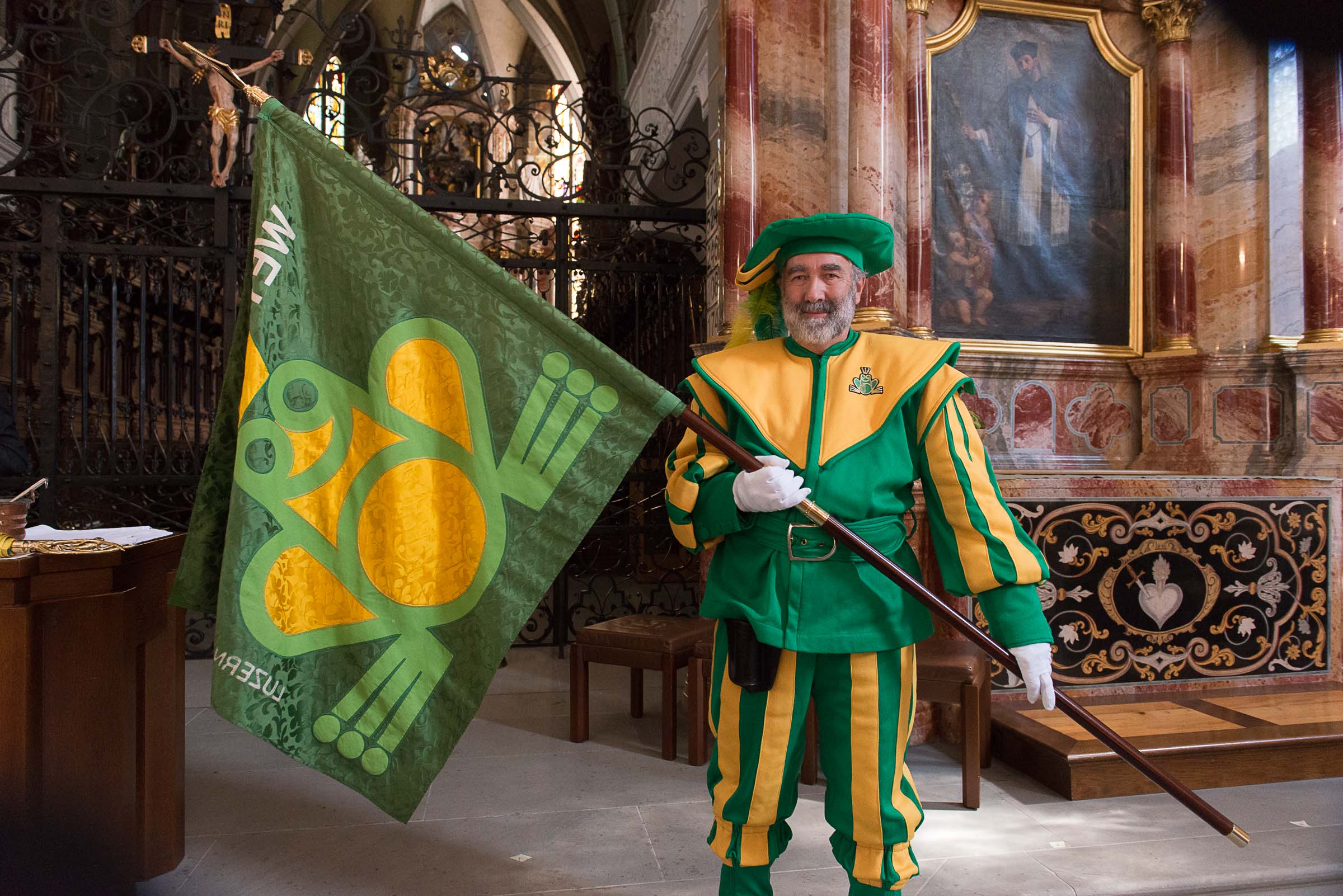 Pünktlich um 14.30 Uhr beginnt die Zeremonie der Bannerweihe in der Franziskanerkirche. Zwischen den zwei Photos liegen 40 Jahre. Zeit für ein neues Banner der Zunft mit Ursprung aus dem Weyquartier in Luzern.