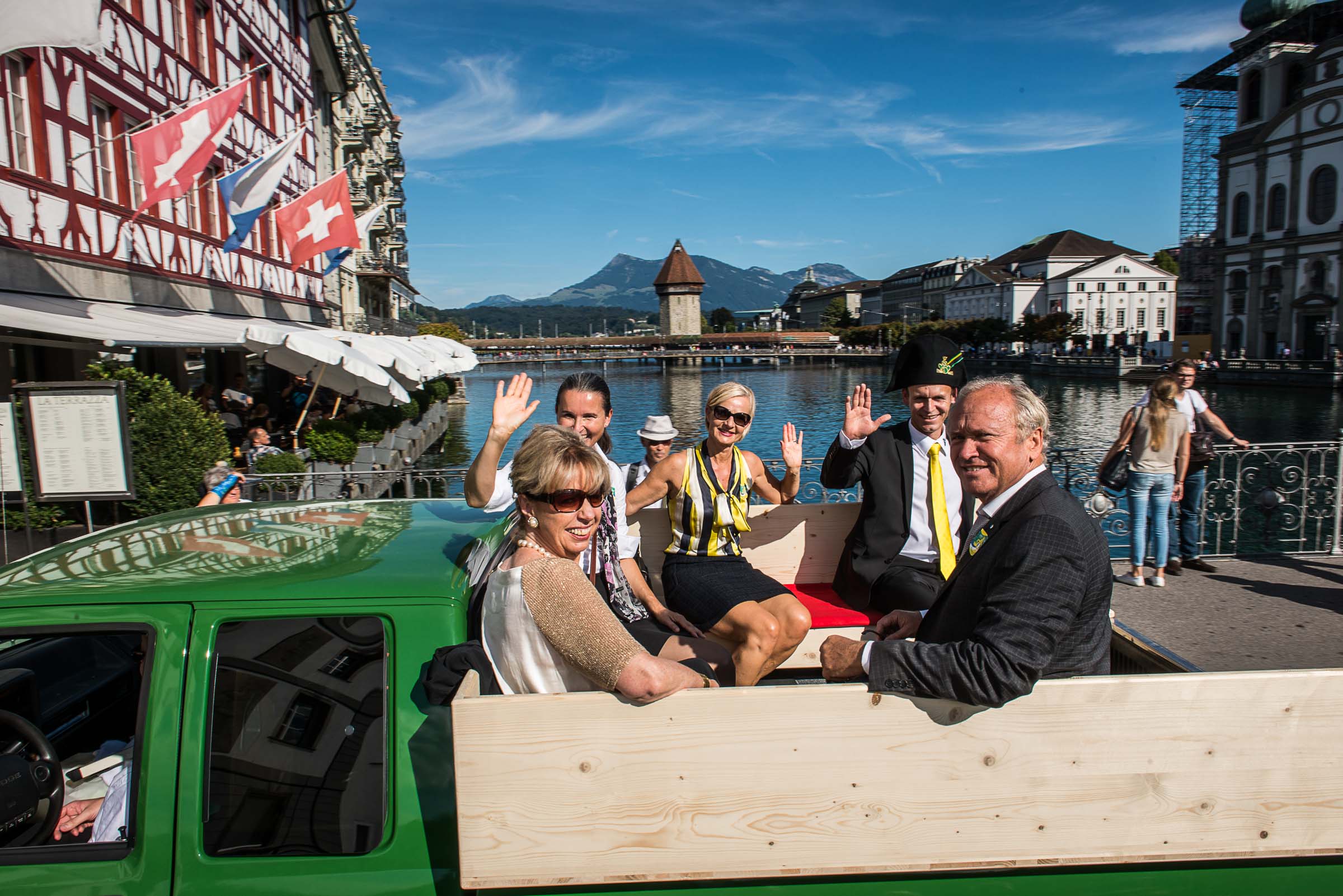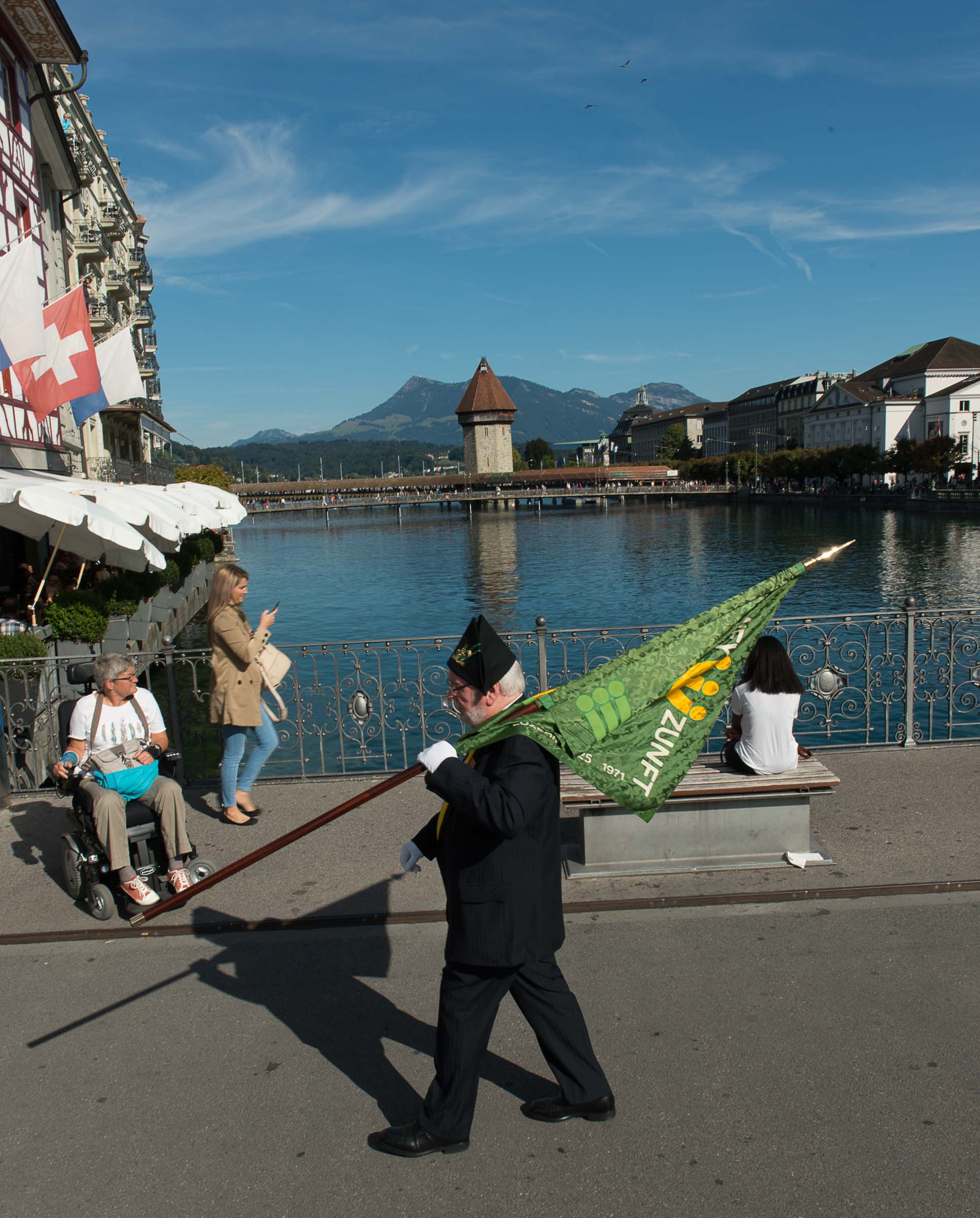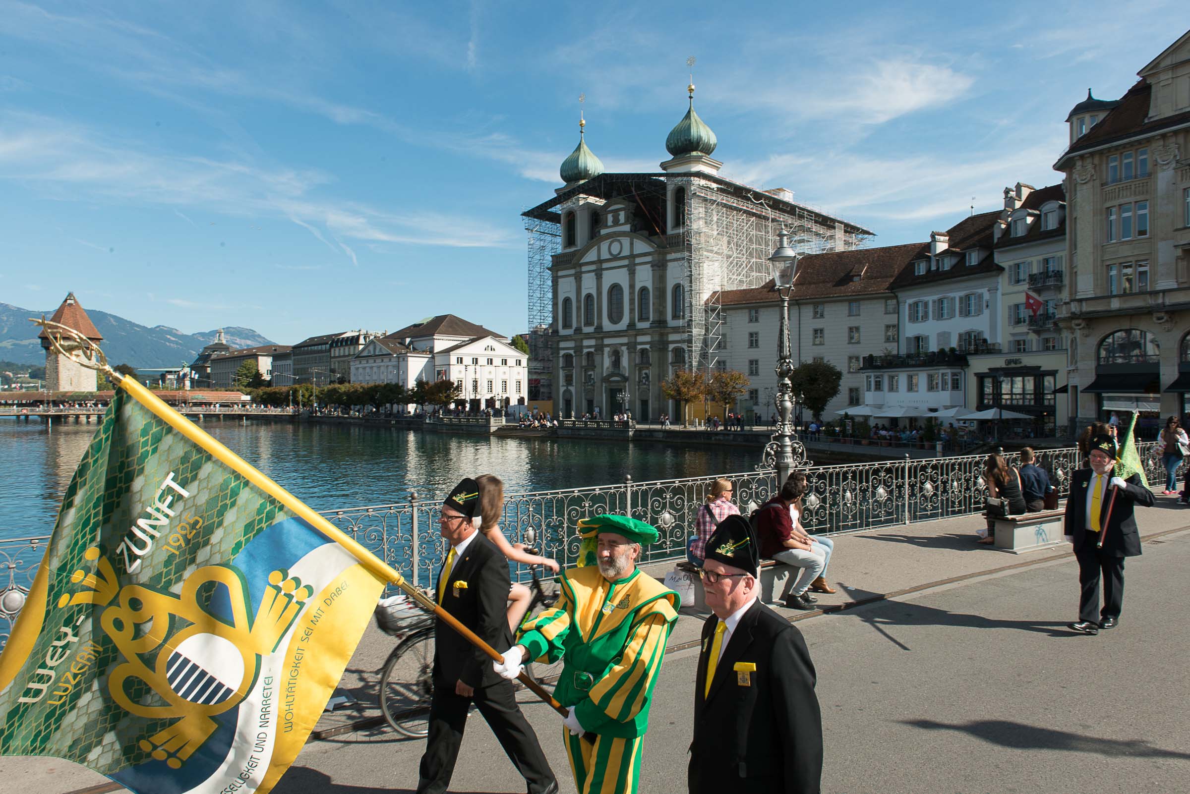 Der anschliessende Umzug durch die Altstadt Luzern, nach dem samstäglichen Ladenschluss, führte die Festgesellschaft via Grendel an photoschiesswilligen Chinesischen Touristen ins Hotel Schweizerhof.