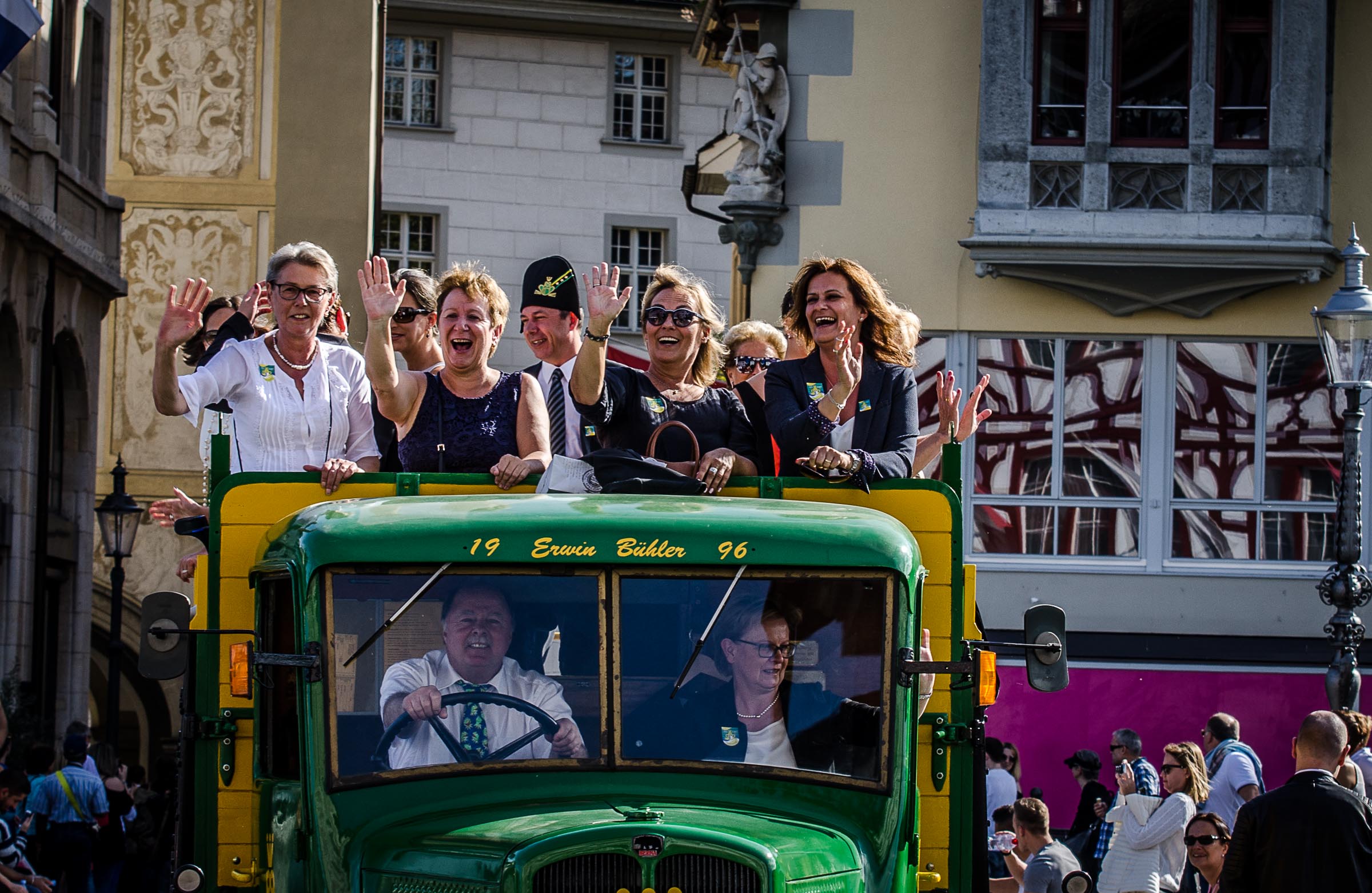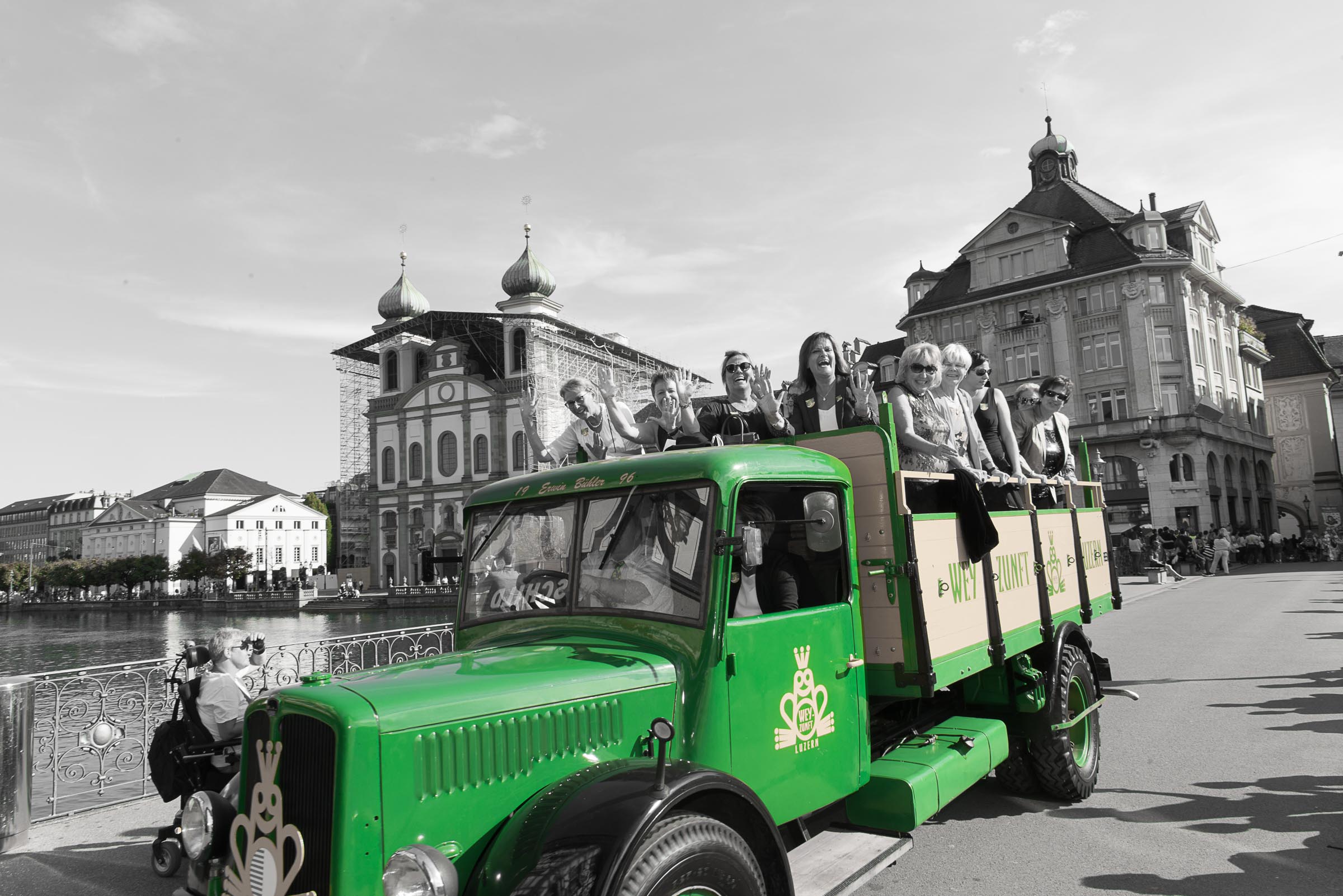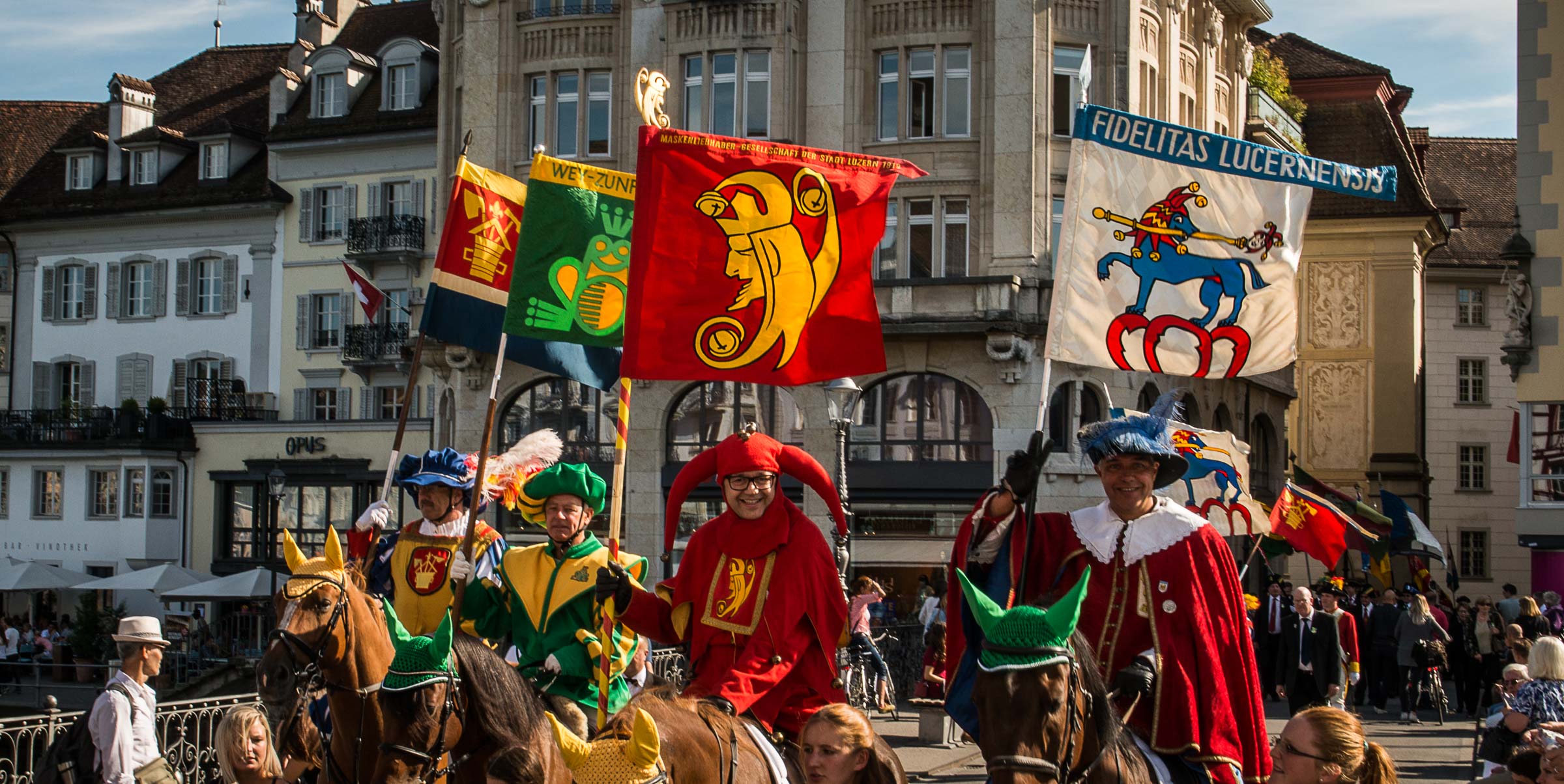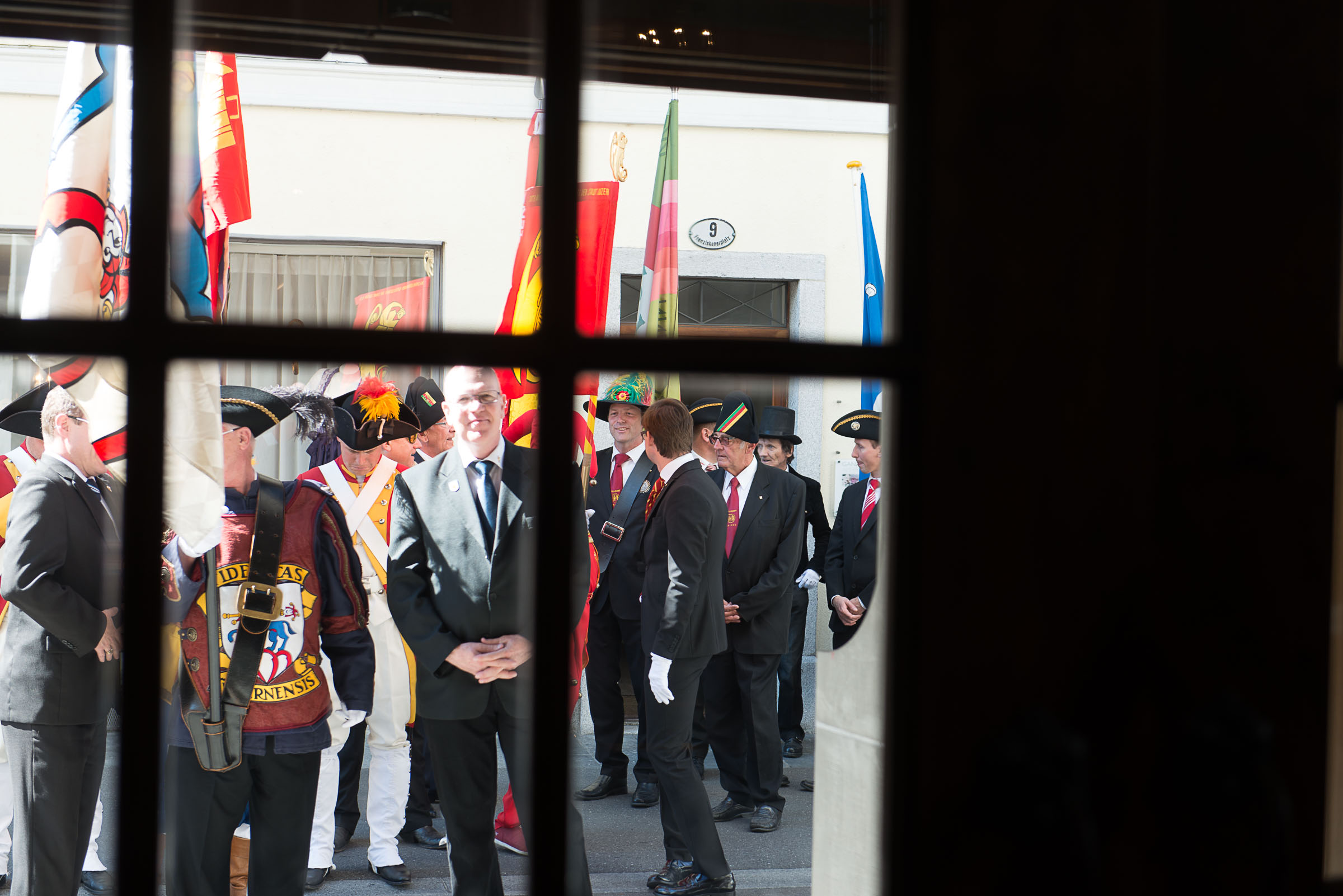 Der anschliessende Umzug durch die Altstadt Luzern, nach dem samstäglichen Ladenschluss, führte die Festgesellschaft via Grendel an photoschiesswilligen Chinesischen Touristen ins Hotel Schweizerhof.