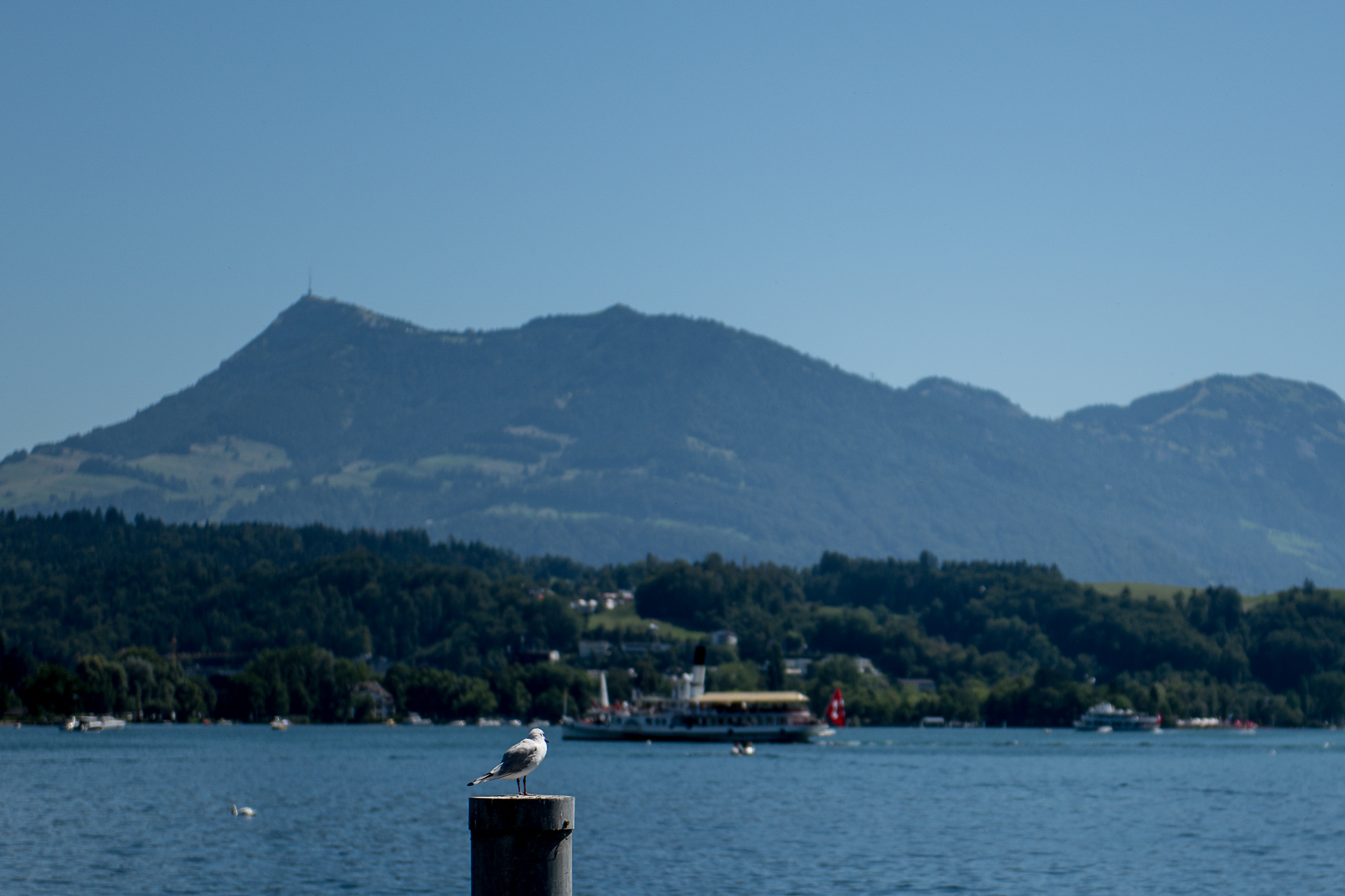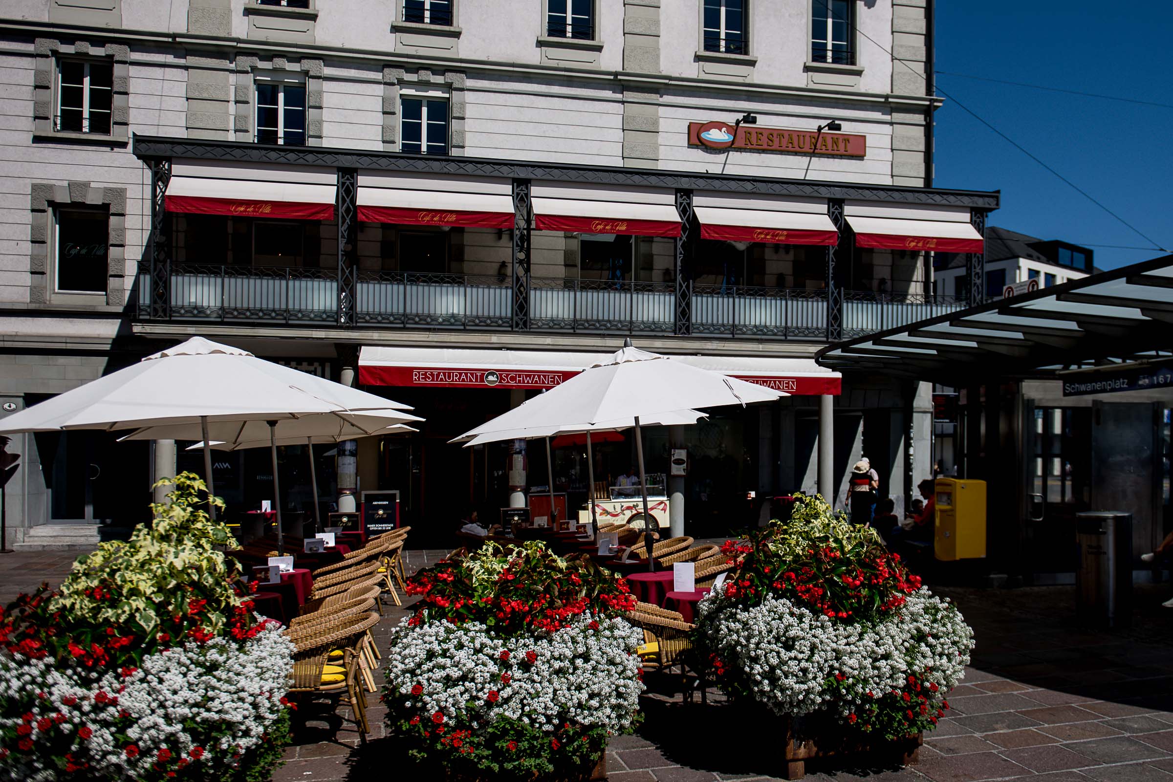 Es ist ein Sonntag im Sommer 2019 und draussen ist es heiss. Vor dem Restaurant Schwanen ist soeben ein Herr im Stuhl eingeschlafen. Der Kellner lässt ihn. Eine Treppe führt hinauf in den ersten Stock und gibt den Blick frei auf den See. Im Hintergrund der Berg Rigi.