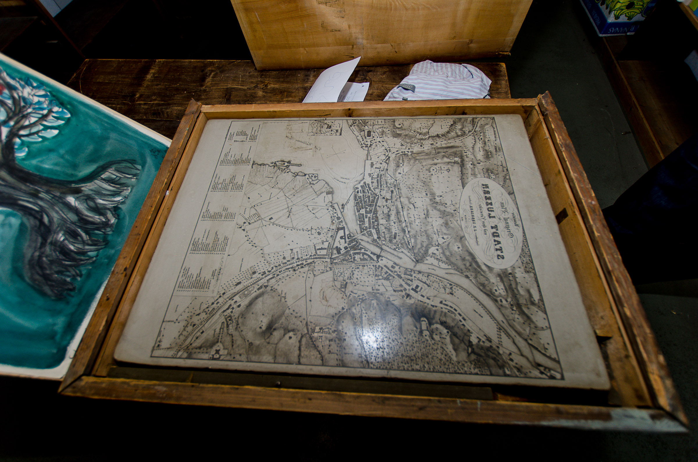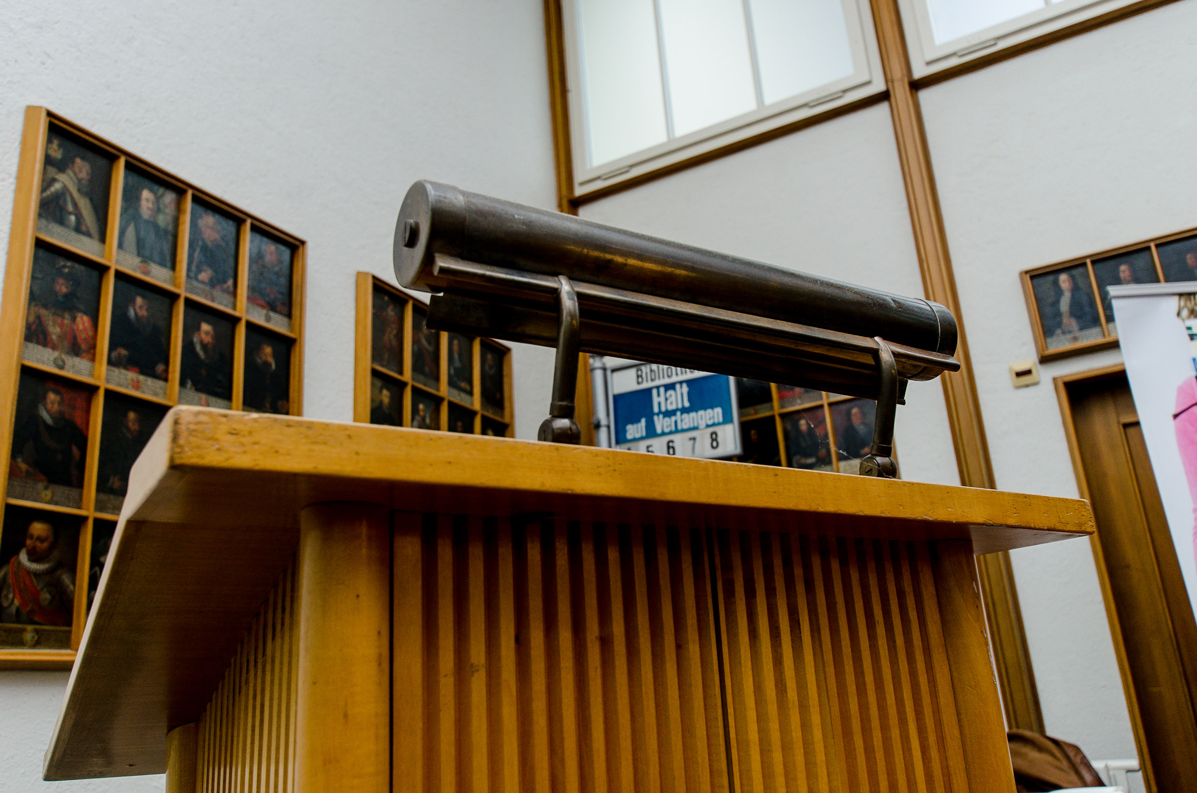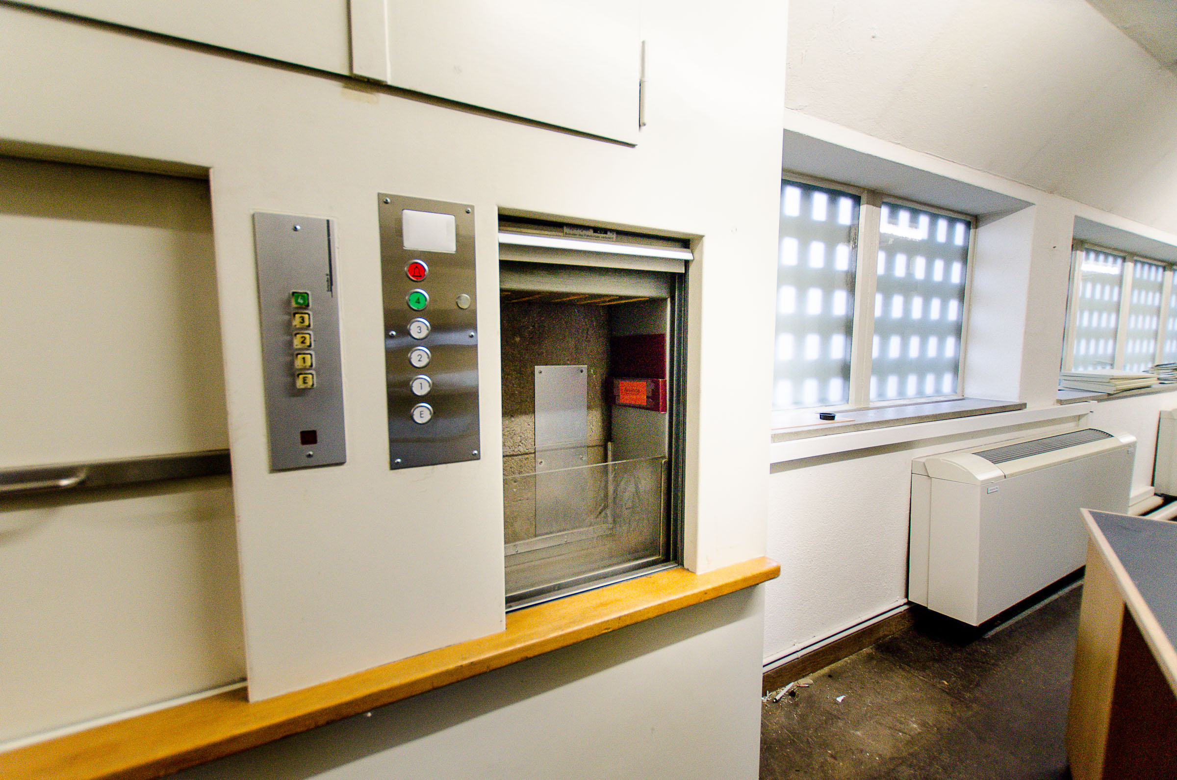 Das ist jetzt Geschichte. Der Warenlift kann 20 kg transportieren, läuft jedoch bnicht mehr. Der Hinweis "nicht für Personentransporte geeignet" ist noch da. Für wen galt dieser Hinweis? In den Lagerräumen wird nach dem Umbau Leben einkehren. Das Publikum darf auf vier Stockwerken die Bücher selber suchen.