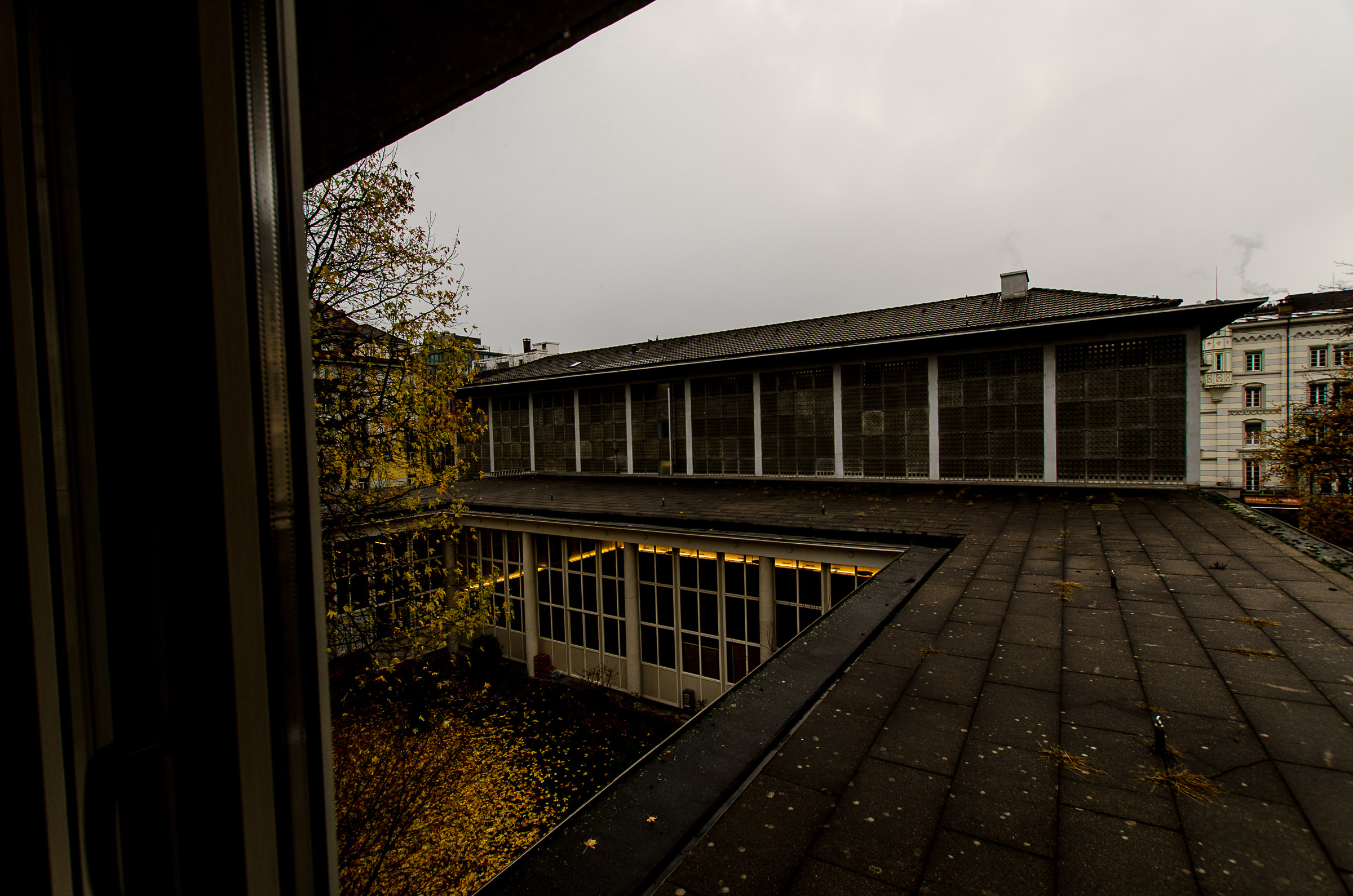 Wir nannten sie die ZB. Im November 2017 ist der letzte Tag der Zentralbibliothek im Vögeligärtli, Luzern vor dem Umbau. Die grosse Volière vor der ZB ist in den 1950 Jahren abgebrochen worden. Die ZB ist geblieben im Sempachergarten, der auch als Englischer Garten benannt ist.
