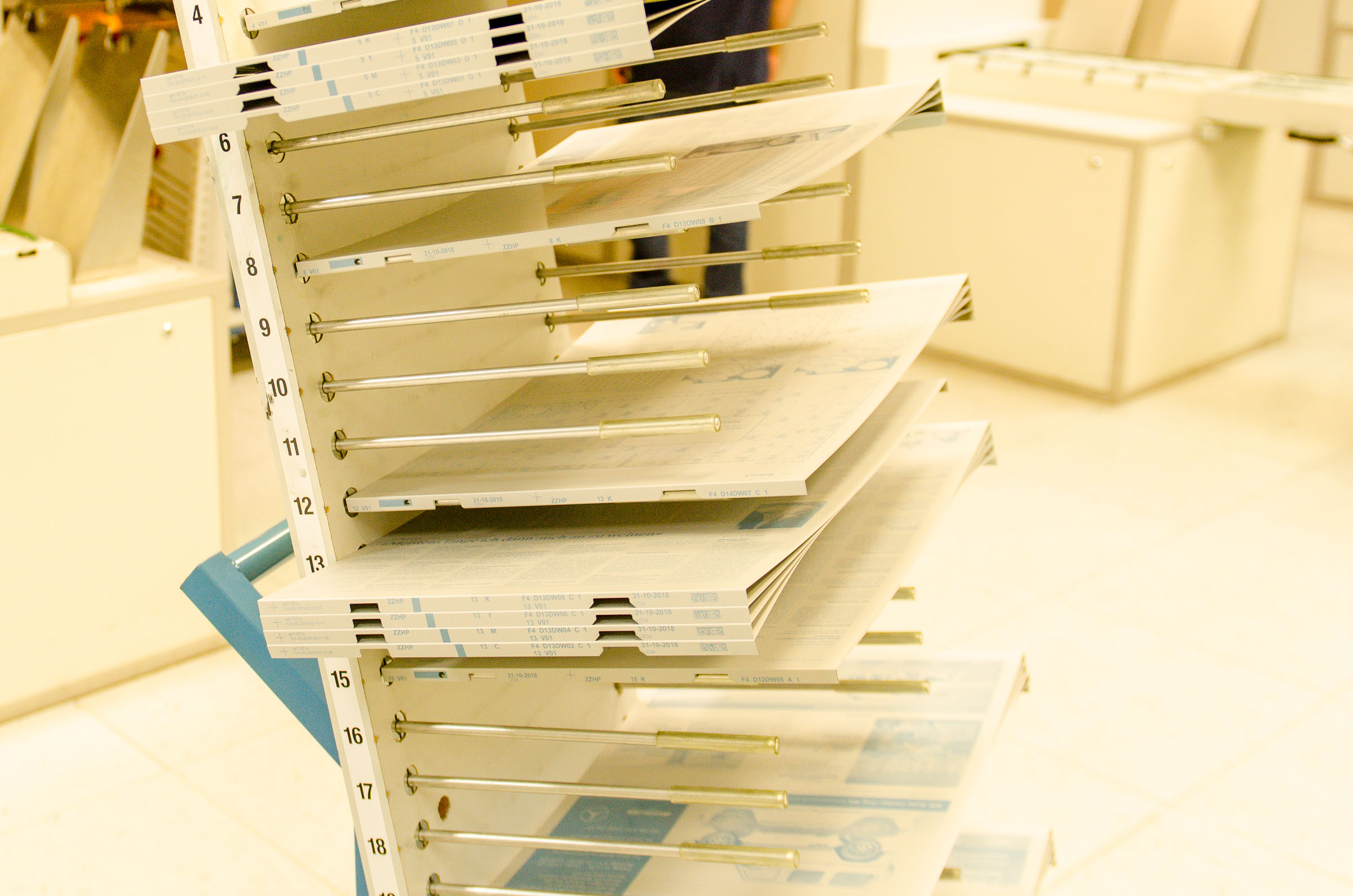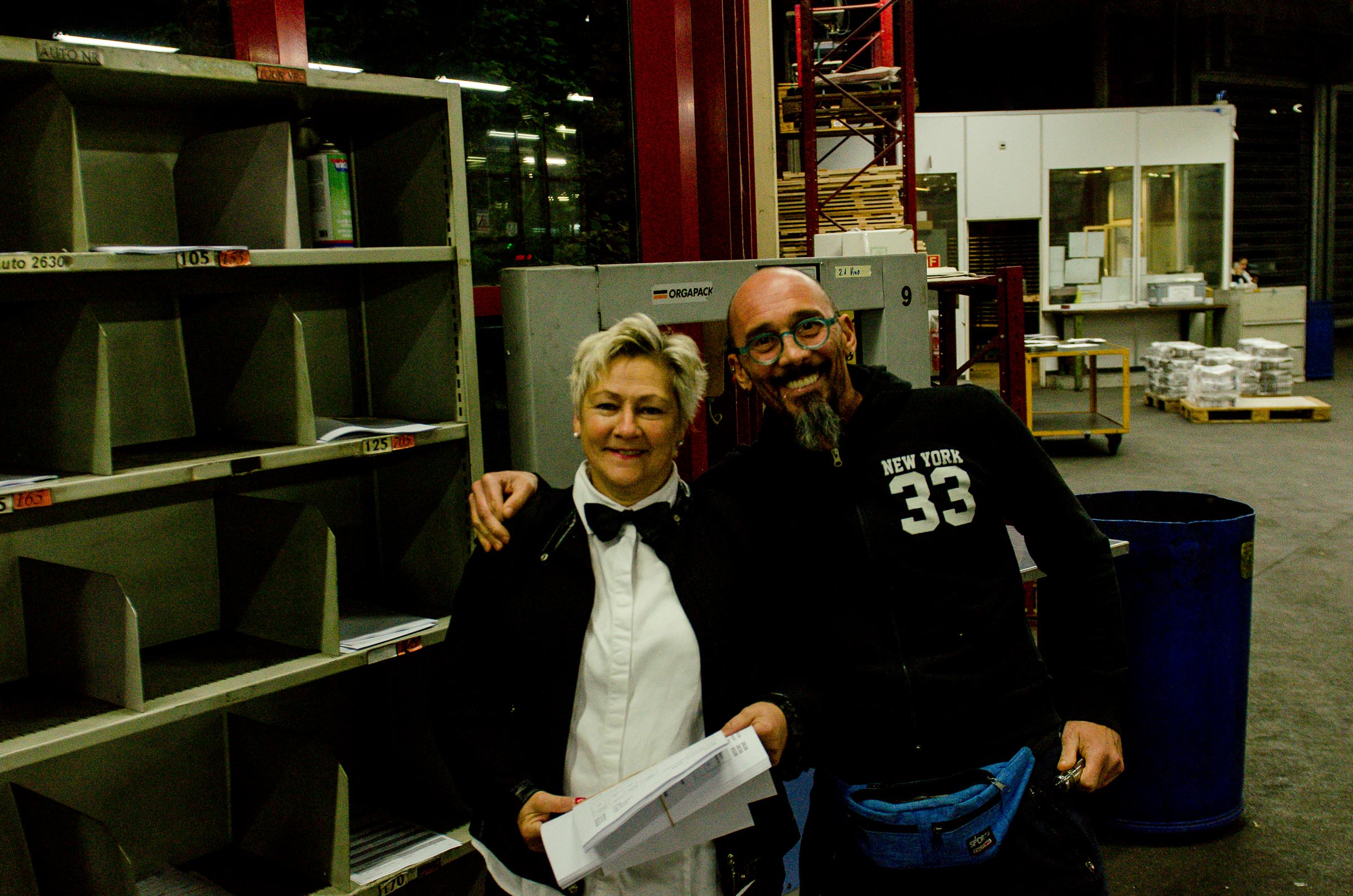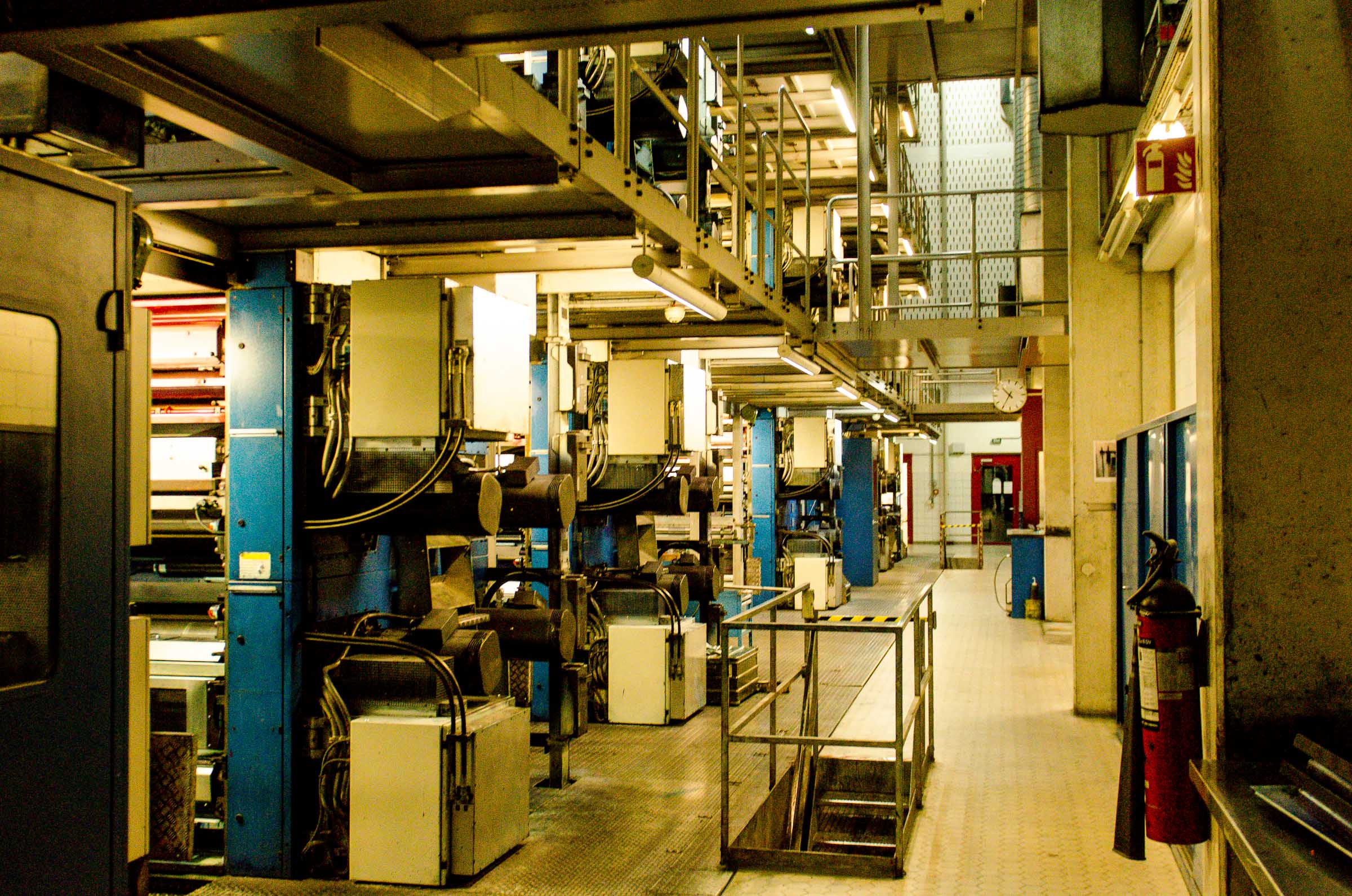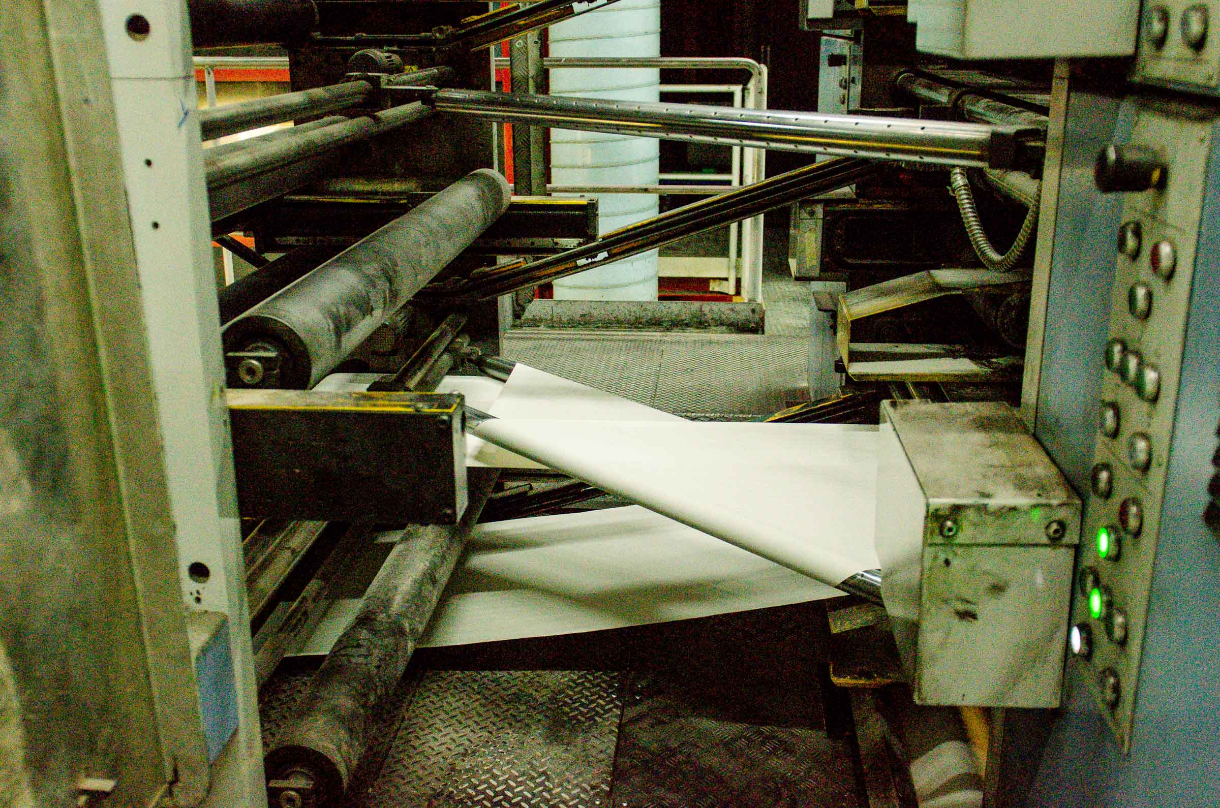 Die ersten 10'000 Blick-Exemplare sind über die Druckzylinder gelaufen und steuern Richtung Weiterverarbeitung. Ein Zwischenstop, aufgewickelt auf grossen Rollen, warten sie auf den nächsten Arbeitsschritt. Zwischen Druckmaschine und Versandstrasse kann es zu technischen Unstimmigkeiten kommen. Mit dem Puffer der aufgewickelten Zeitungen, kann dies elegant gelöst werden. Draussen in der grossen Halle stehen die ersten Kuriere bereit. Sie fahren die Zeitungsbündel durch die ganze Schweiz zu den Depots für die Verteilung.
