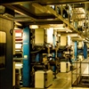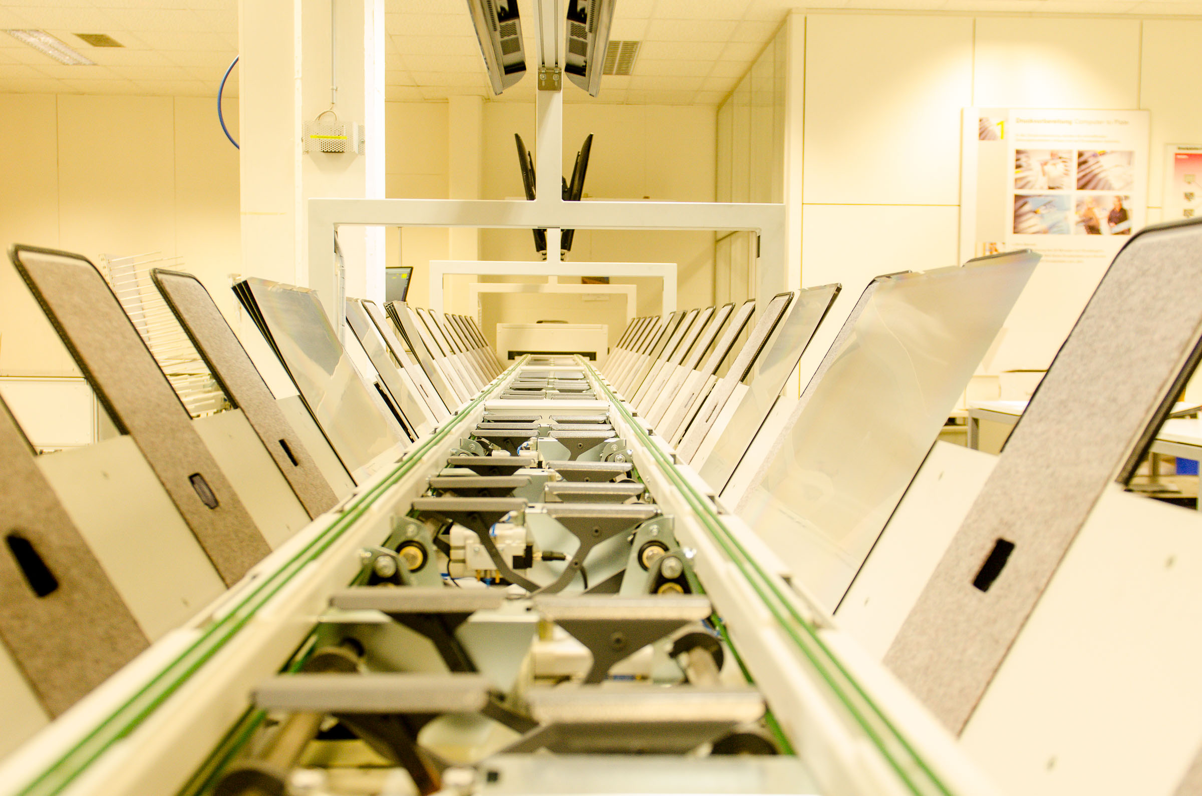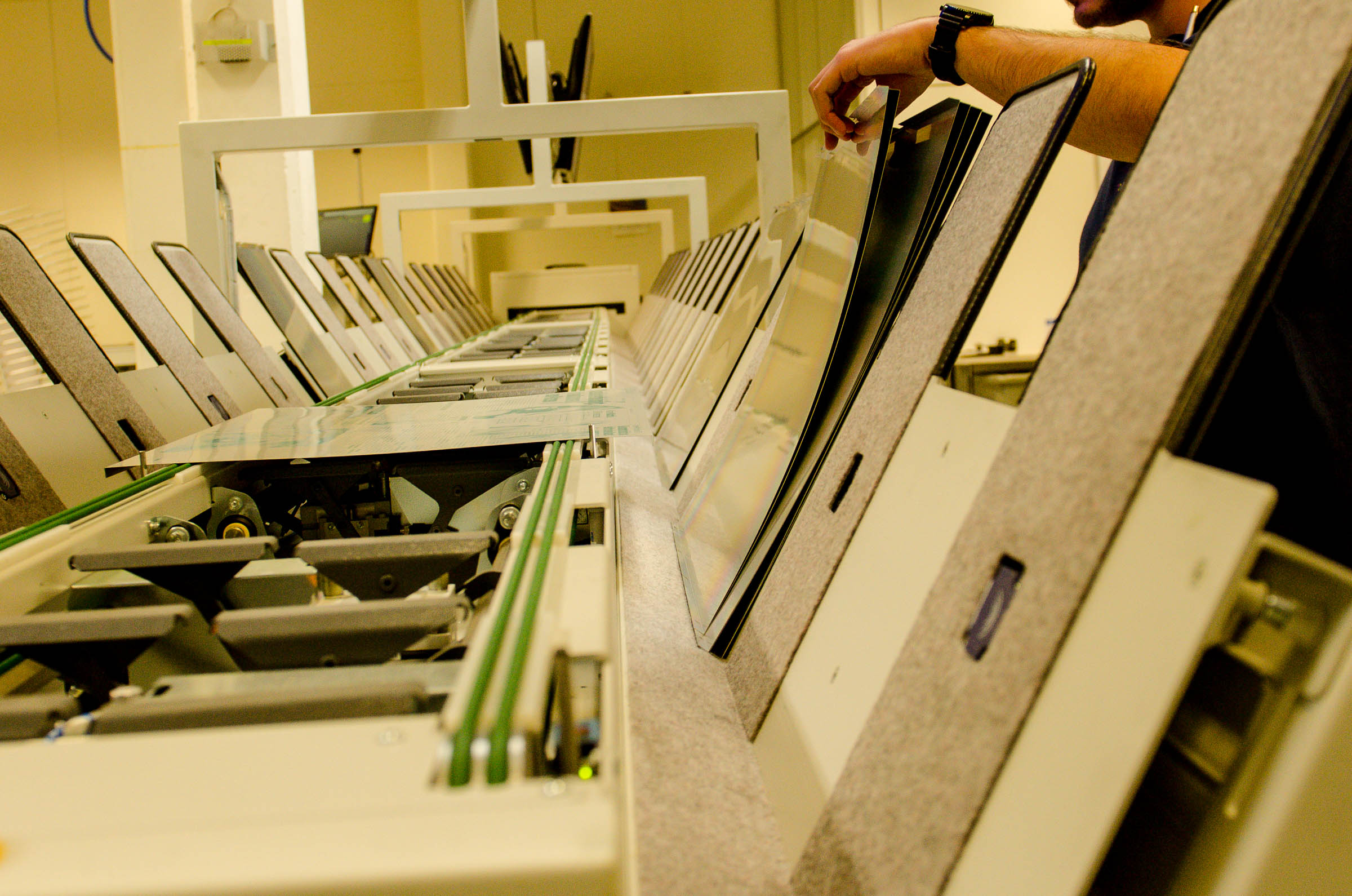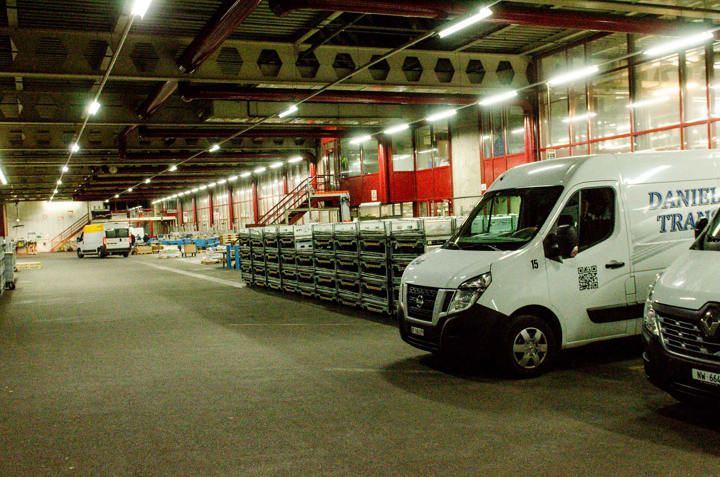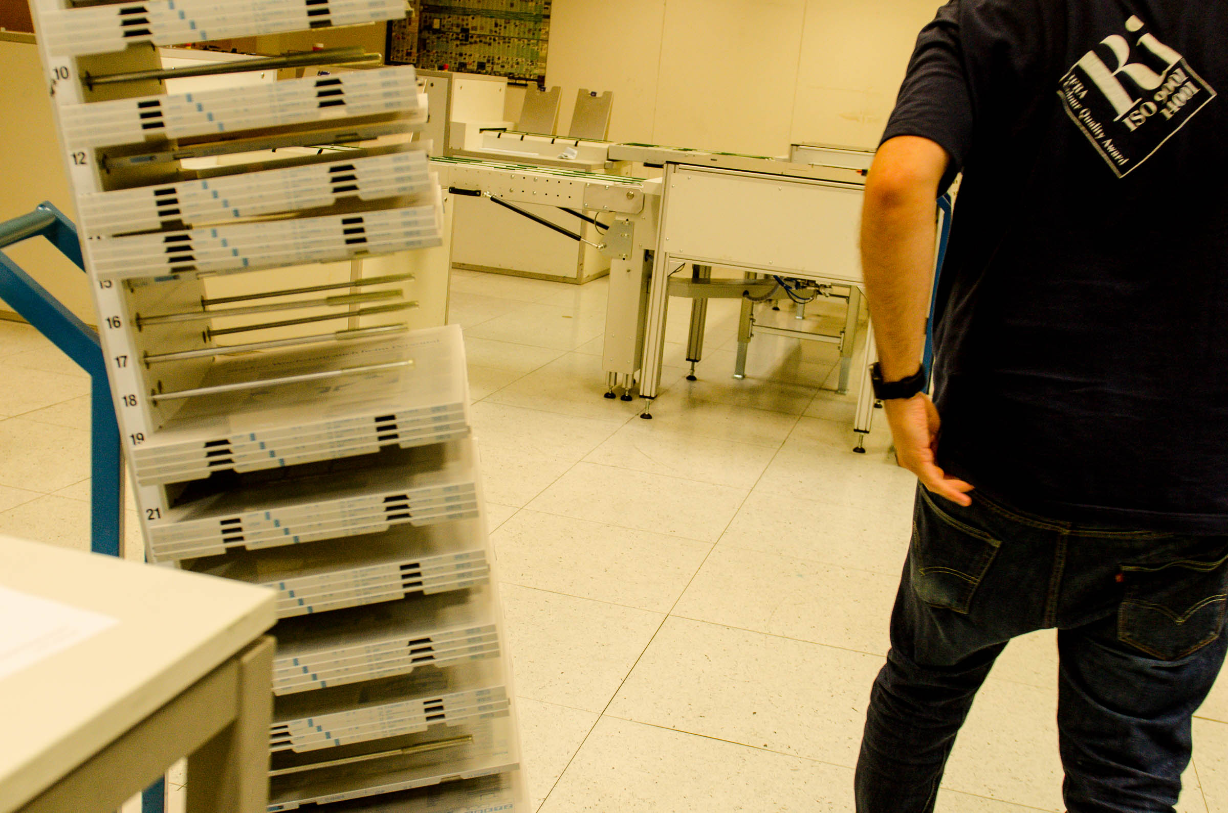 Die ersten 10'000 Blick-Exemplare sind über die Druckzylinder gelaufen und steuern Richtung Weiterverarbeitung. Ein Zwischenstop, aufgewickelt auf grossen Rollen, warten sie auf den nächsten Arbeitsschritt. Zwischen Druckmaschine und Versandstrasse kann es zu technischen Unstimmigkeiten kommen. Mit dem Puffer der aufgewickelten Zeitungen, kann dies elegant gelöst werden. Draussen in der grossen Halle stehen die ersten Kuriere bereit. Sie fahren die Zeitungsbündel durch die ganze Schweiz zu den Depots für die Verteilung.