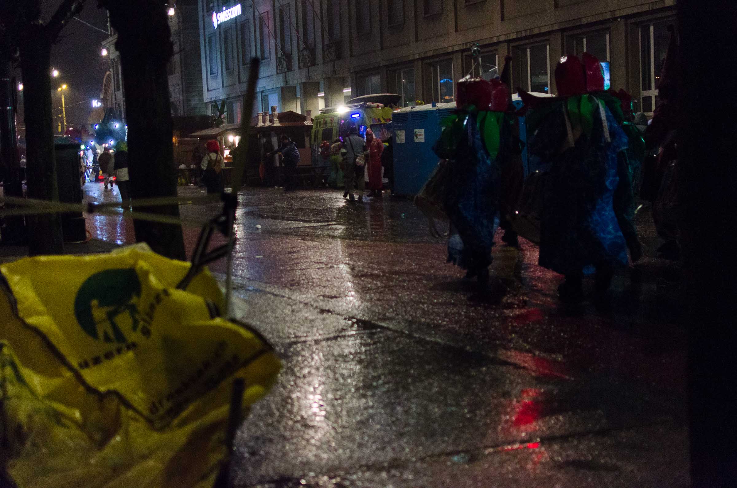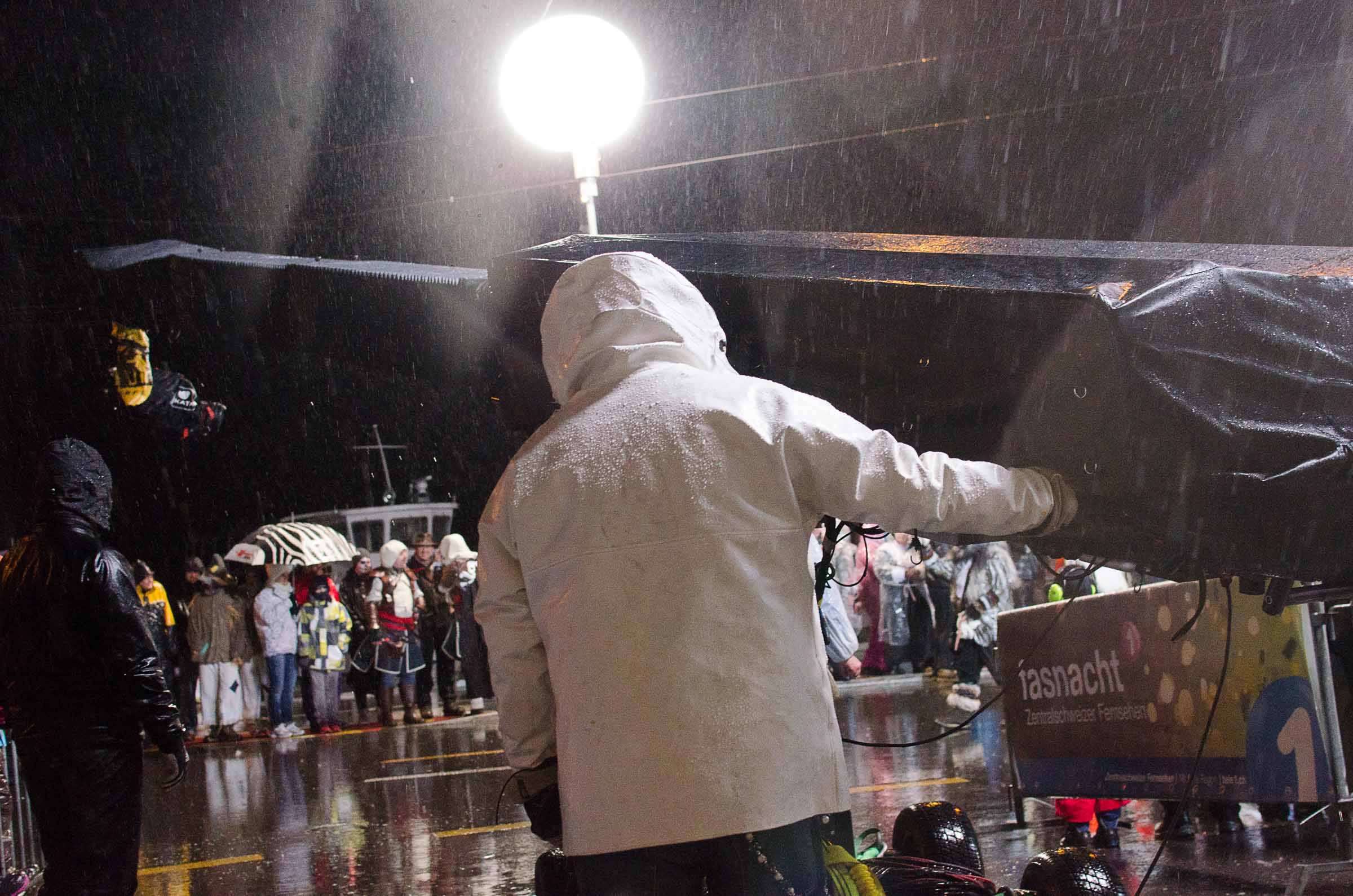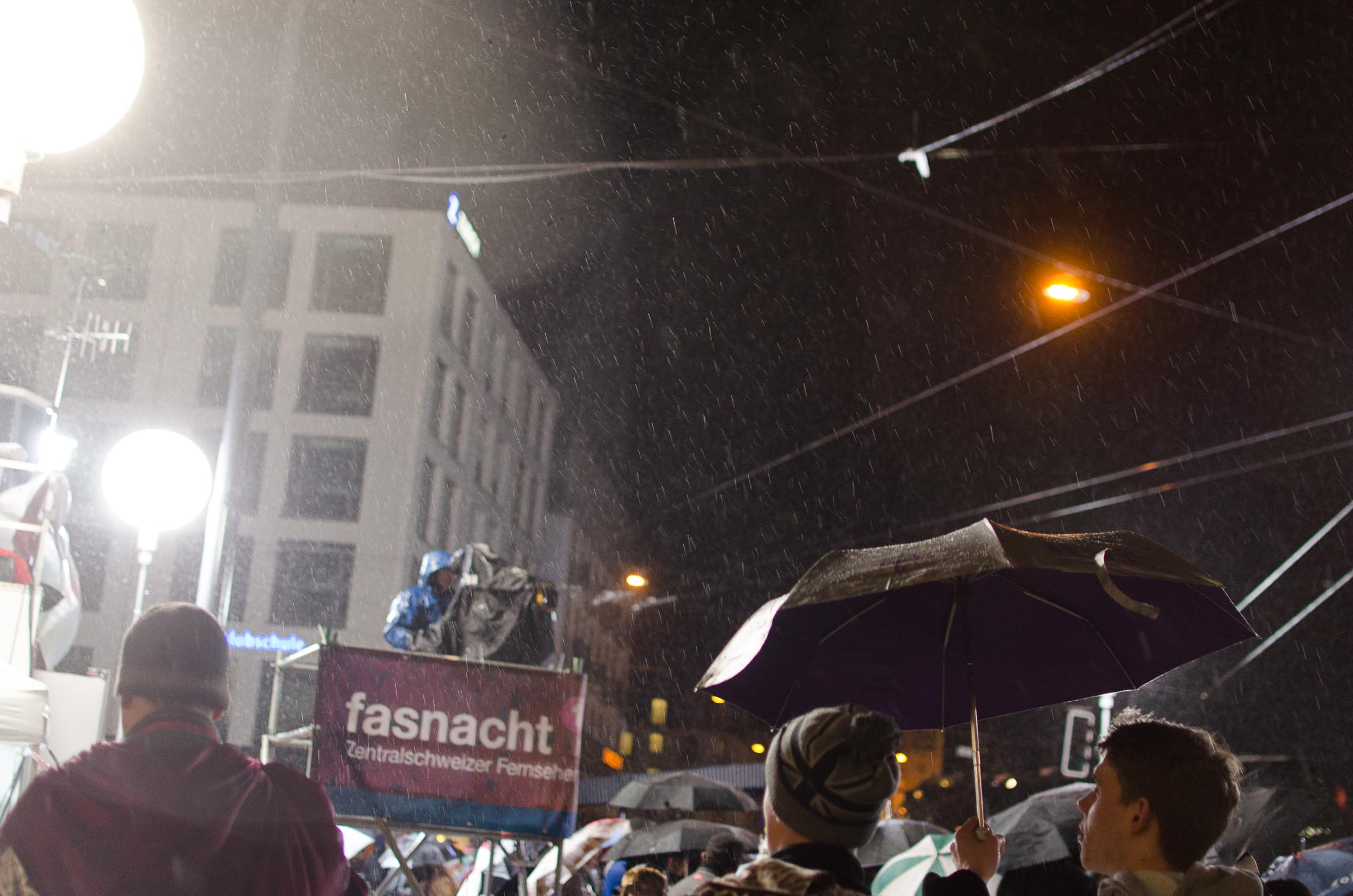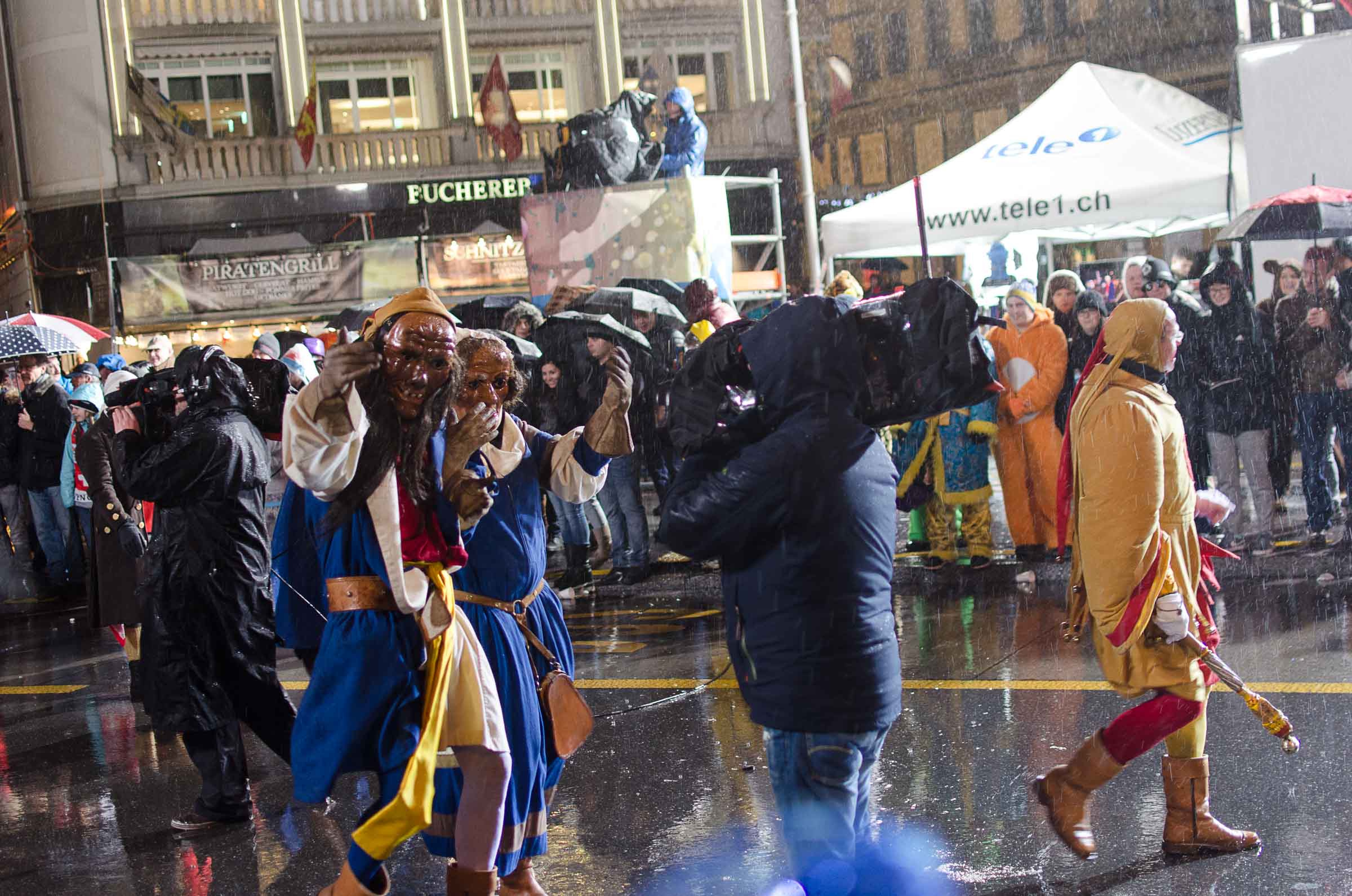Streifzug durch eine Stadt, die den letzten Fasnachtsabend erlebt. Fasnächtler und Photographen sind bei jedem Wetter unterwegs. Bruder Fritschi tanzt im strömenden Regen vor den Kameras von Tele1.