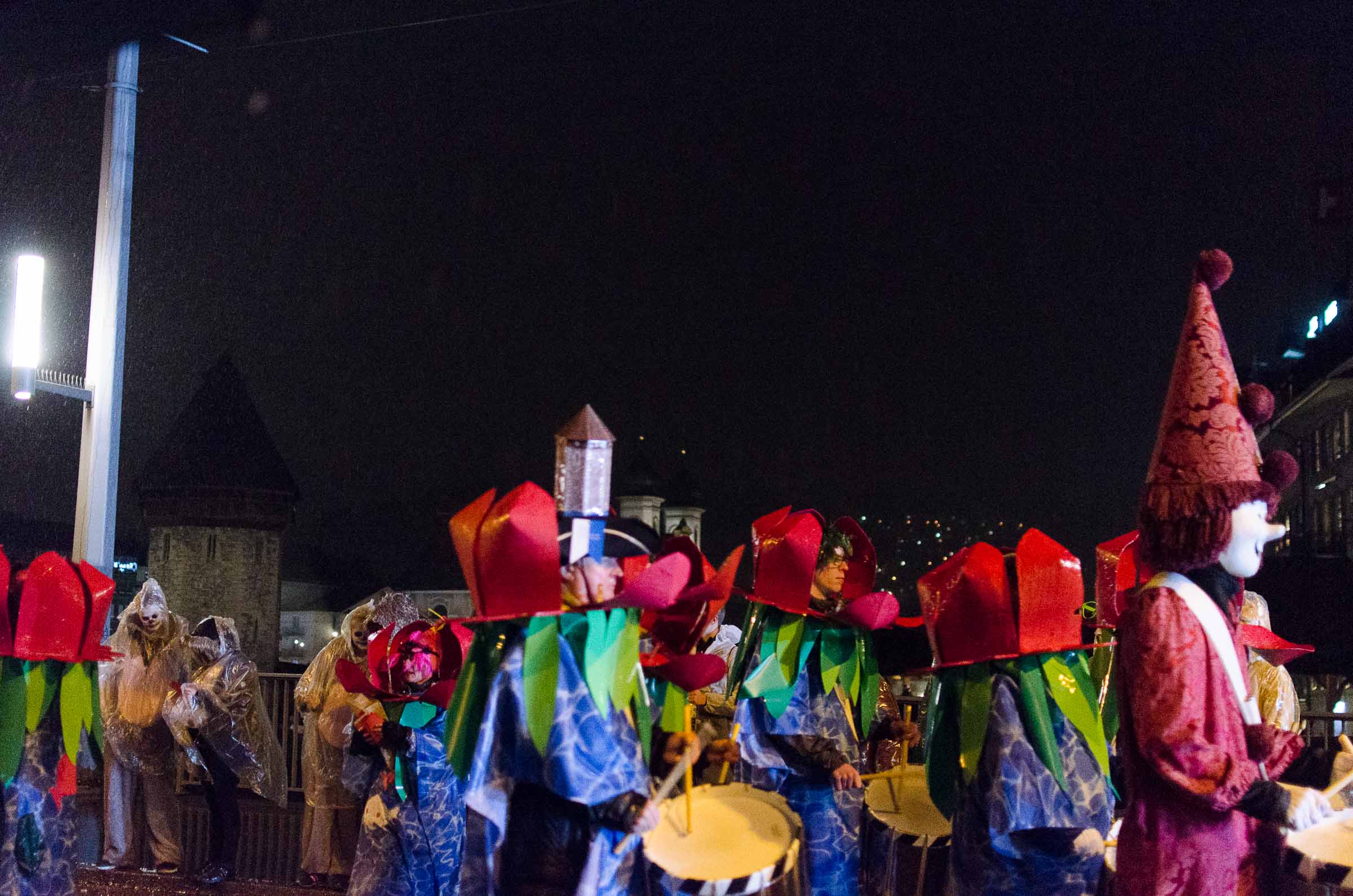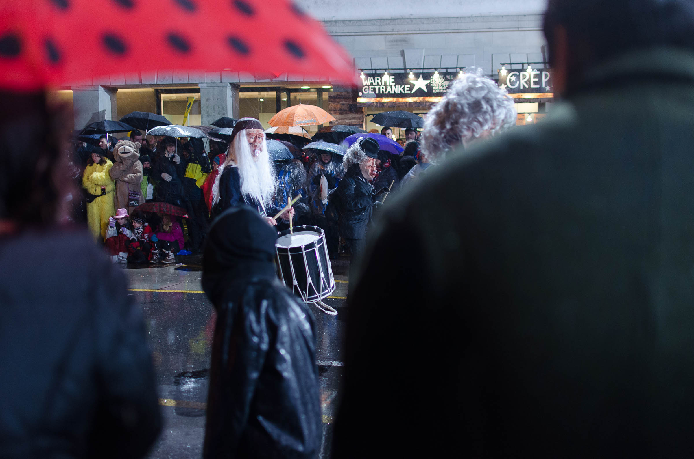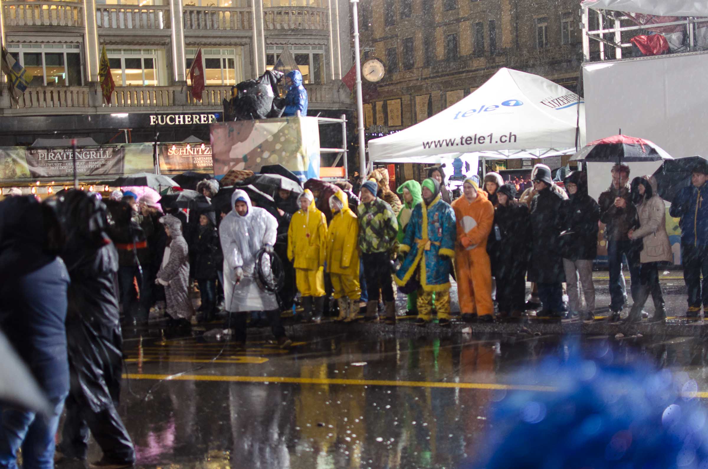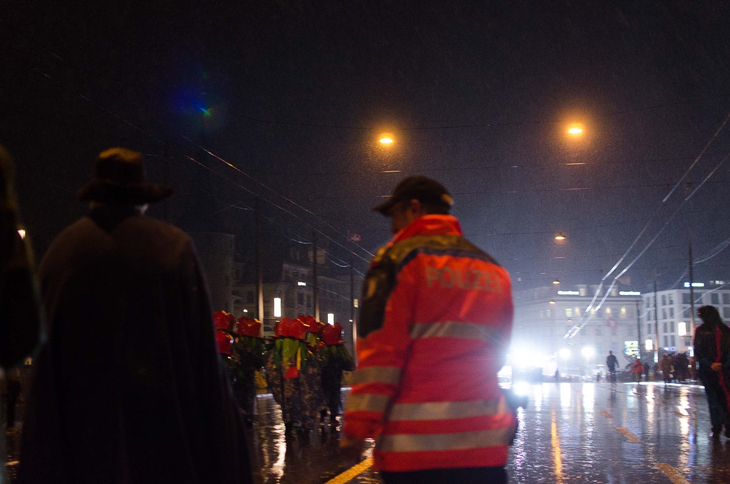 Streifzug durch eine Stadt, die den letzten Fasnachtsabend erlebt. Fasnächtler und Photographen sind bei jedem Wetter unterwegs. Bruder Fritschi tanzt im strömenden Regen vor den Kameras von Tele1.
