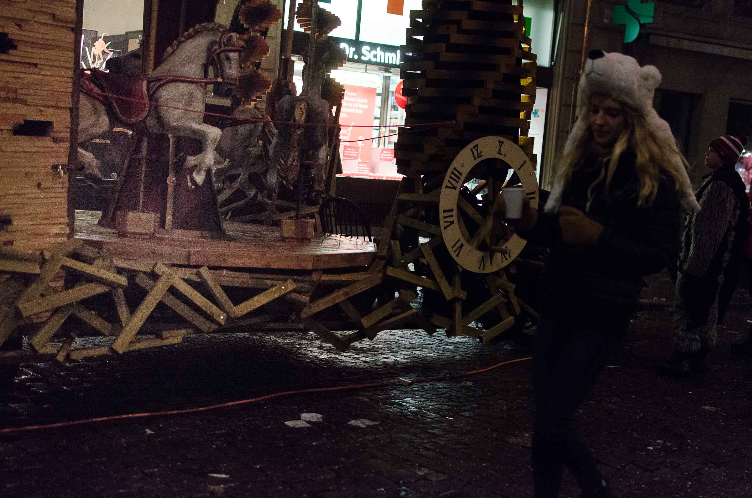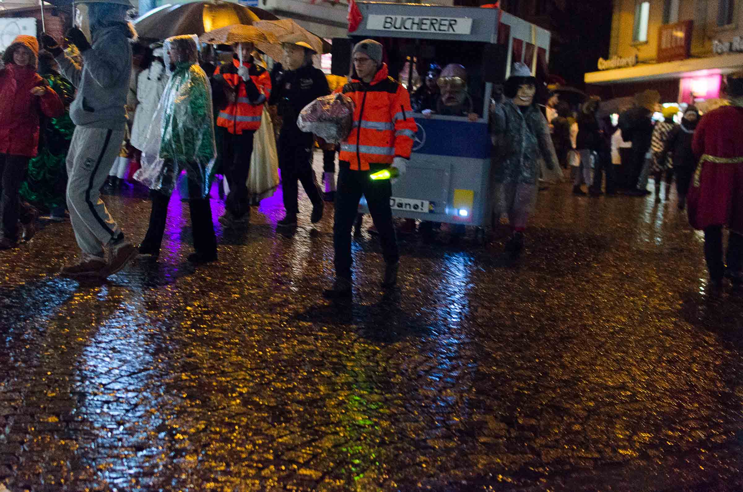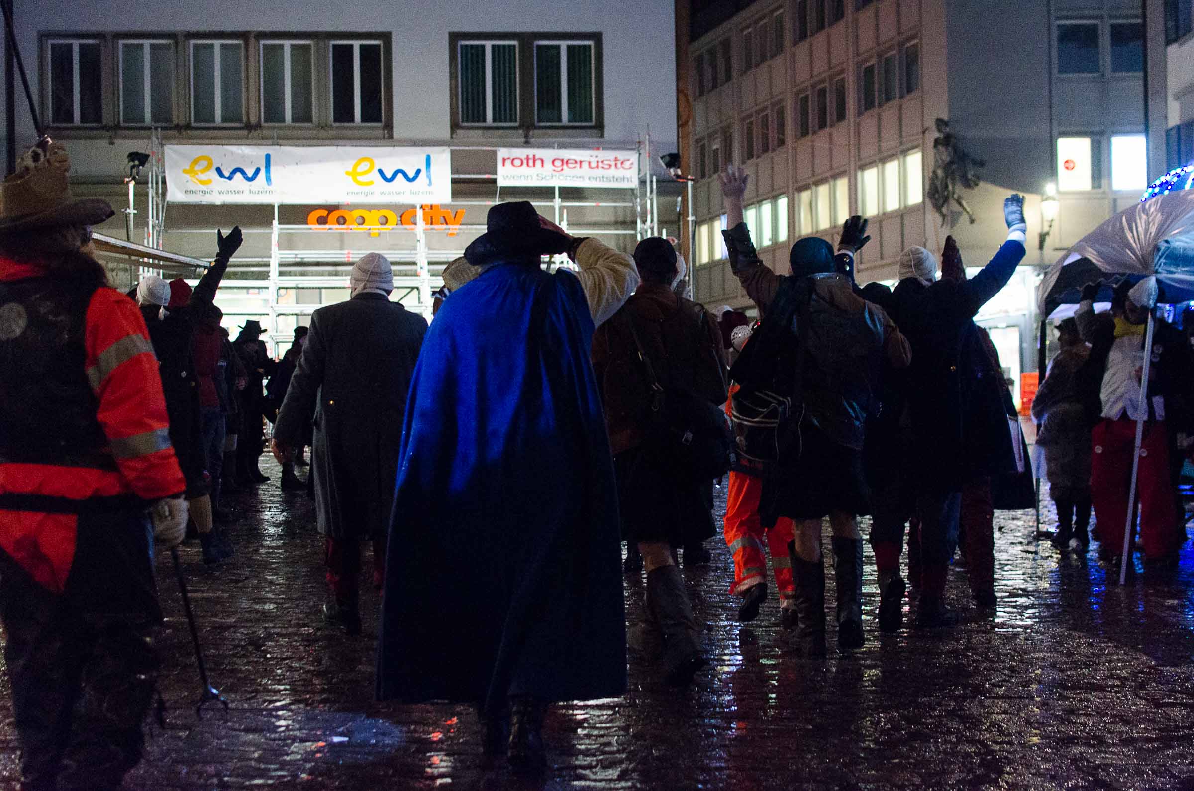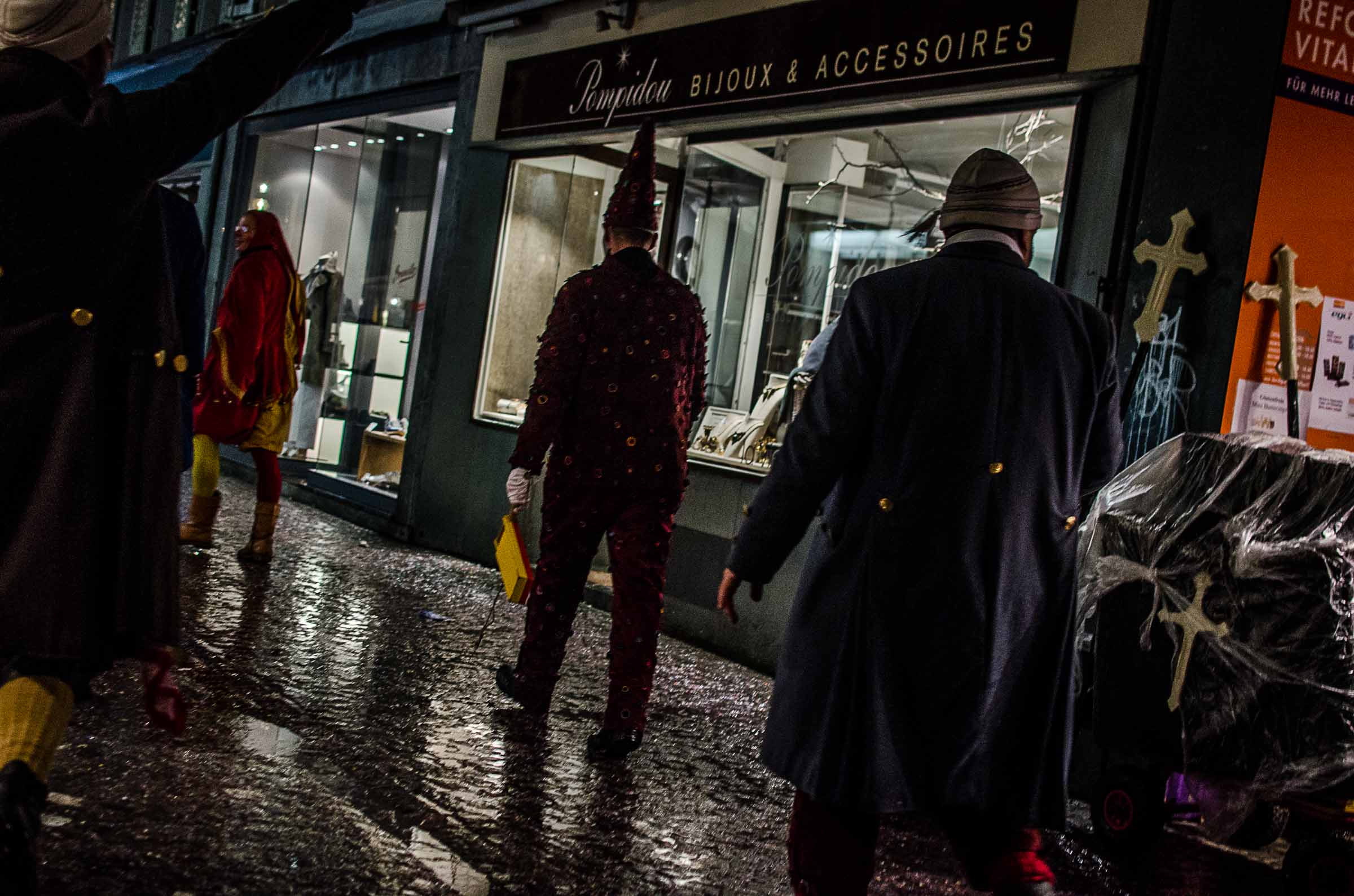 Streifzug durch eine Stadt, die den letzten Fasnachtsabend erlebt. Fasnächtler und Photographen sind bei jedem Wetter unterwegs. Bruder Fritschi tanzt im strömenden Regen vor den Kameras von Tele1.