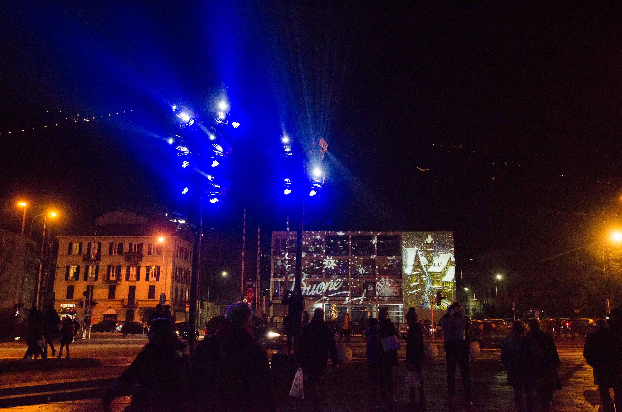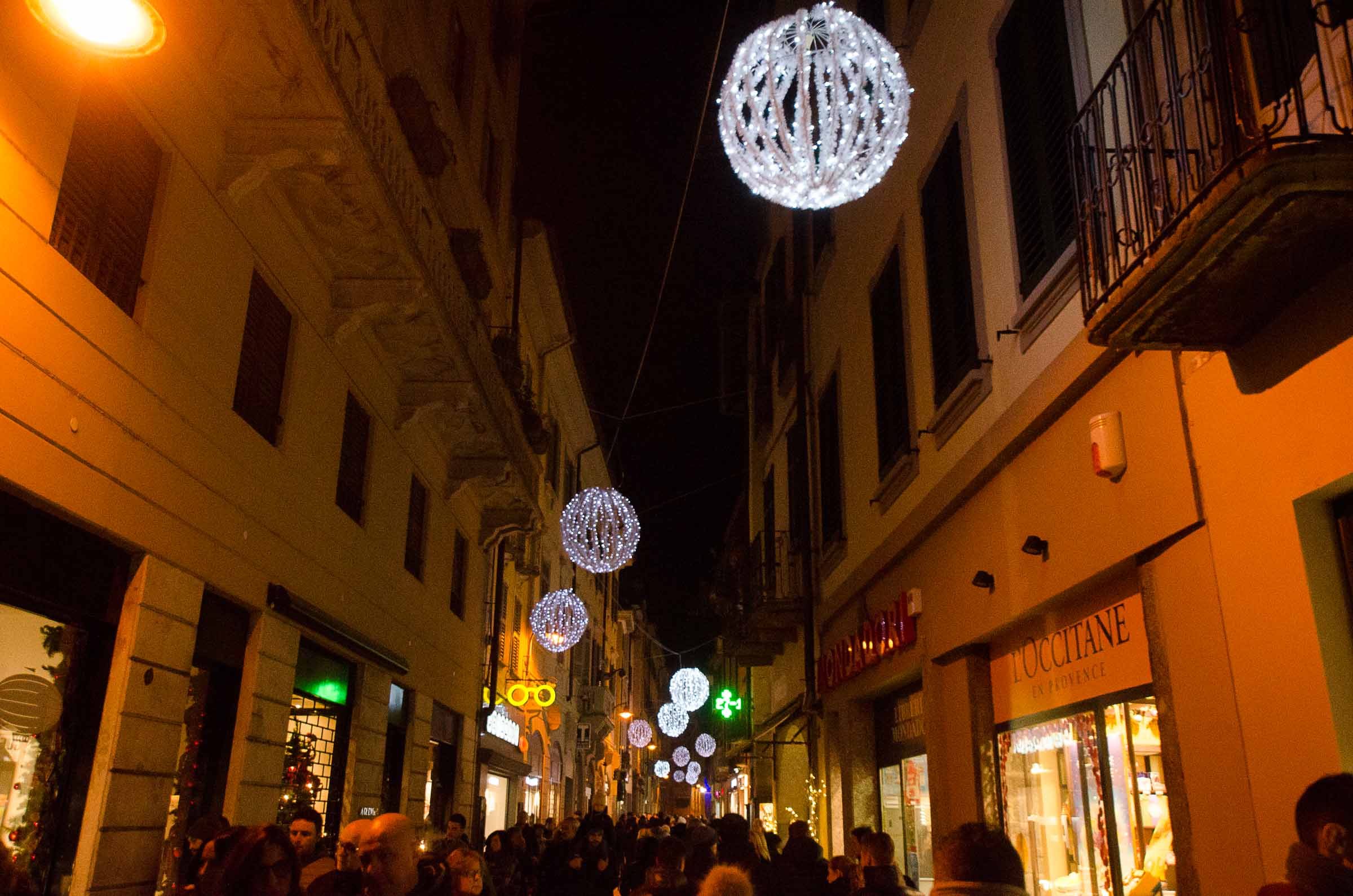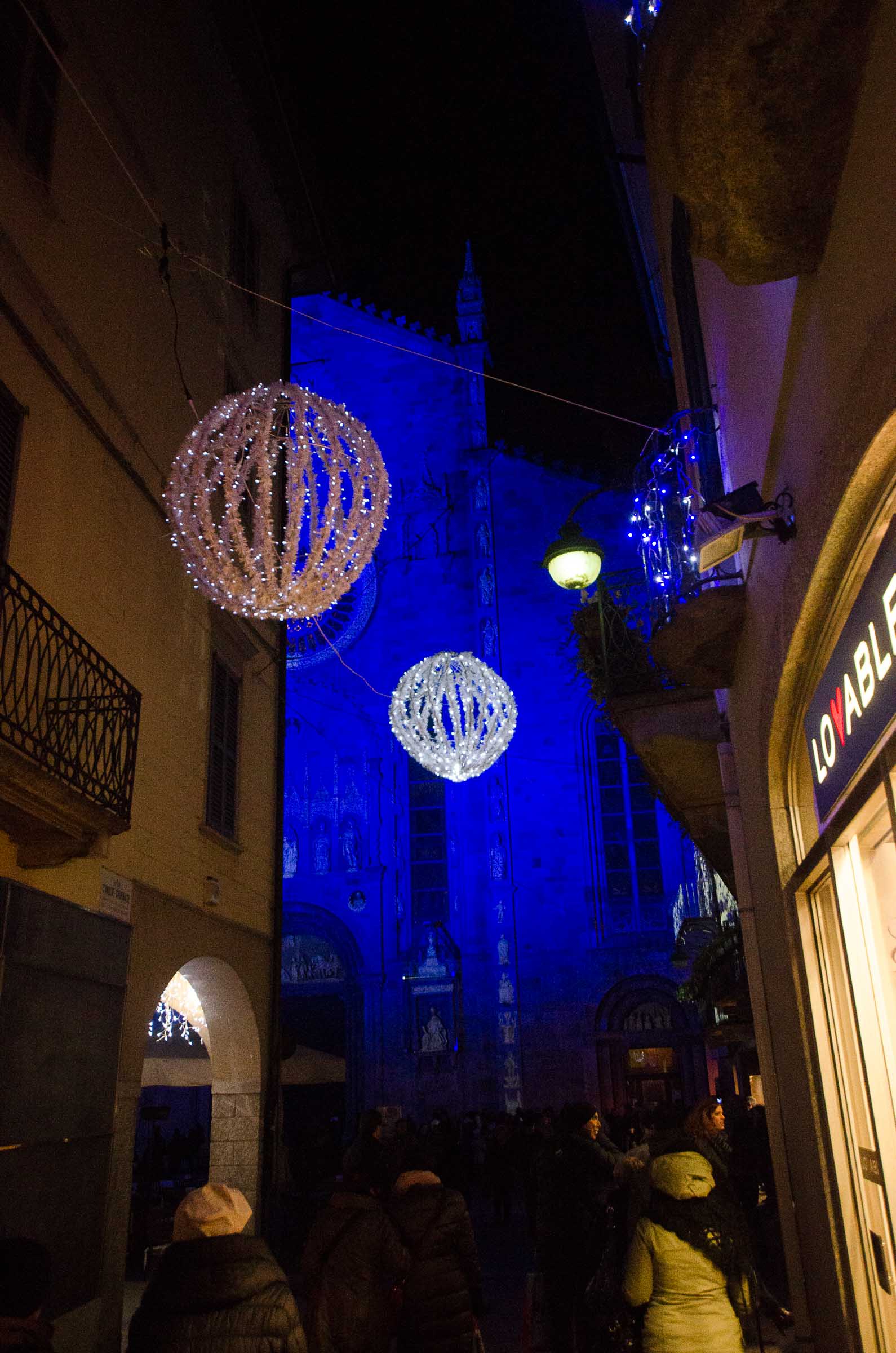 Sonntag Abend in Como, Città dei Balocchi, und die Stadt ist am 27. Dezember 2015 voll. Seit Mitte Dezember bis am 5. Januar erlebt der Besucher in Como die Stadt in einem anderen Licht. Vom Dampfschiff Patria bis zum Dom von Como, die Stadt leuchtet und zieht die Besucher in den Bann.