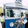 Bus hält - die Leuchtschrift funktioniert bestens und beim Chauffeur leuchtet die Haltestellenlampe auch, was dieser lachend im Verkehrshaus zu Kenntnis nimmt.