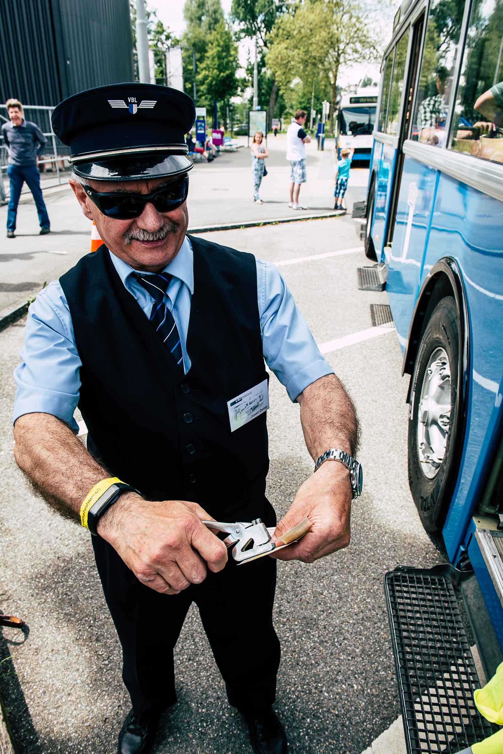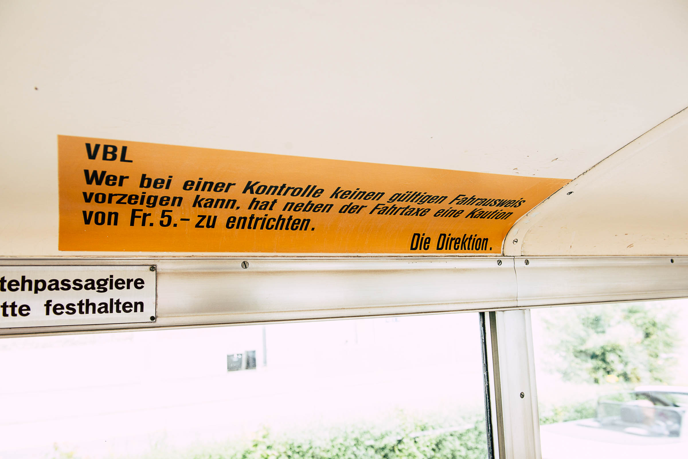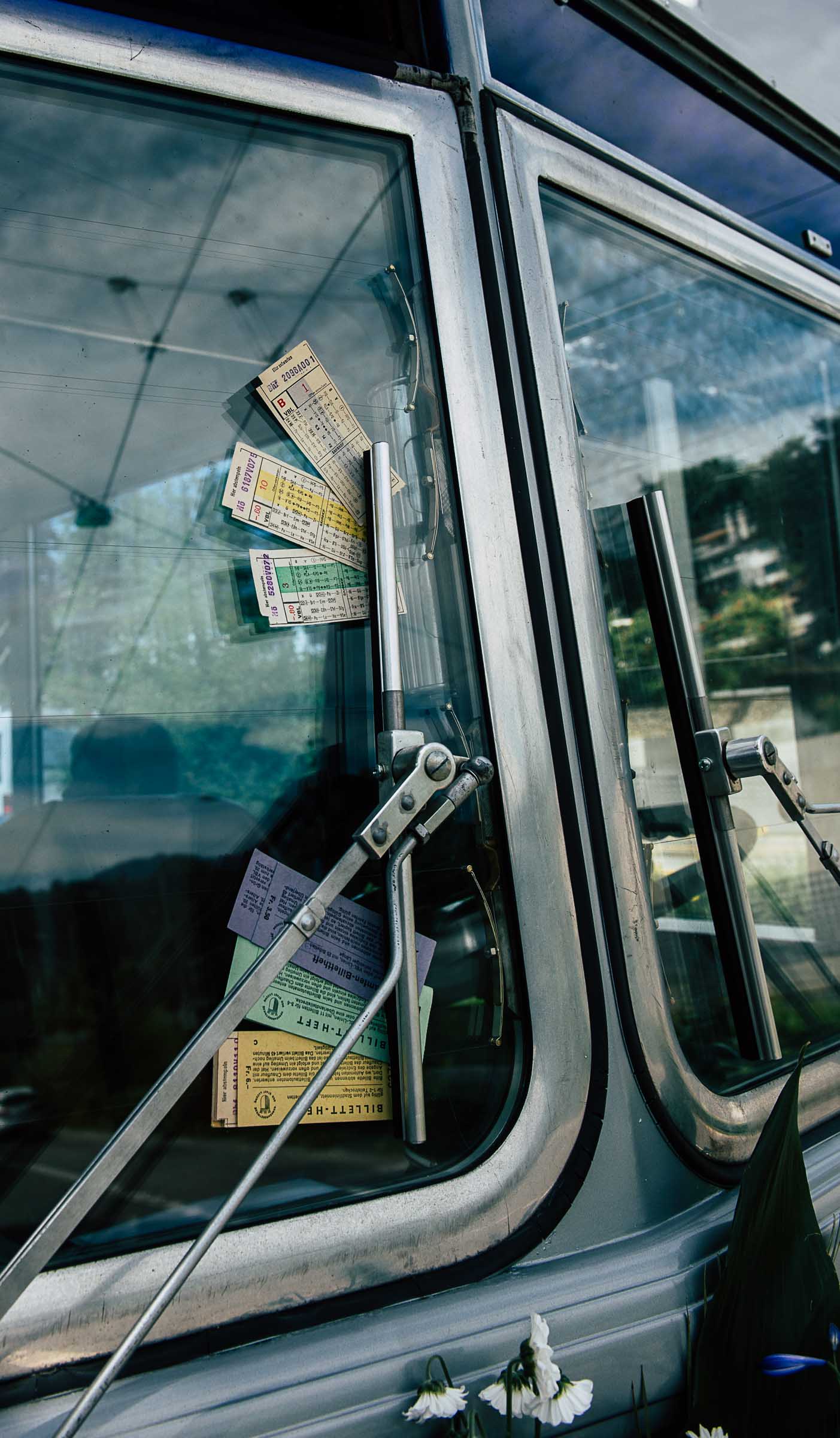 Den Billette-Kontrolleuren, die beim Aussteigen per Zufall den Bus anschauen, sind die drei farbigen Billette nicht mehr bekannt. Lila war den Beamten von Schiff, Bahn und Stadt mit Ermässigung vorbehalten. Grün war keiner Partei zugeordnet - jeder Erwachsene konnte dies  kaufen. Die gelben waren für Kinder vorbehalten.