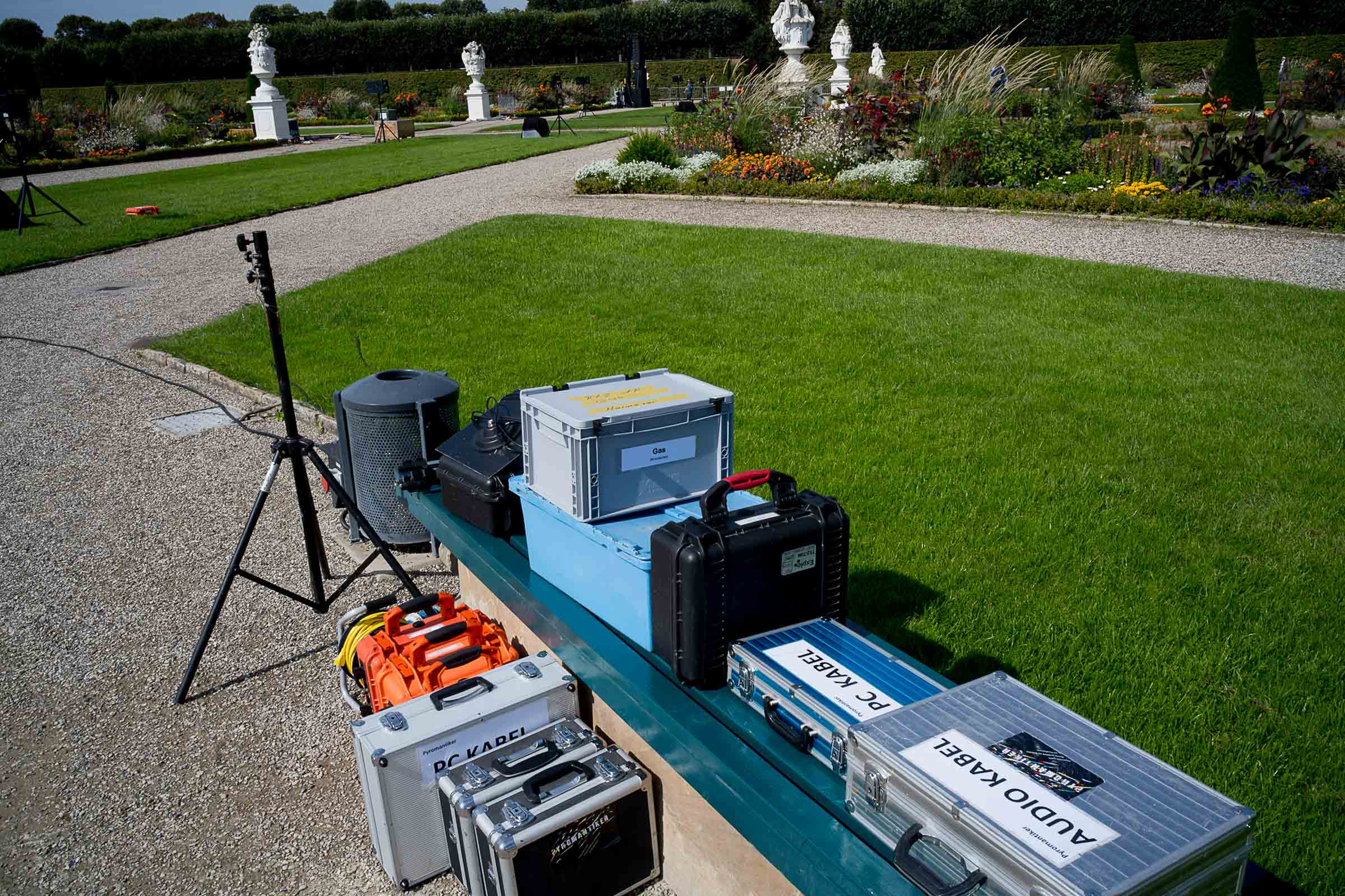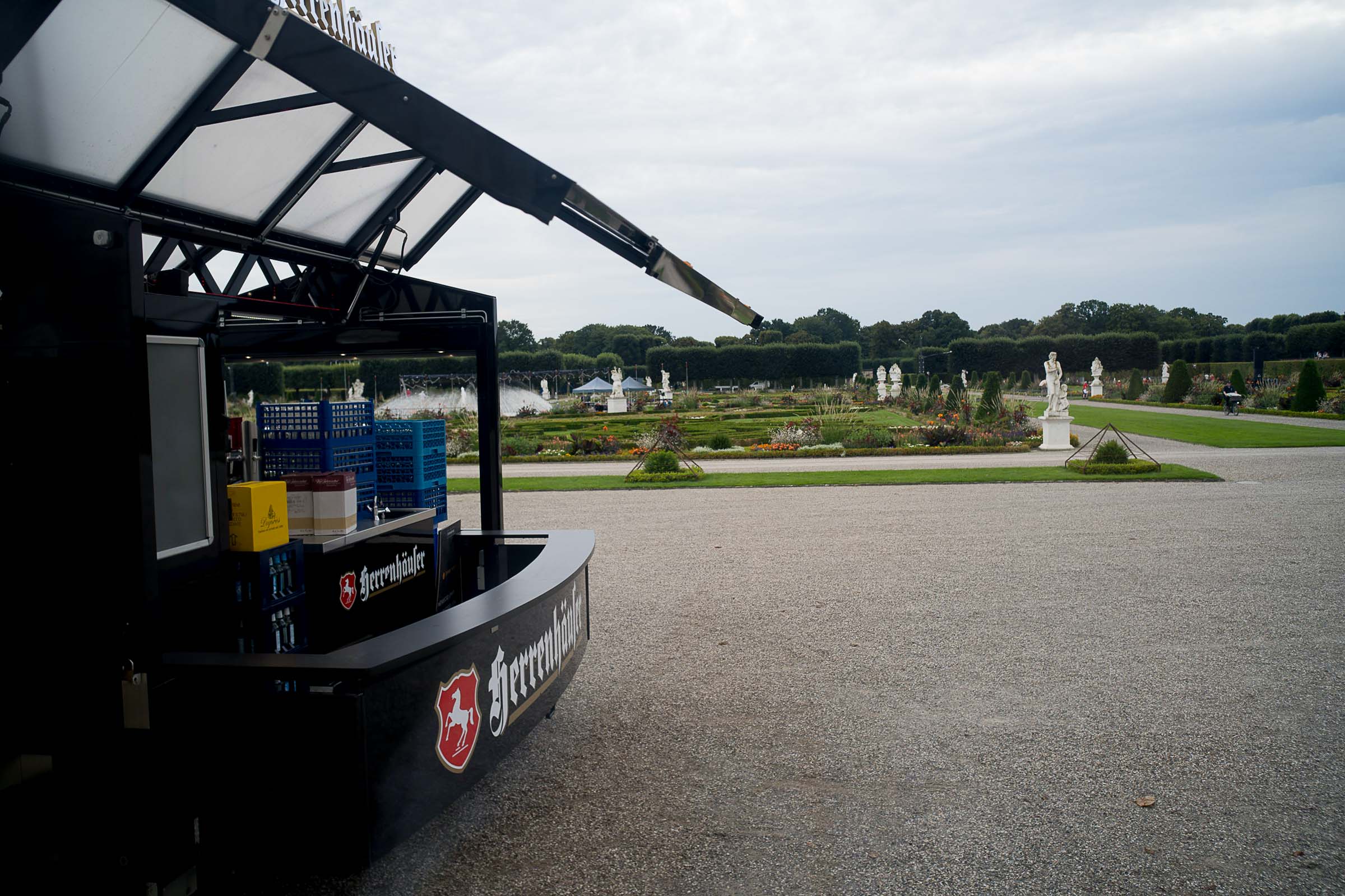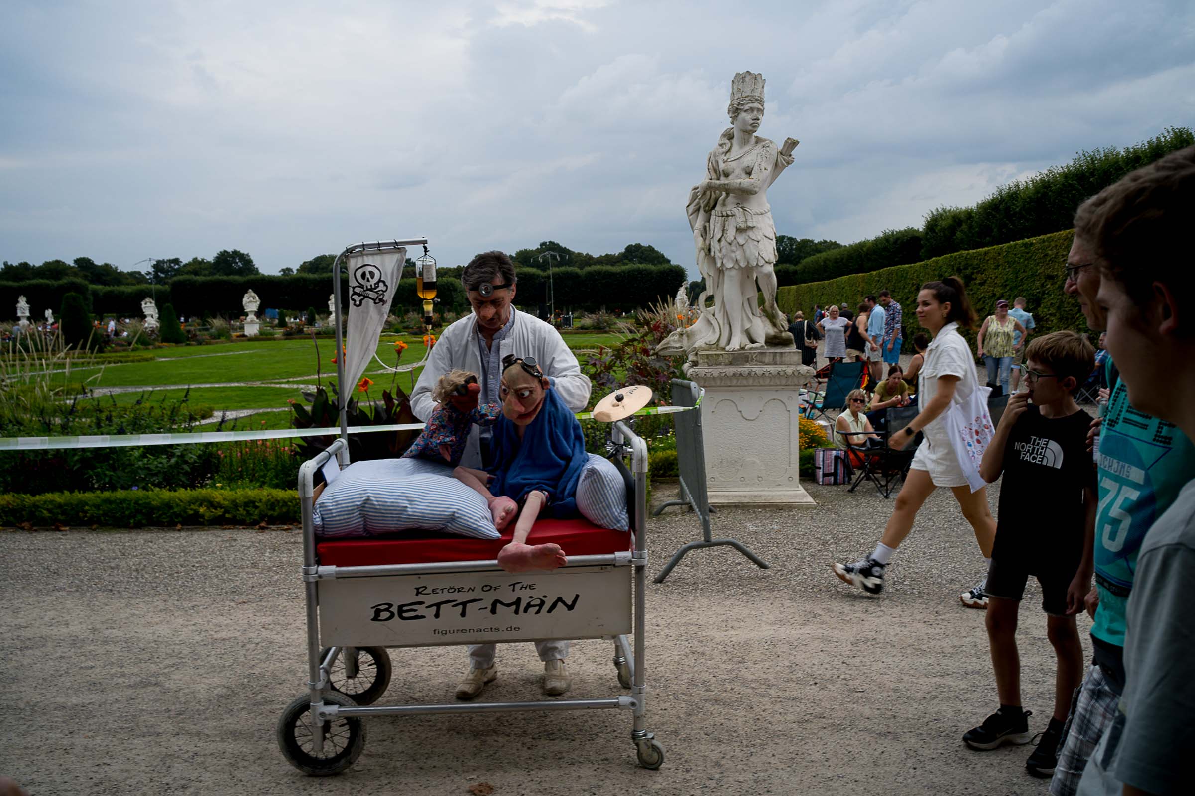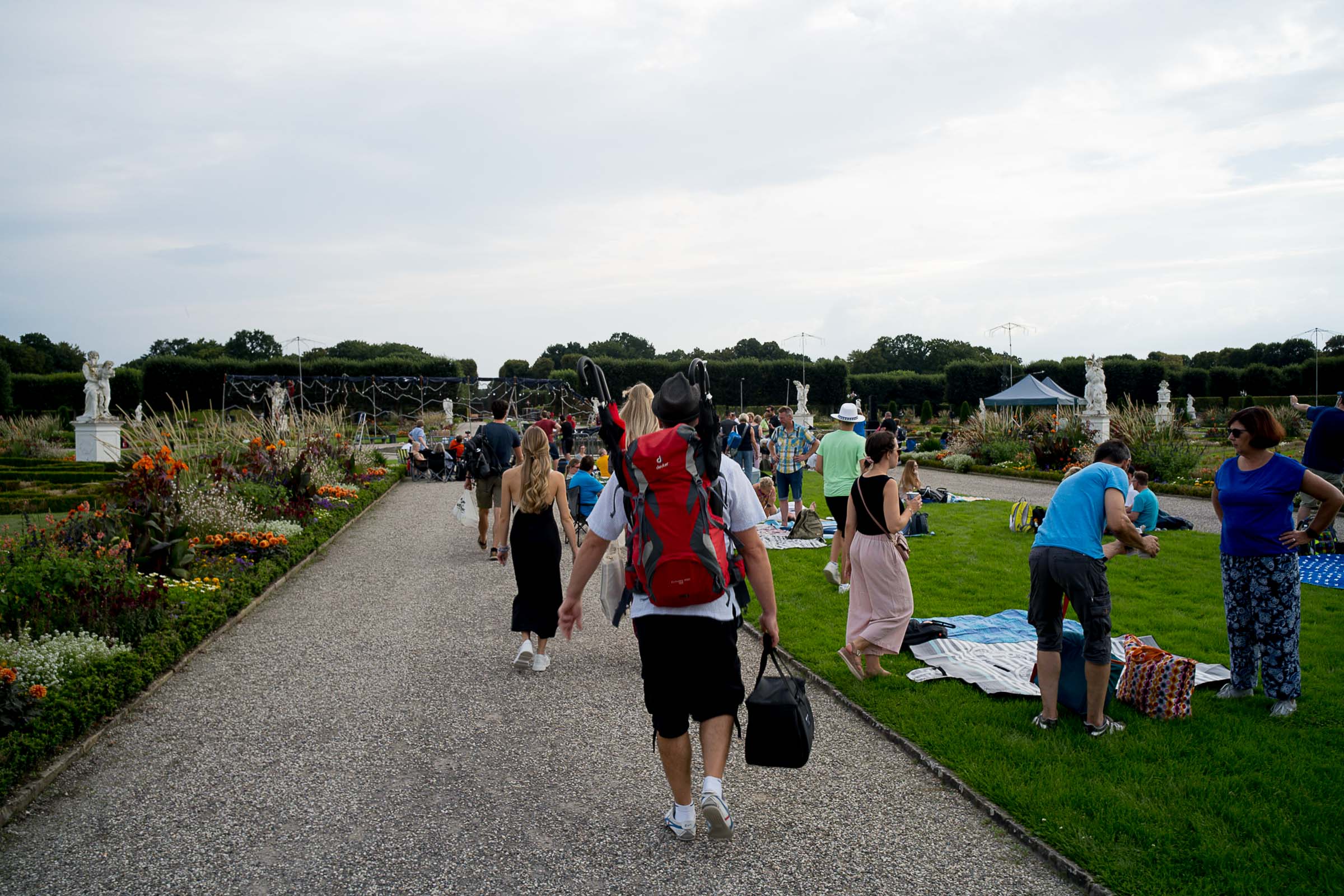 Die Herrenhäuser Gärten waren an diesem Tag festlich geschmückt. Zehn Hochzeiten fanden statt – mit Schloss, Wasserfontäne und gesperrten Wegen. Die Pyromantiker mussten sich ihren Weg durch das Labyrinth der Feierlichkeiten bahnen.