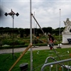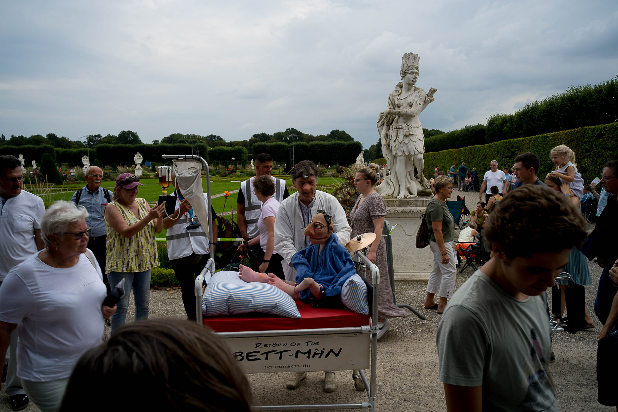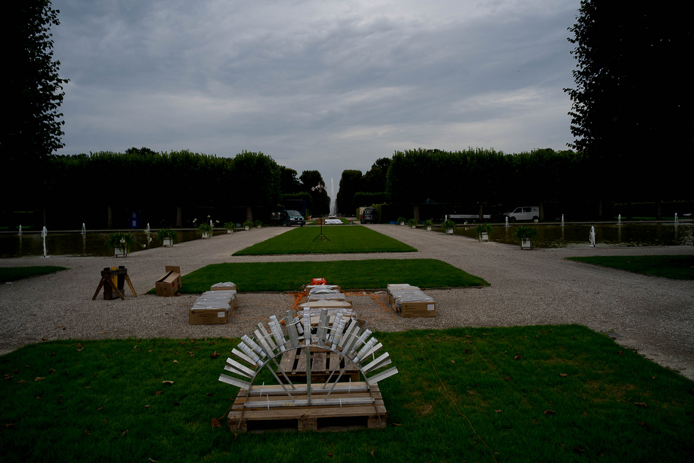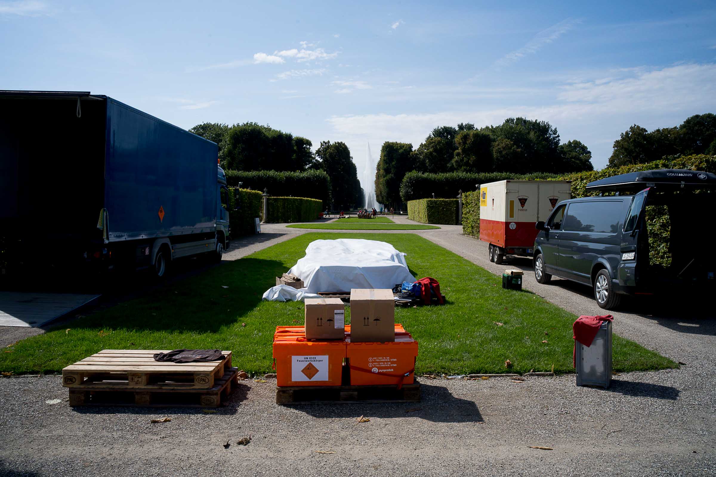 Die Herrenhäuser Gärten waren an diesem Tag festlich geschmückt. Zehn Hochzeiten fanden statt – mit Schloss, Wasserfontäne und gesperrten Wegen. Die Pyromantiker mussten sich ihren Weg durch das Labyrinth der Feierlichkeiten bahnen.