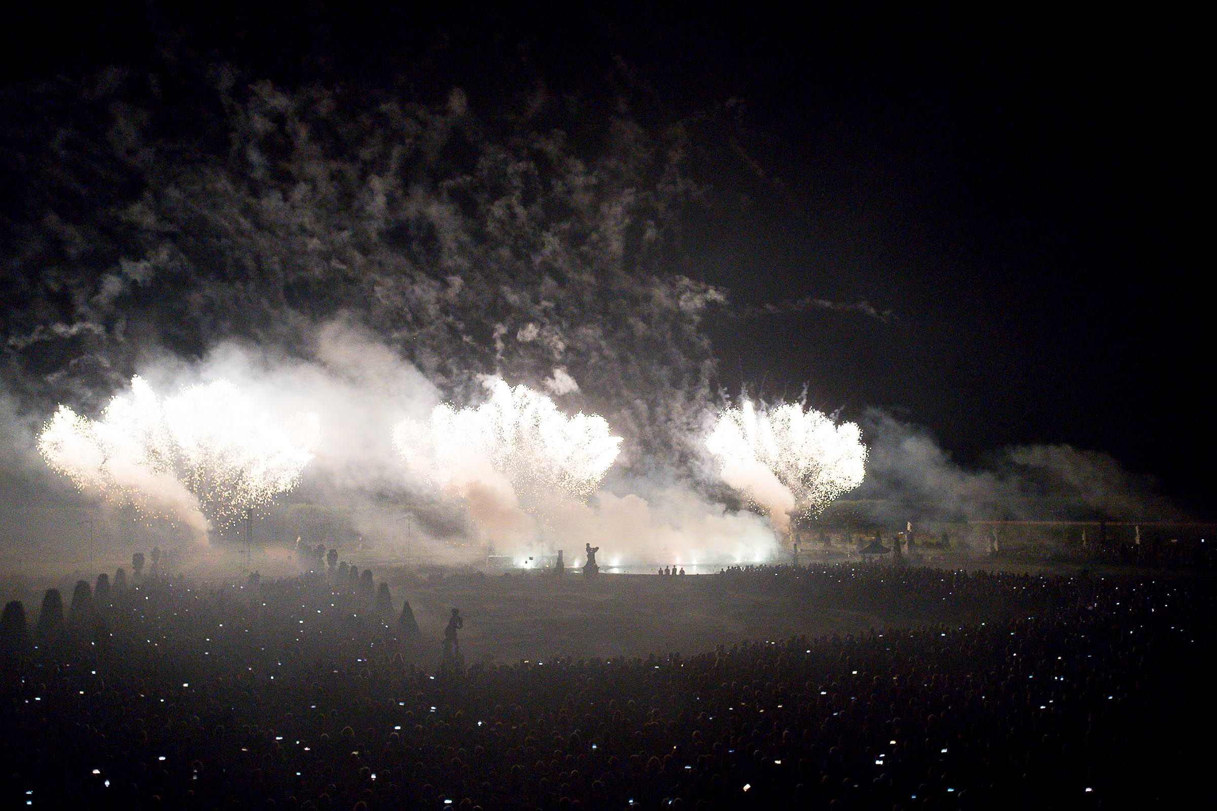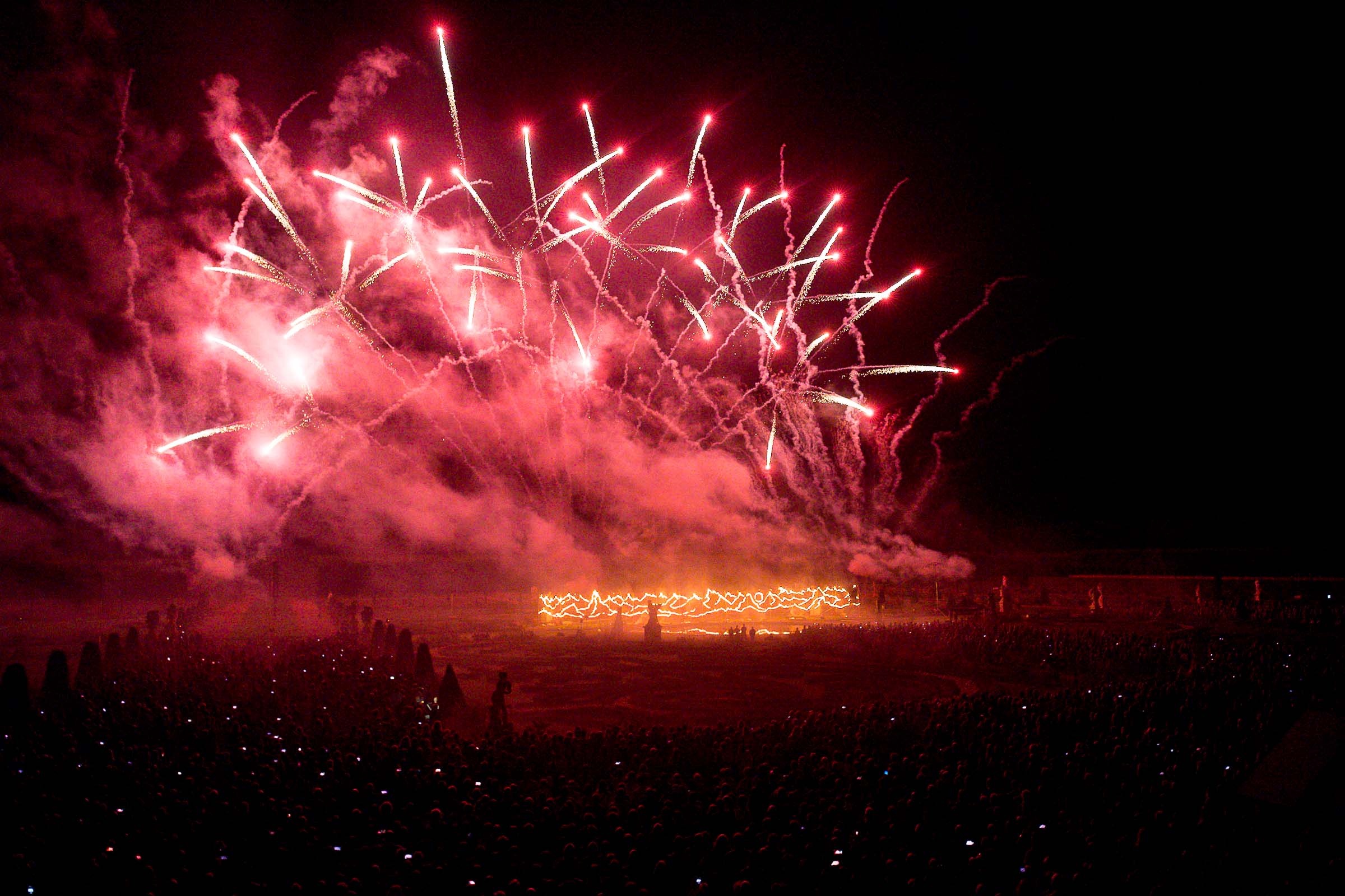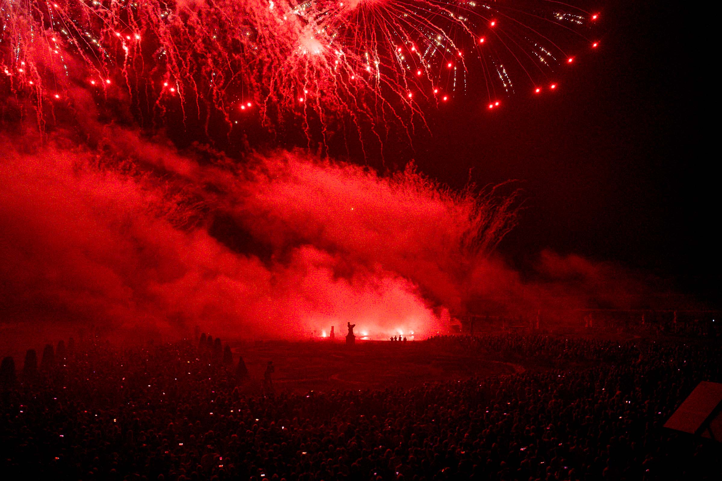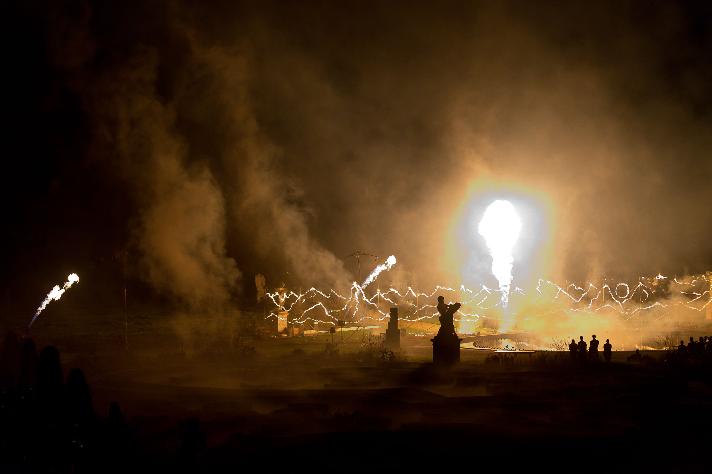 Doch zwei Stunden vor Beginn geschah das Unerwartete: Eine Windböe warf die Feuer-Berglandschaft um. Die Crew reagierte blitzschnell, baute alles neu auf – und rettete die Show.