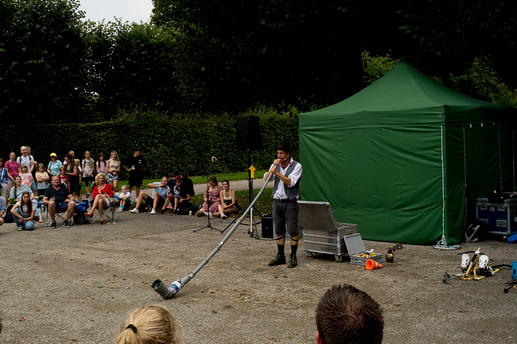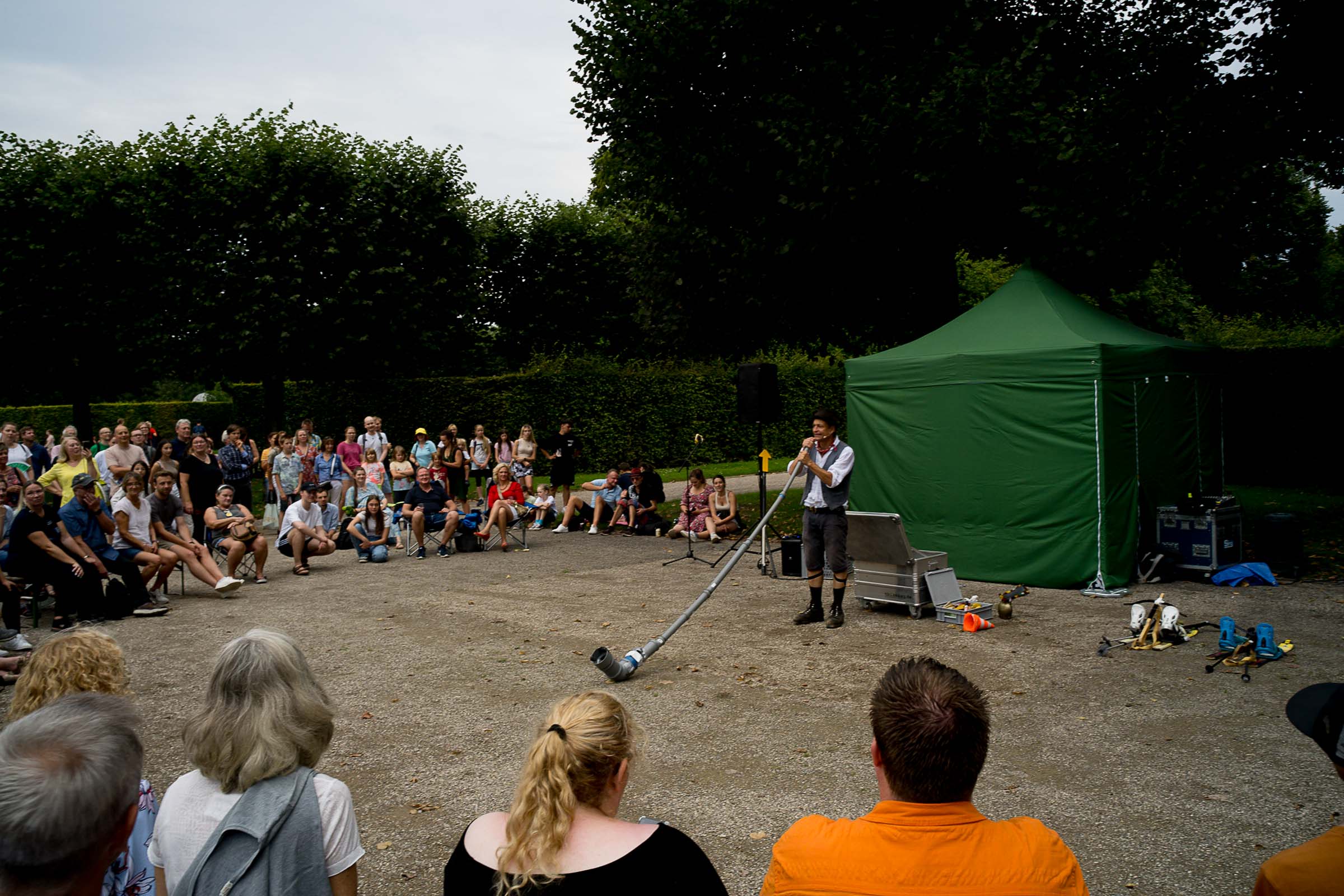 Neben dem Feuerwerk gab es auch Schweizer Unterhaltung: Ein Comedian aus Berlin brachte das Publikum zum Lachen – zwischen Skifahren, Fondue und Wortwitz. Die Fontänen im Park wurden zur Bühne, der Applaus war gross.