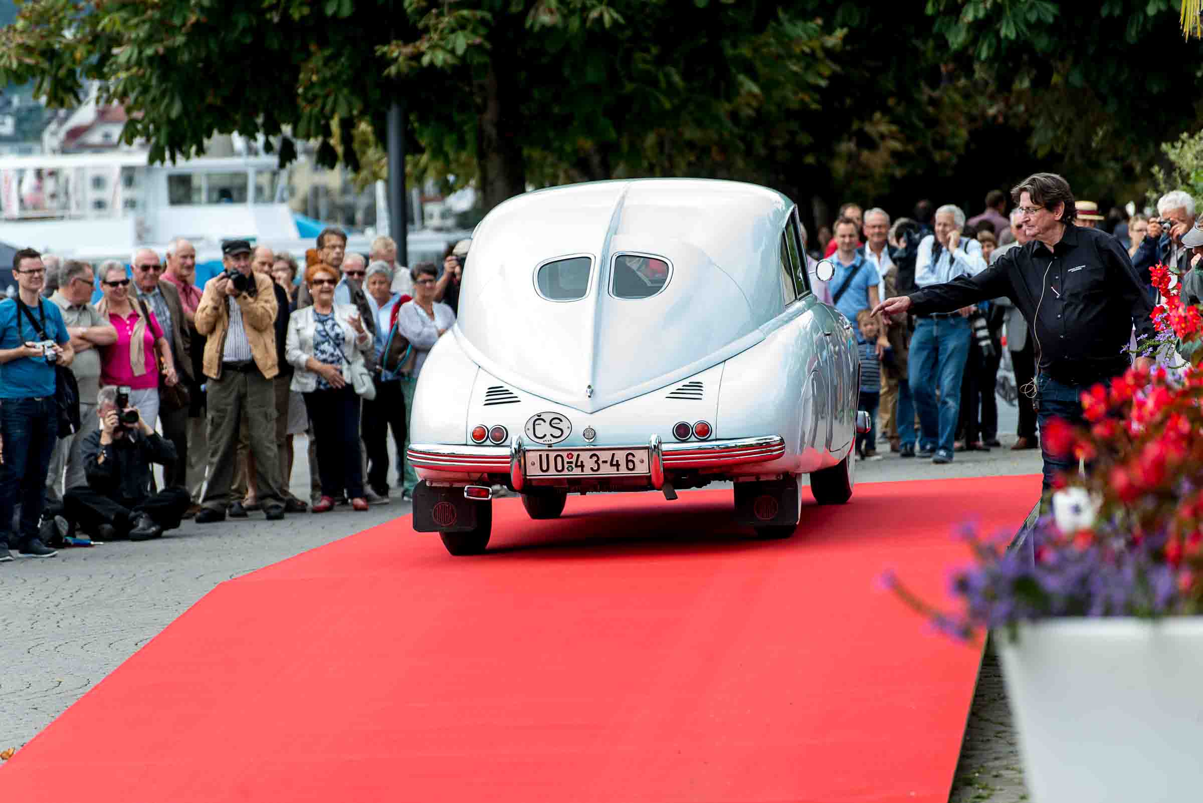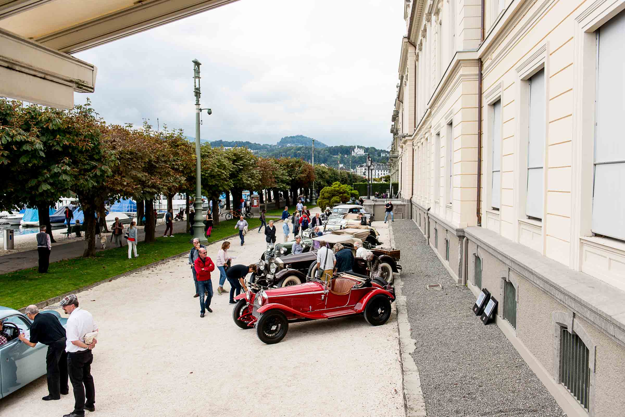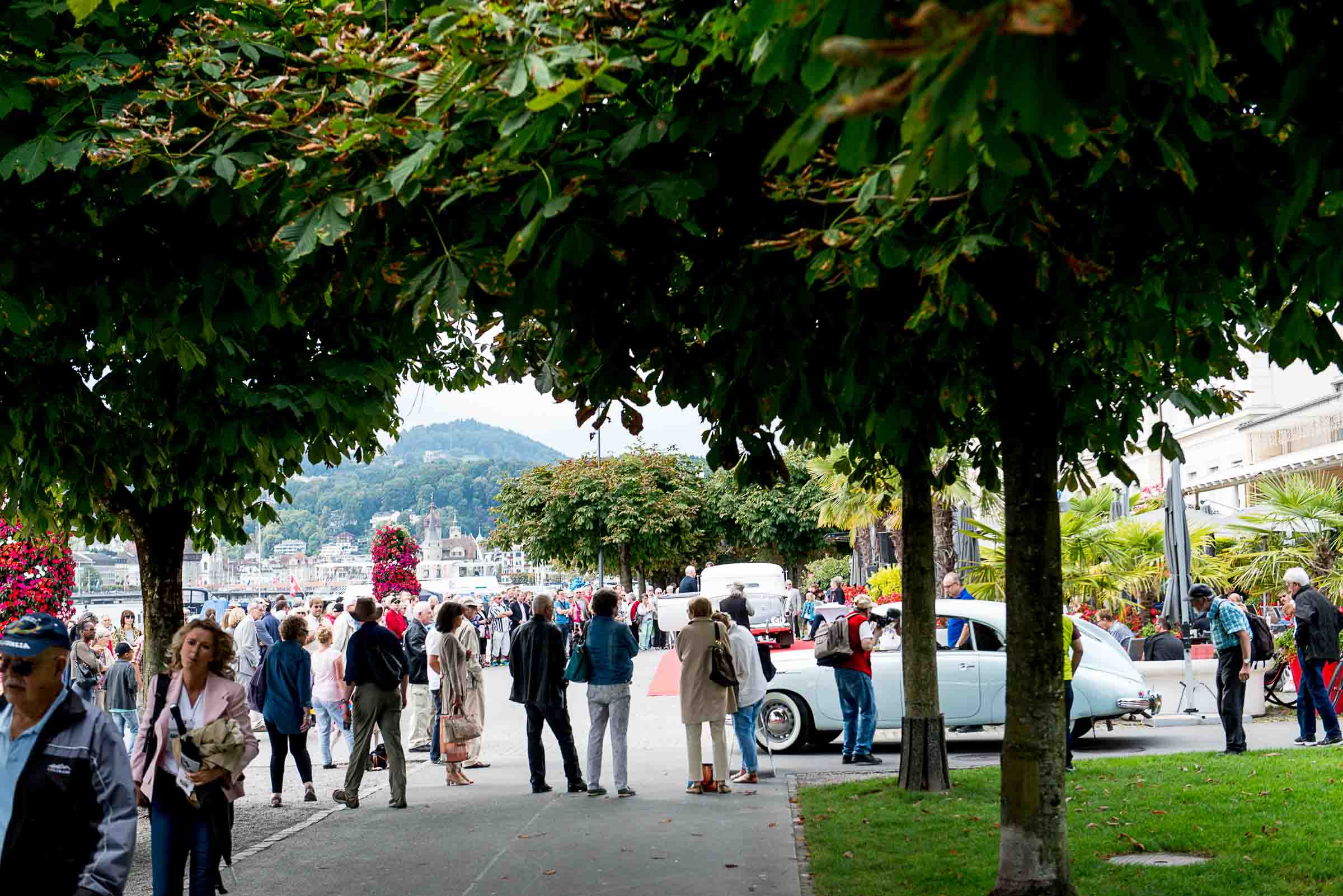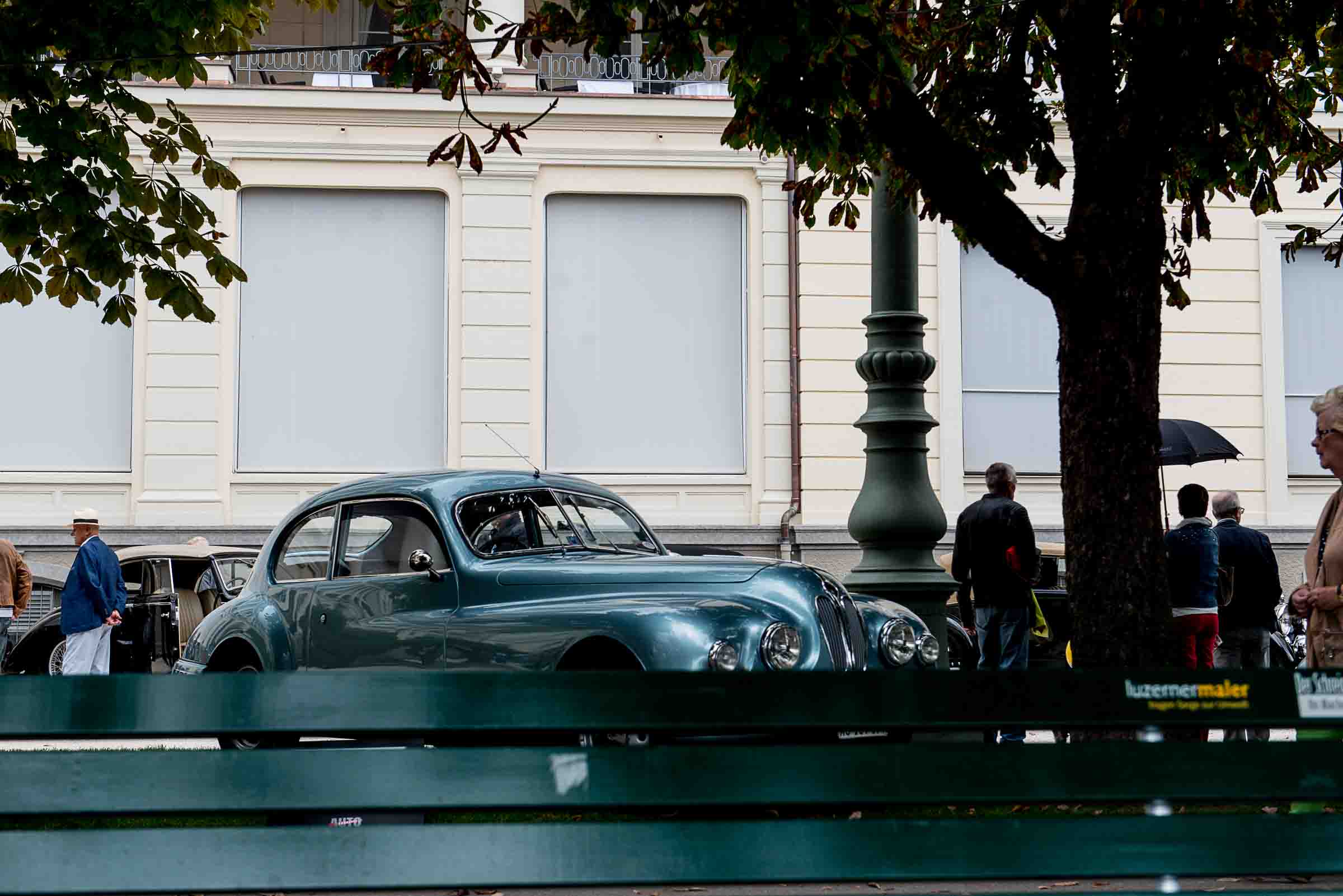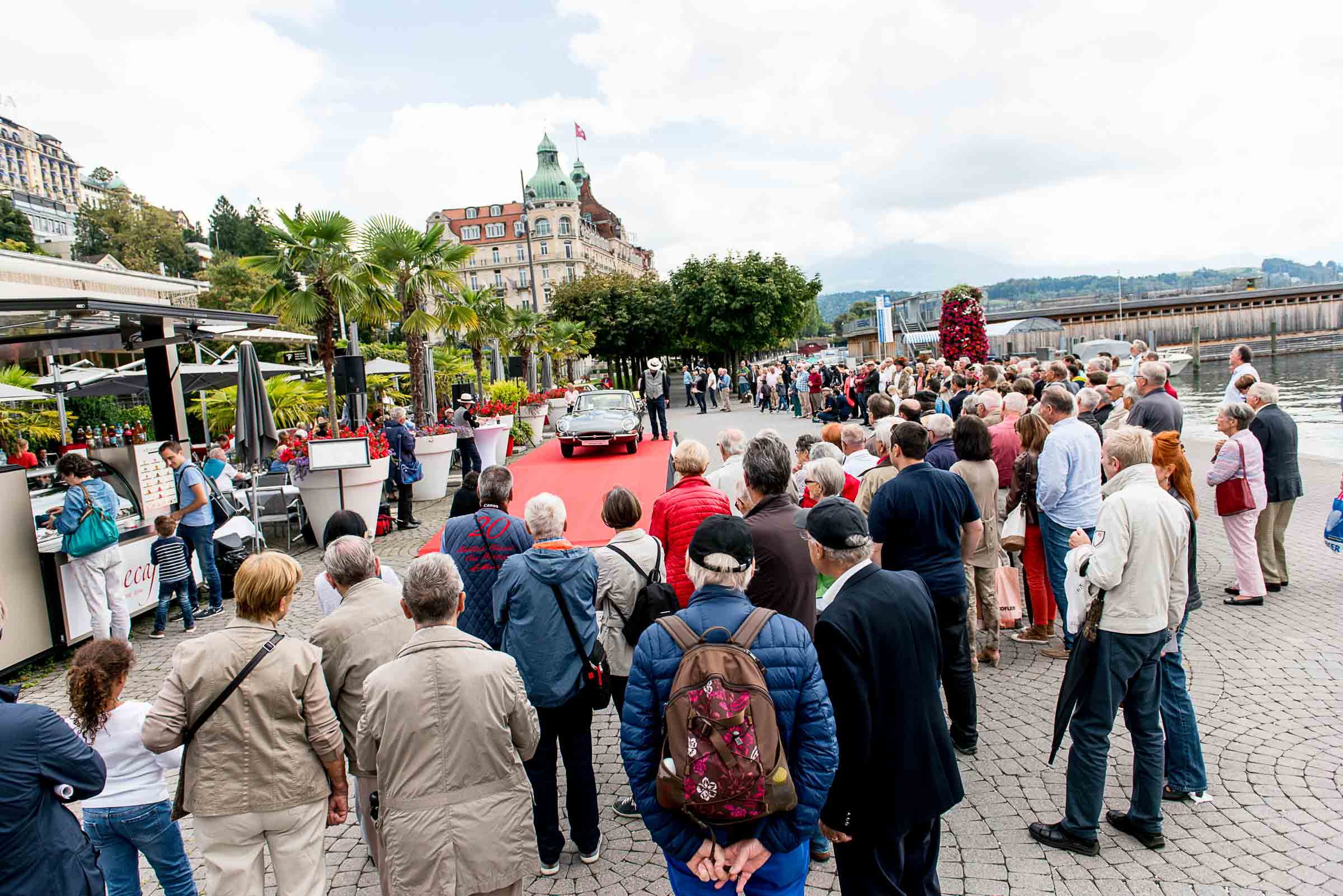 Die Einfahrt zum Nationalquai ist schmal. Schon wieder ist ein Oldtimer vorbeigefahren. Noch eine zusätzliche Schlaufe und auch dieser Oldtimer, Richtung Beauty Contest, ist unterwegs. Vorbei an Logenplätzen vor der Casino Terrasse und aufs Podest. Eine kurze Vorstellung der Besonderheiten und gemächlich dem Quai entlang rollen, vorbei an zahlreich erschienenen Zuschauern und einen Schauplatz ergattern.
