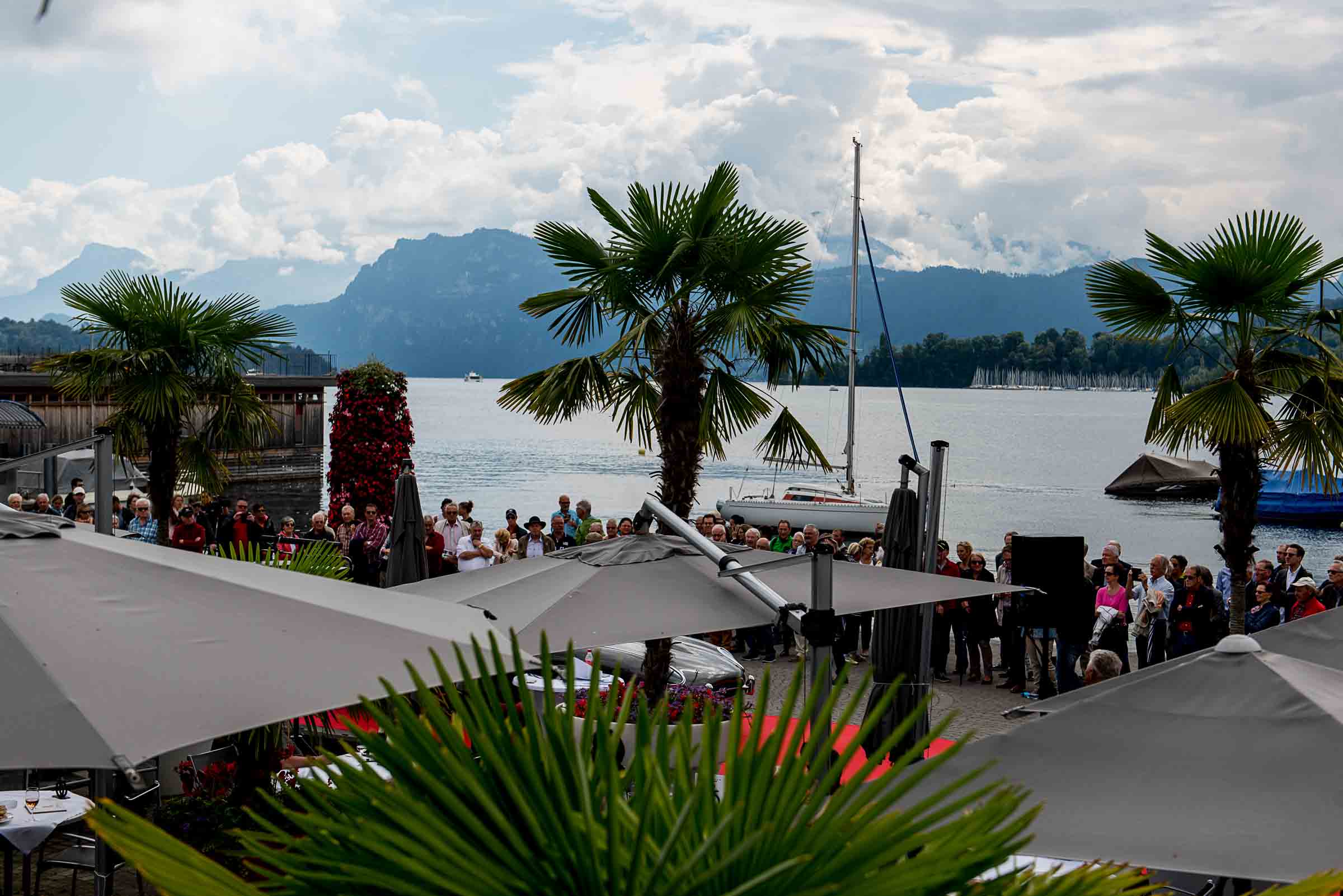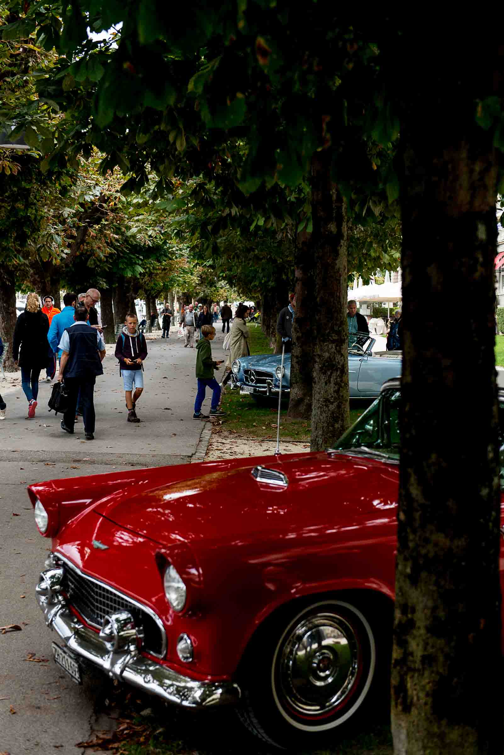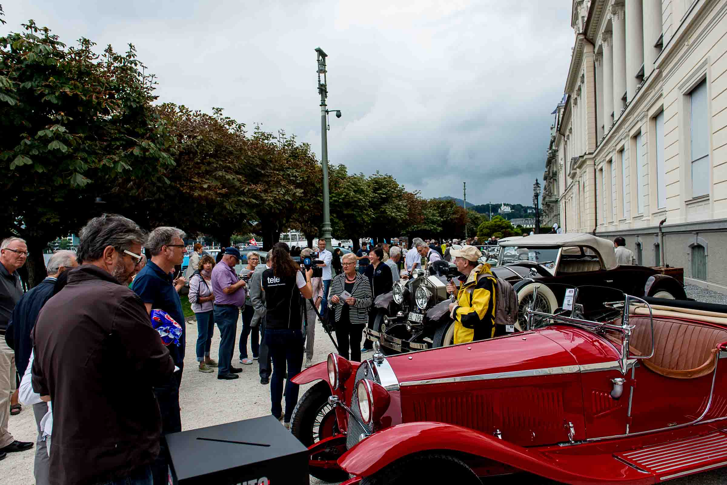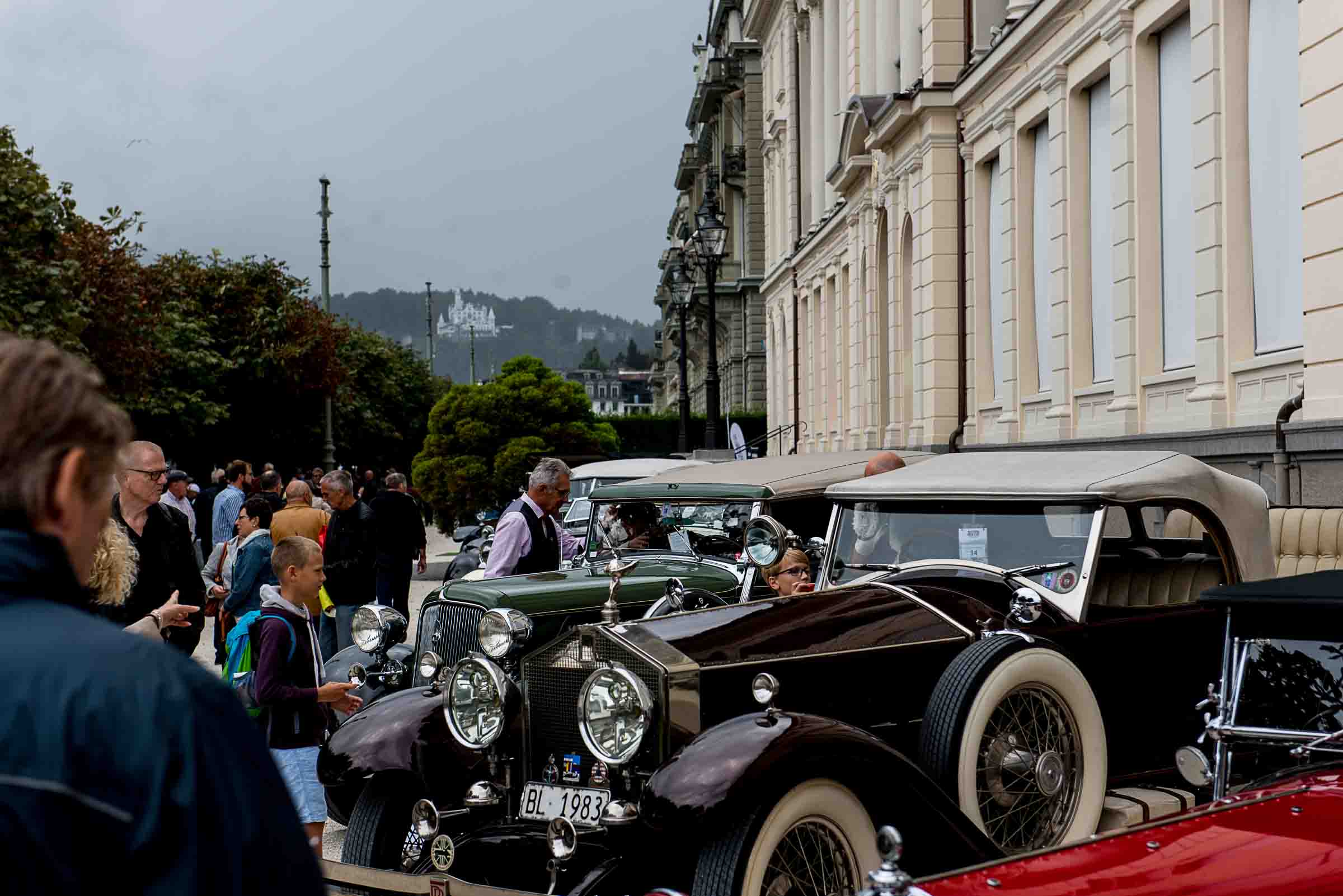 Die Einfahrt zum Nationalquai ist schmal. Schon wieder ist ein Oldtimer vorbeigefahren. Noch eine zusätzliche Schlaufe und auch dieser Oldtimer, Richtung Beauty Contest, ist unterwegs. Vorbei an Logenplätzen vor der Casino Terrasse und aufs Podest. Eine kurze Vorstellung der Besonderheiten und gemächlich dem Quai entlang rollen, vorbei an zahlreich erschienenen Zuschauern und einen Schauplatz ergattern.