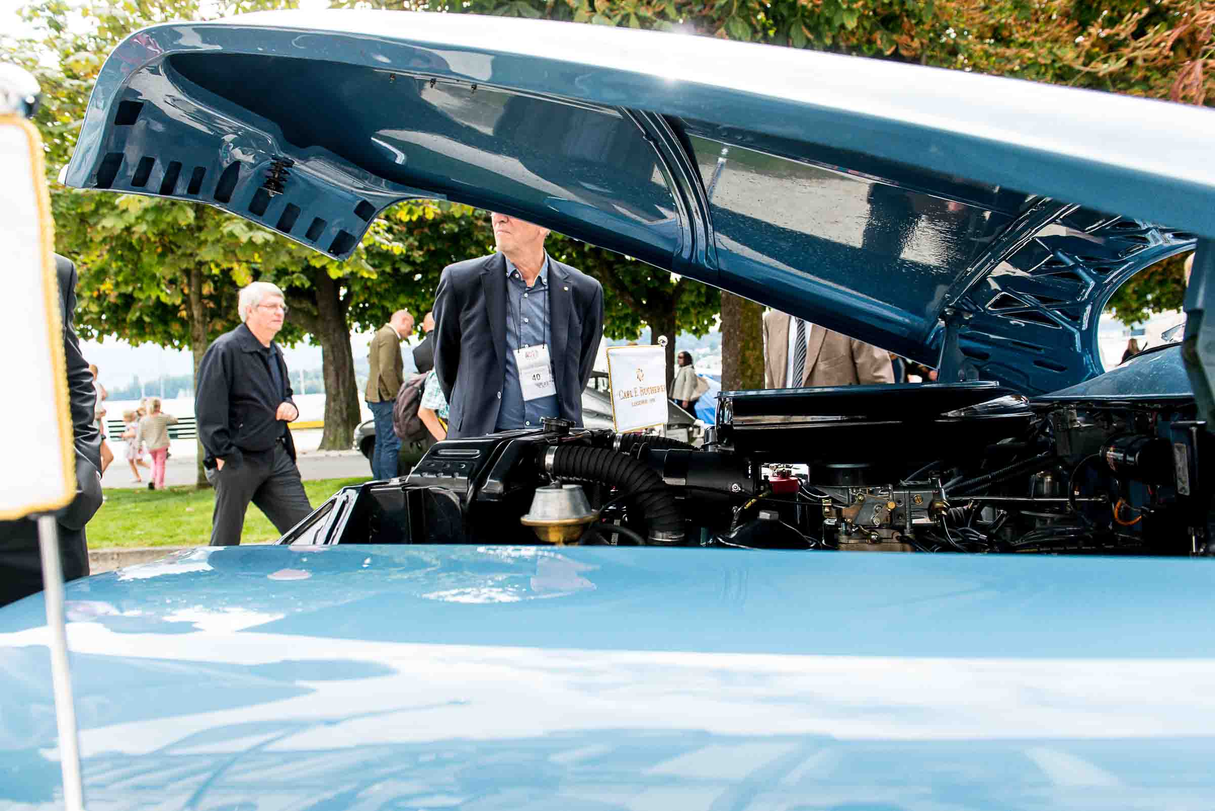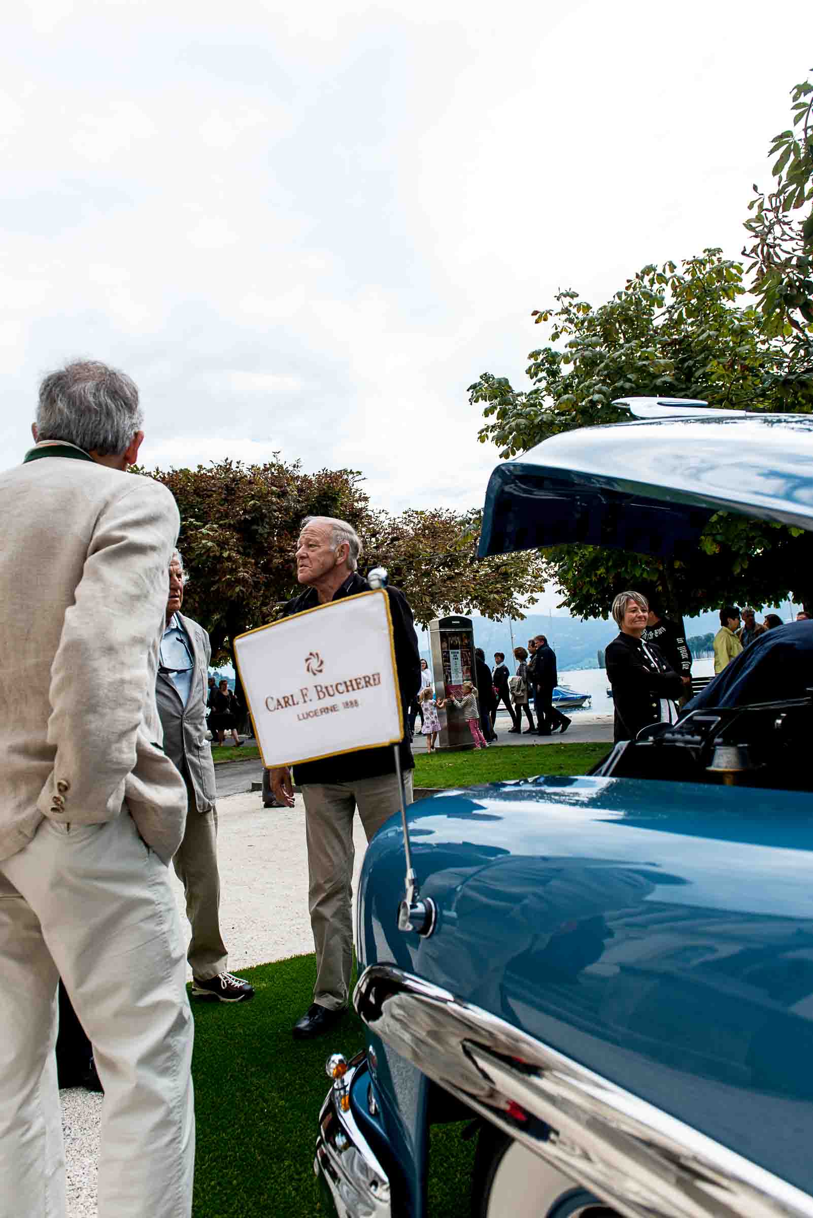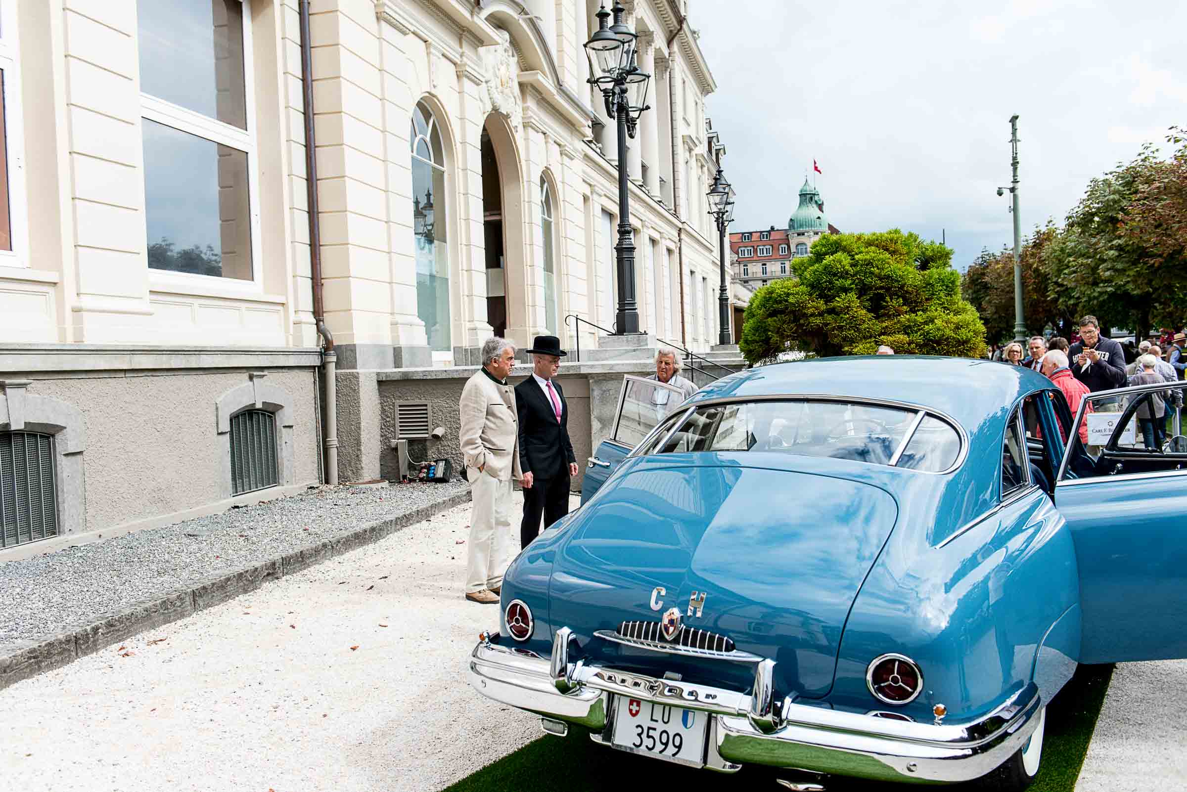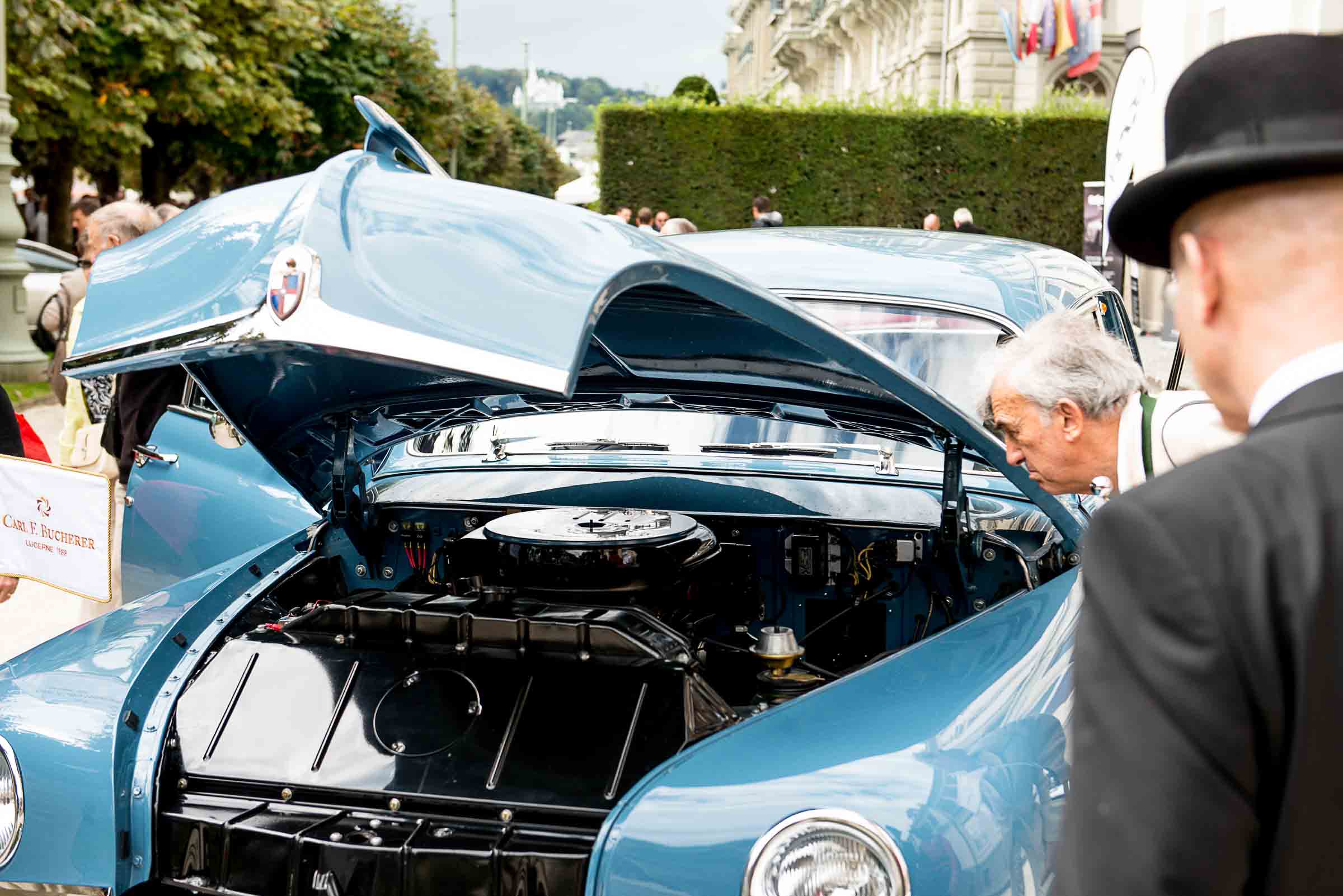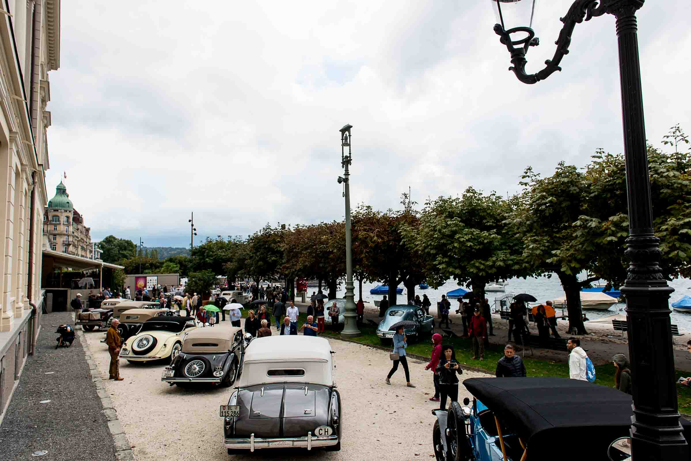 Die Einfahrt zum Nationalquai ist schmal. Schon wieder ist ein Oldtimer vorbeigefahren. Noch eine zusätzliche Schlaufe und auch dieser Oldtimer, Richtung Beauty Contest, ist unterwegs. Vorbei an Logenplätzen vor der Casino Terrasse und aufs Podest. Eine kurze Vorstellung der Besonderheiten und gemächlich dem Quai entlang rollen, vorbei an zahlreich erschienenen Zuschauern und einen Schauplatz ergattern.