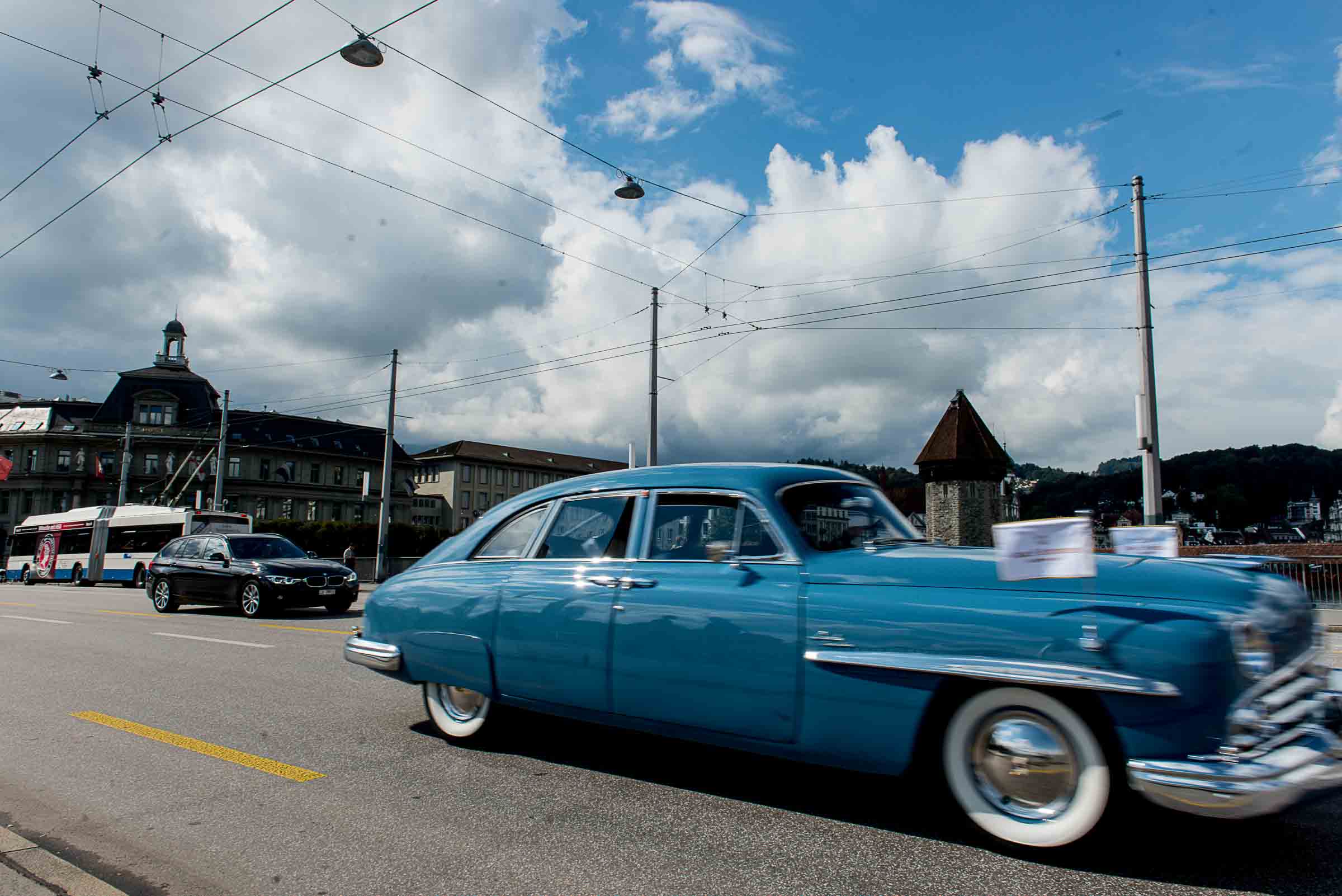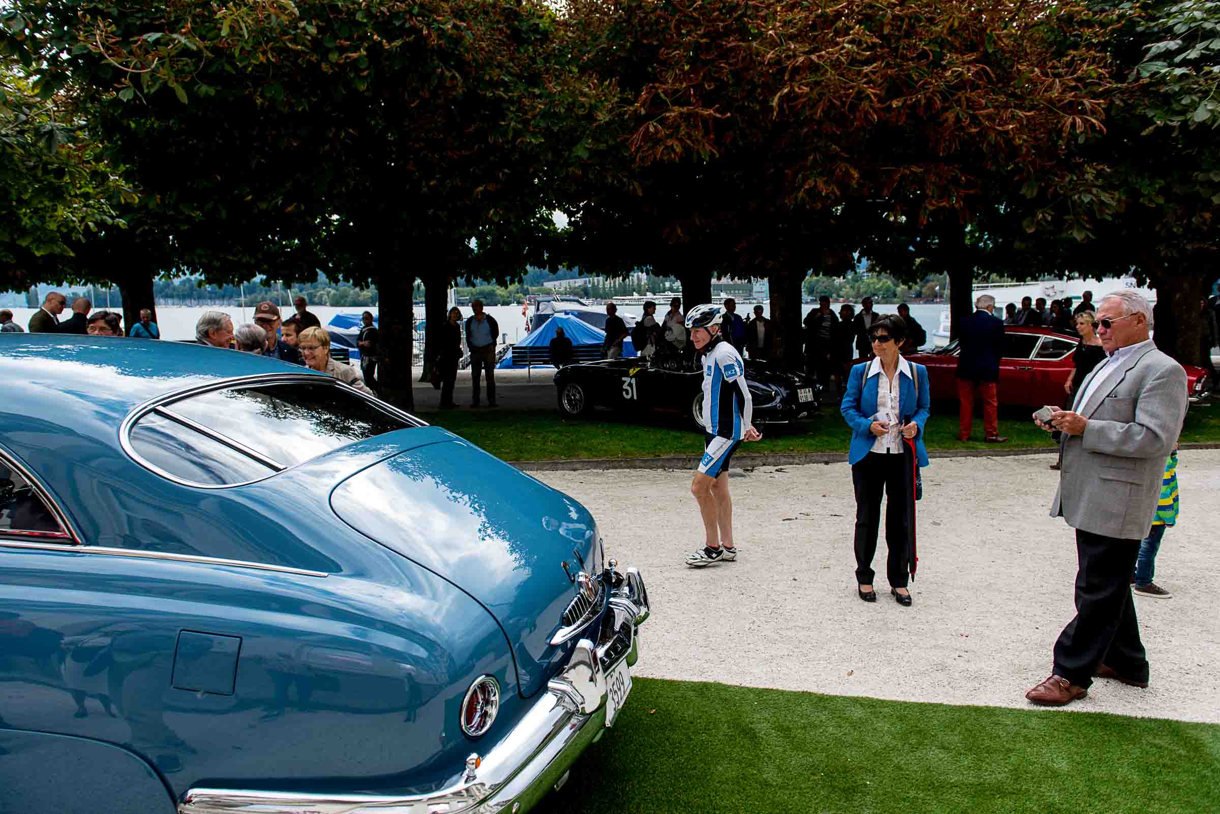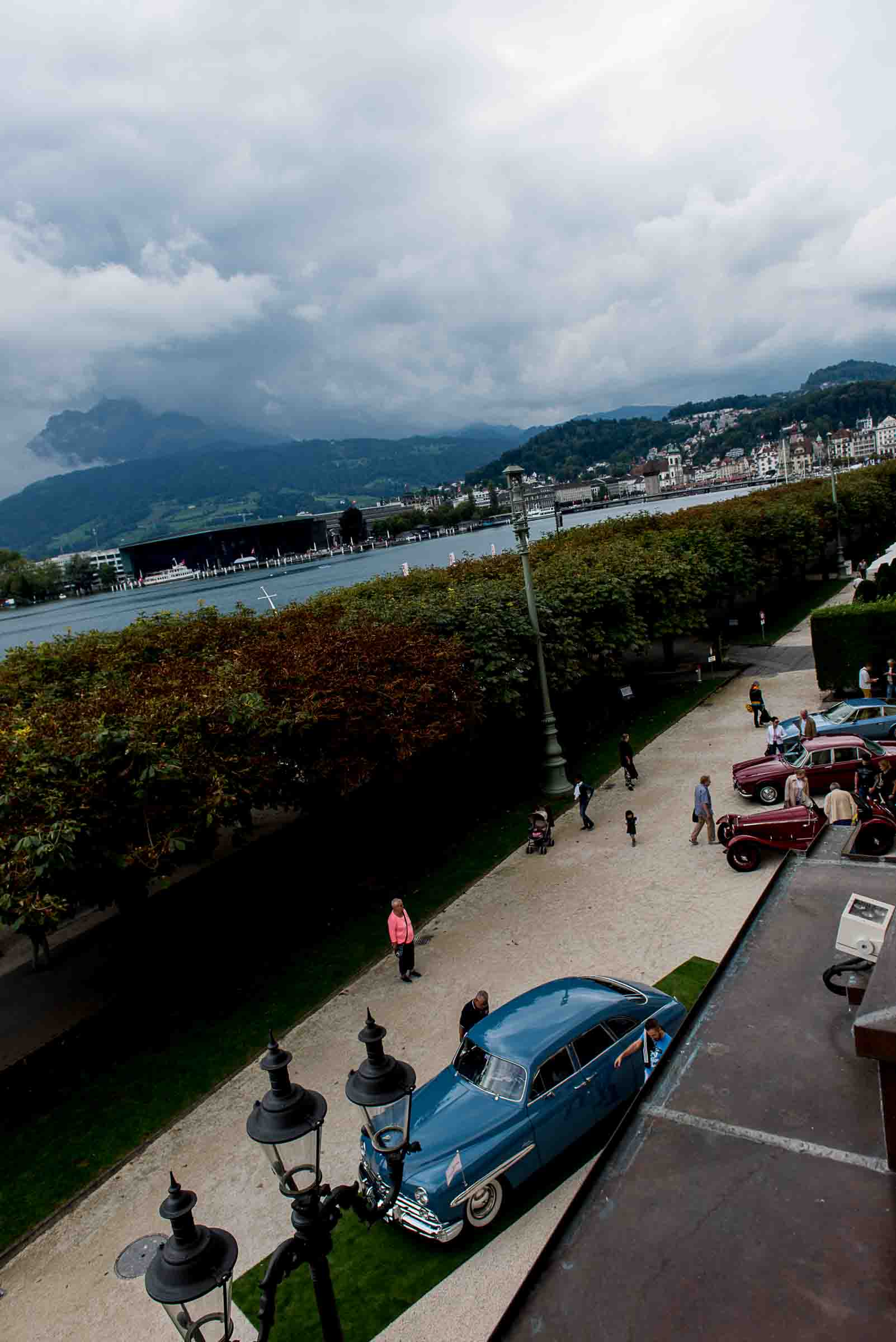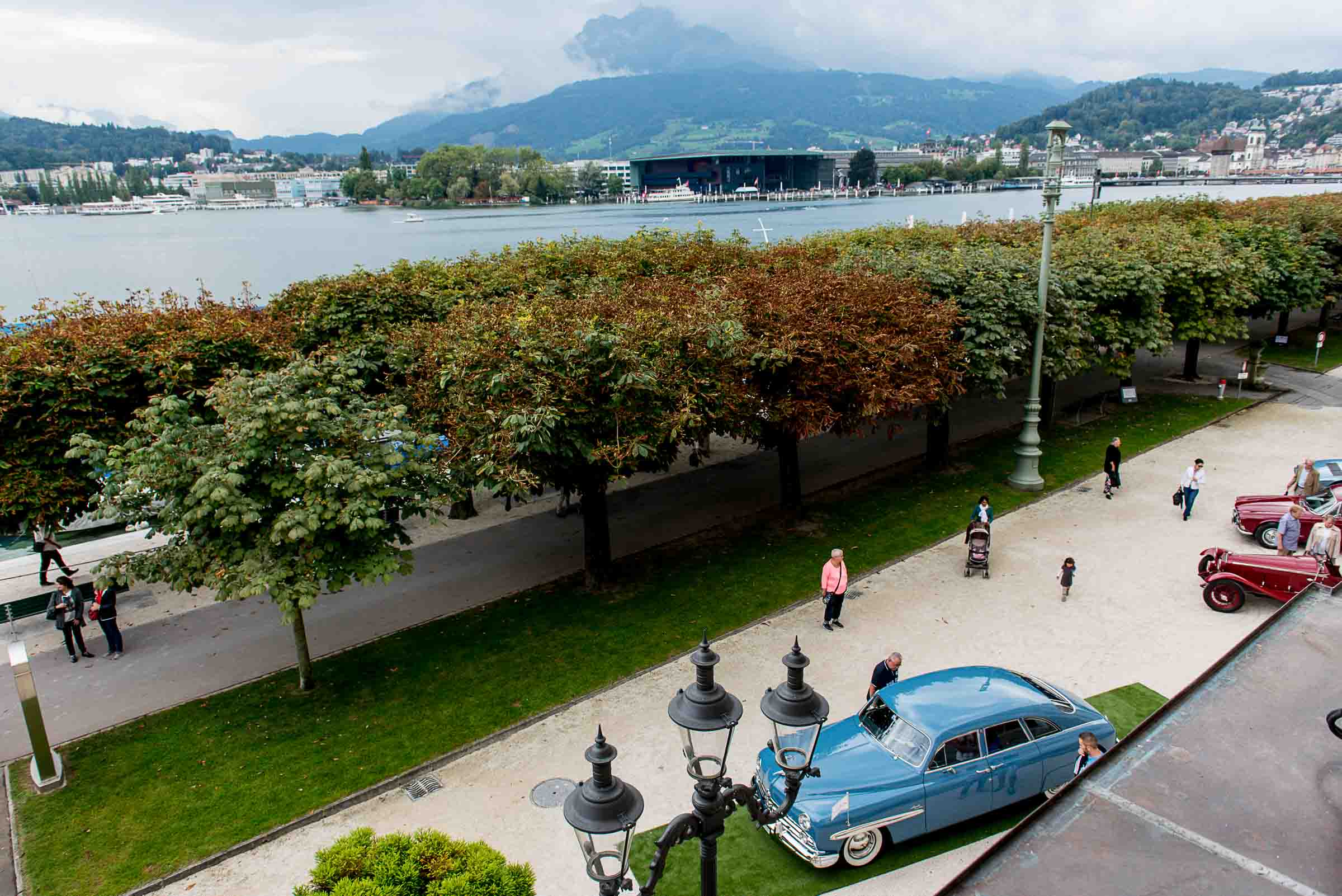 Die Einfahrt zum Nationalquai ist schmal. Schon wieder ist ein Oldtimer vorbeigefahren. Noch eine zusätzliche Schlaufe und auch dieser Oldtimer, Richtung Beauty Contest, ist unterwegs. Vorbei an Logenplätzen vor der Casino Terrasse und aufs Podest. Eine kurze Vorstellung der Besonderheiten und gemächlich dem Quai entlang rollen, vorbei an zahlreich erschienenen Zuschauern und einen Schauplatz ergattern.