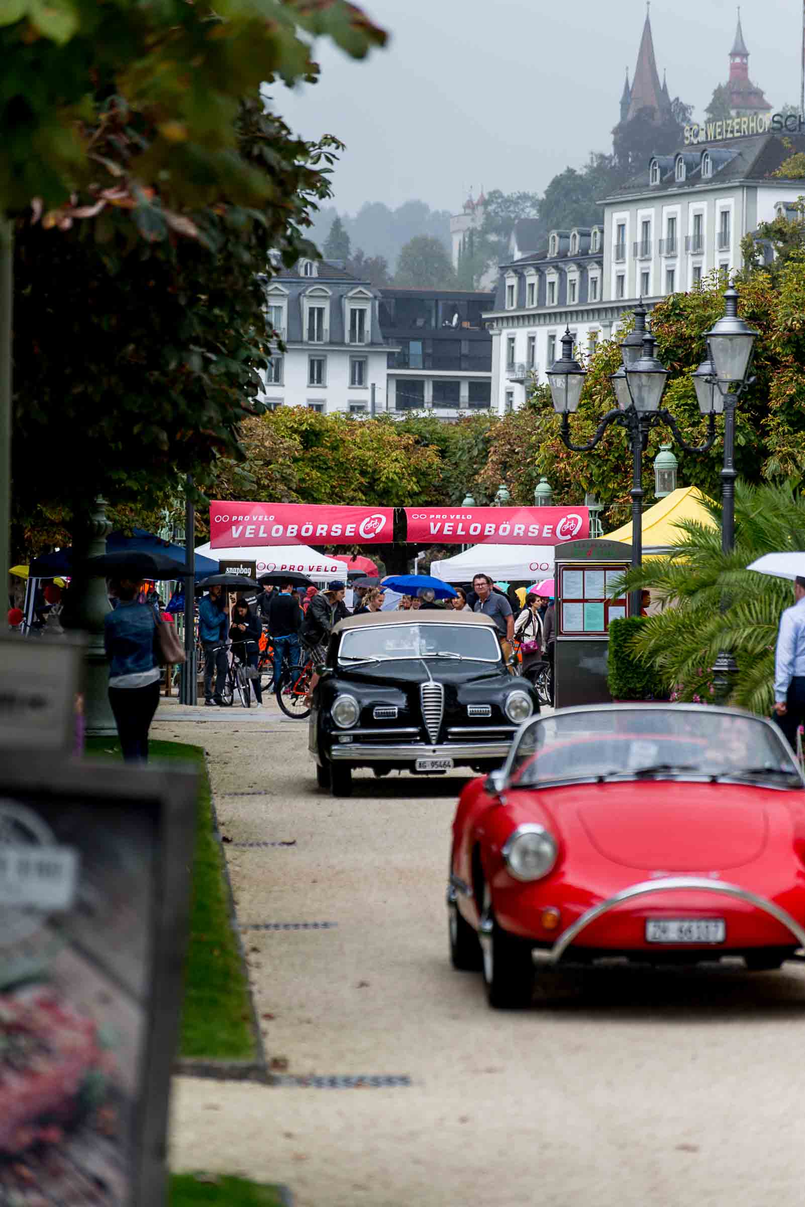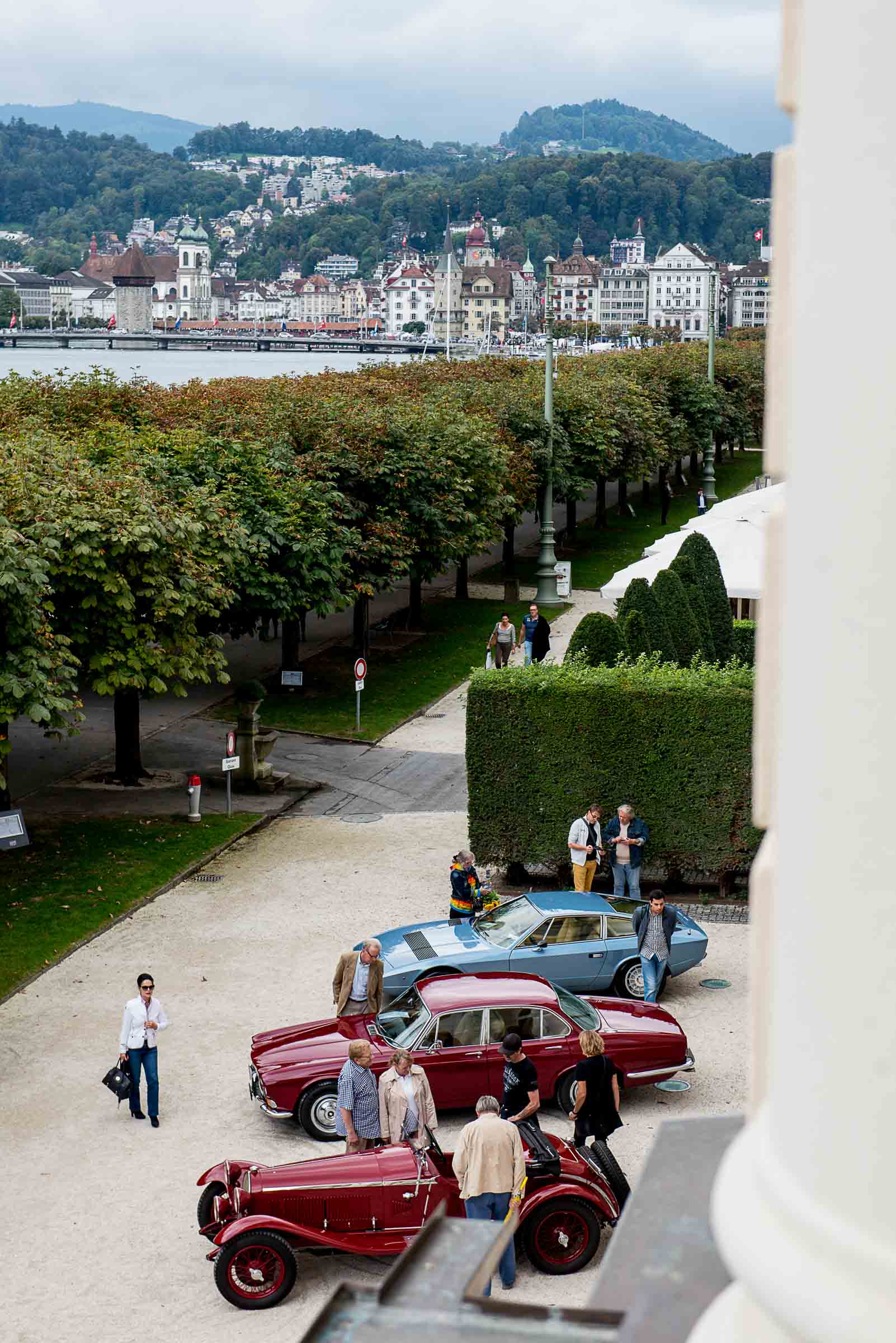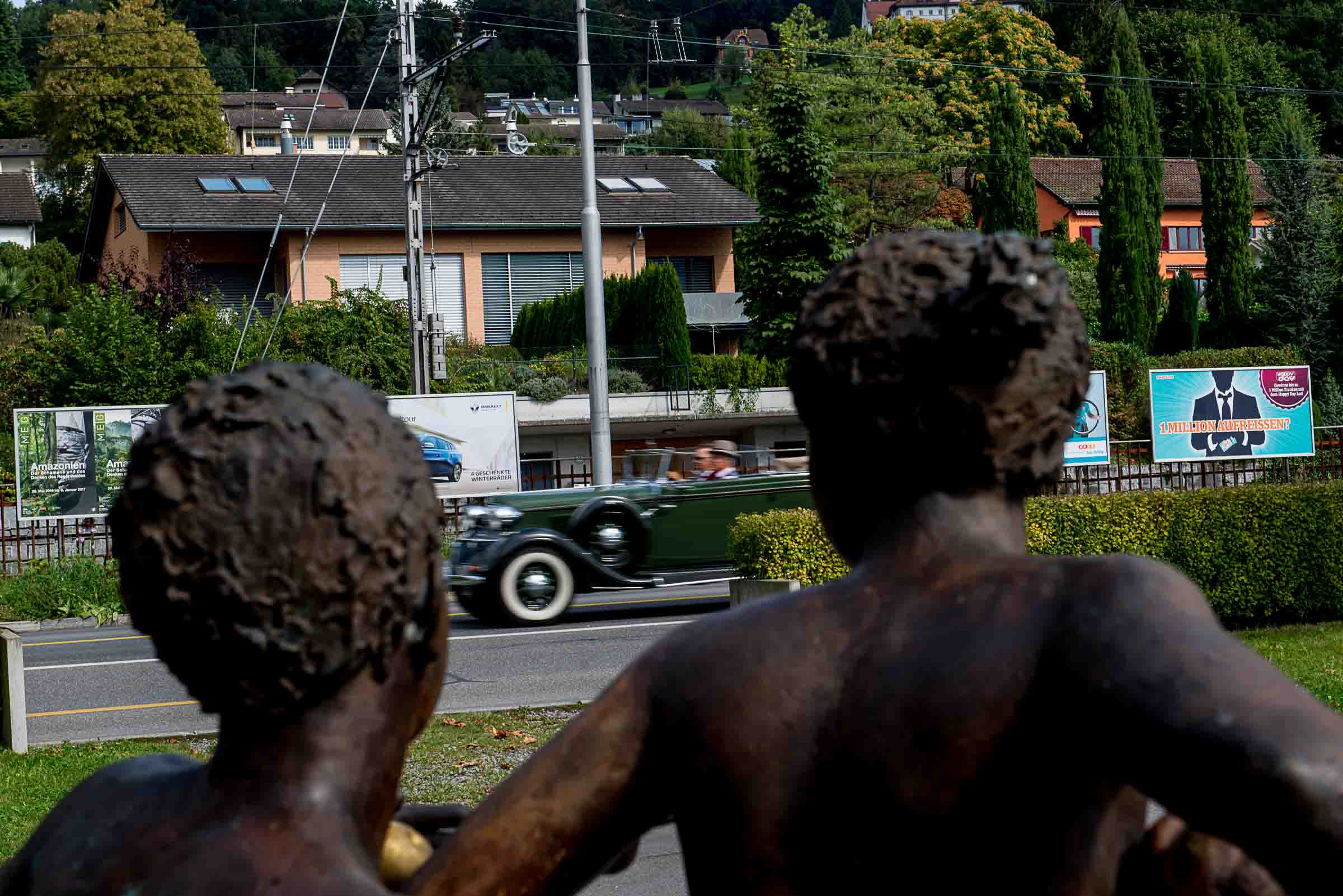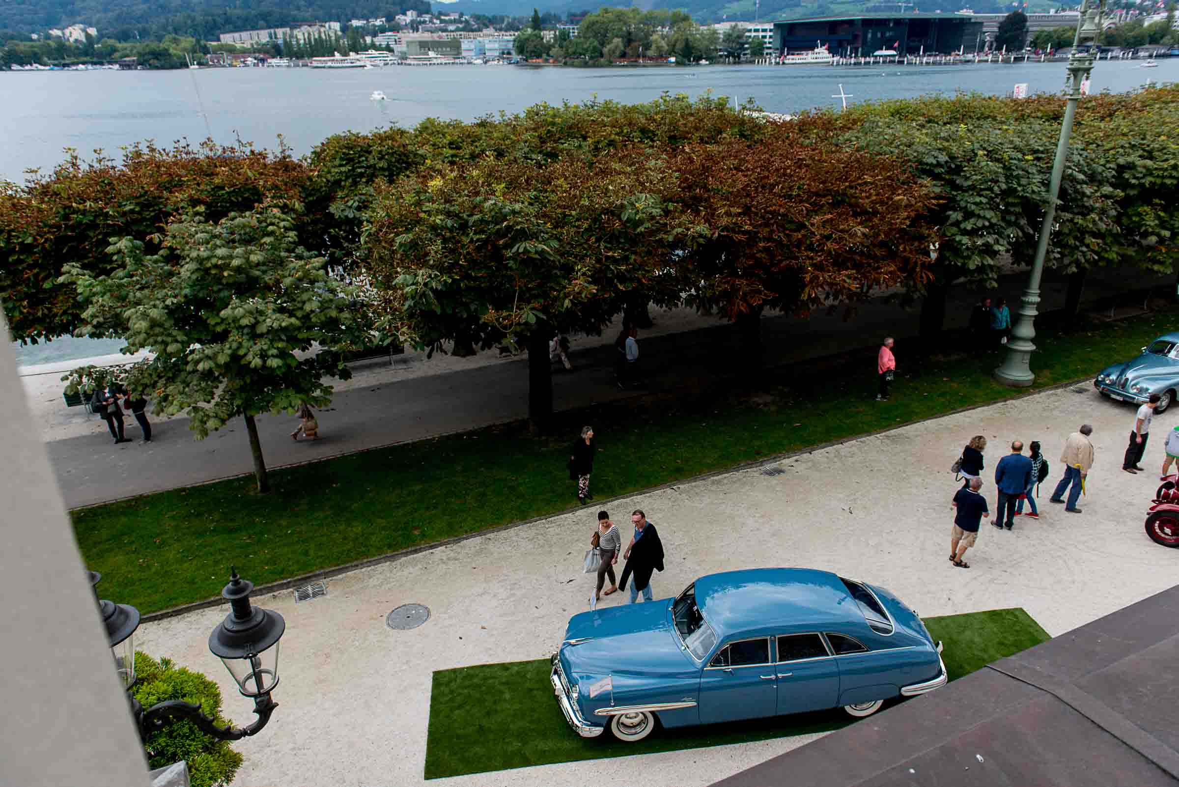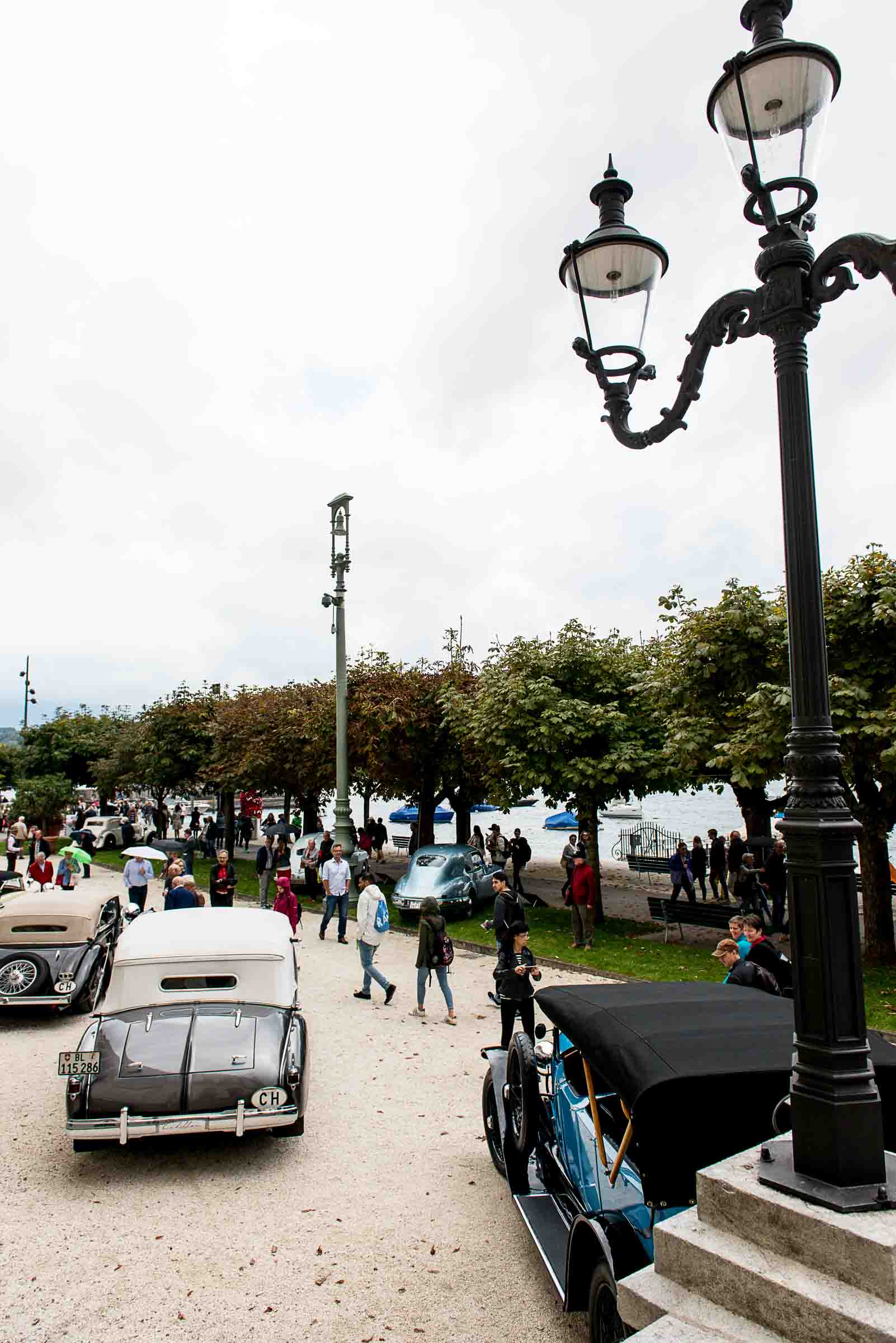 Die Einfahrt zum Nationalquai ist schmal. Schon wieder ist ein Oldtimer vorbeigefahren. Noch eine zusätzliche Schlaufe und auch dieser Oldtimer, Richtung Beauty Contest, ist unterwegs. Vorbei an Logenplätzen vor der Casino Terrasse und aufs Podest. Eine kurze Vorstellung der Besonderheiten und gemächlich dem Quai entlang rollen, vorbei an zahlreich erschienenen Zuschauern und einen Schauplatz ergattern.