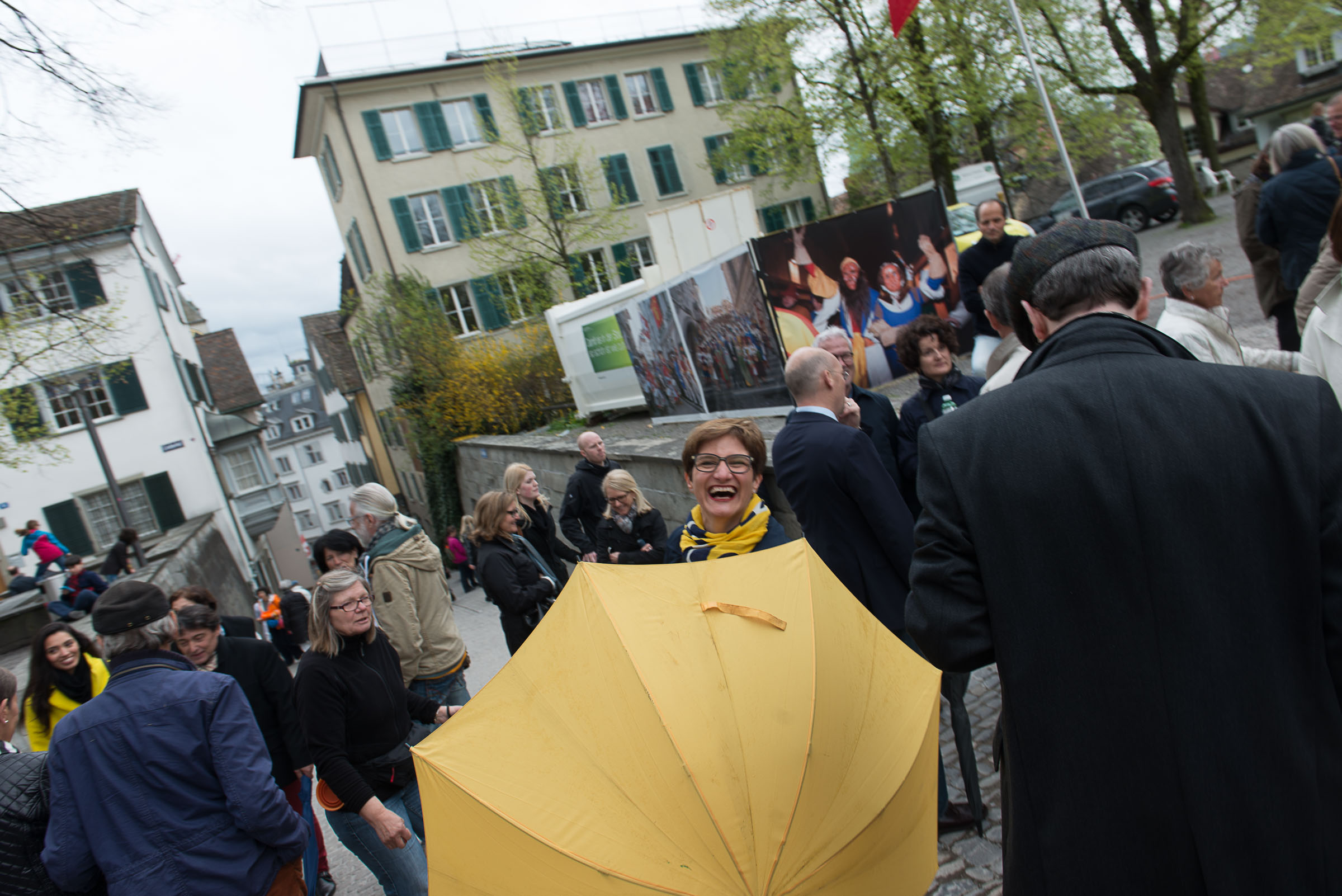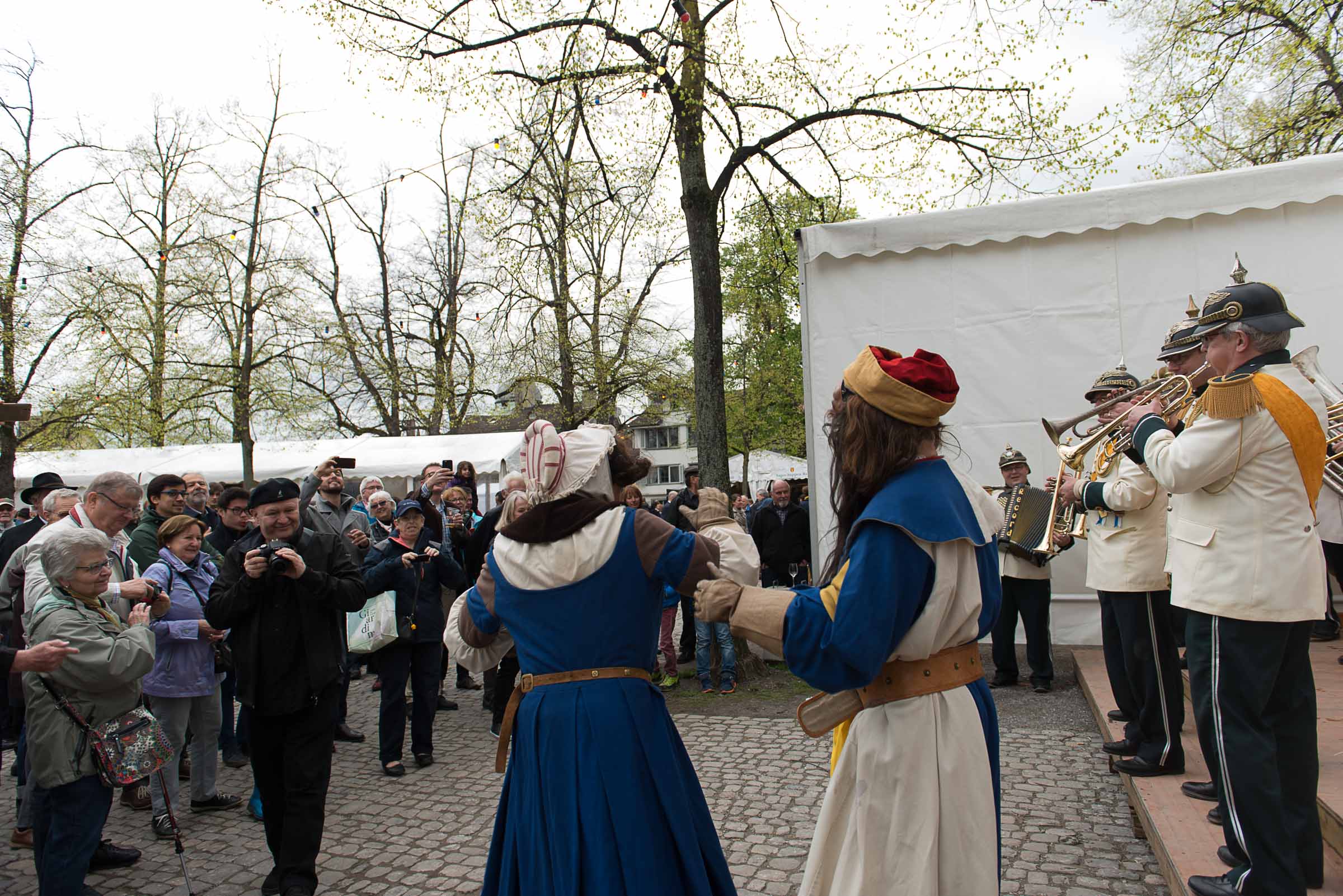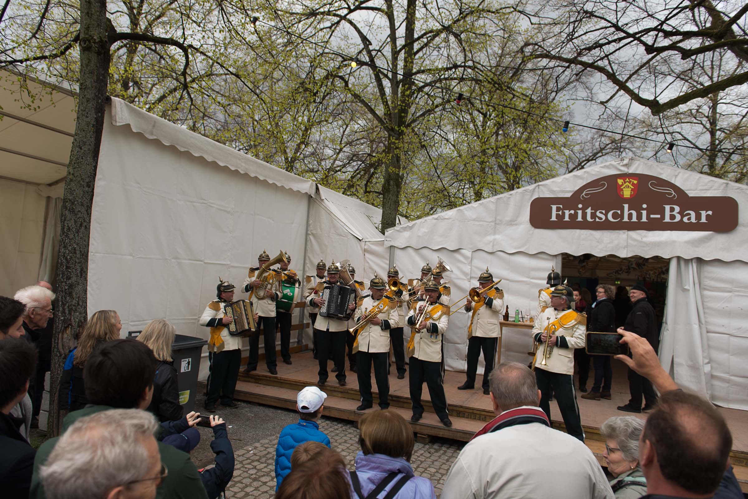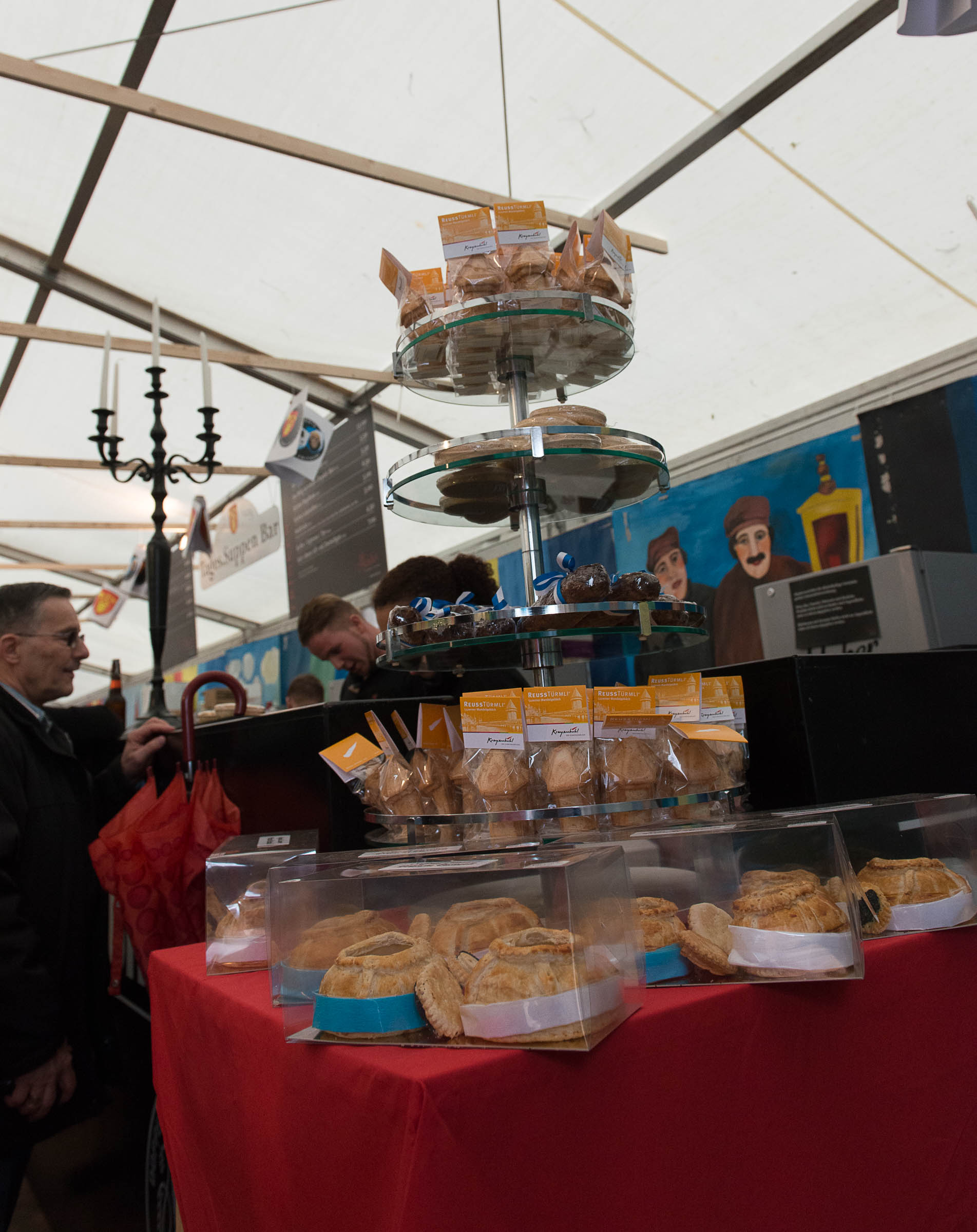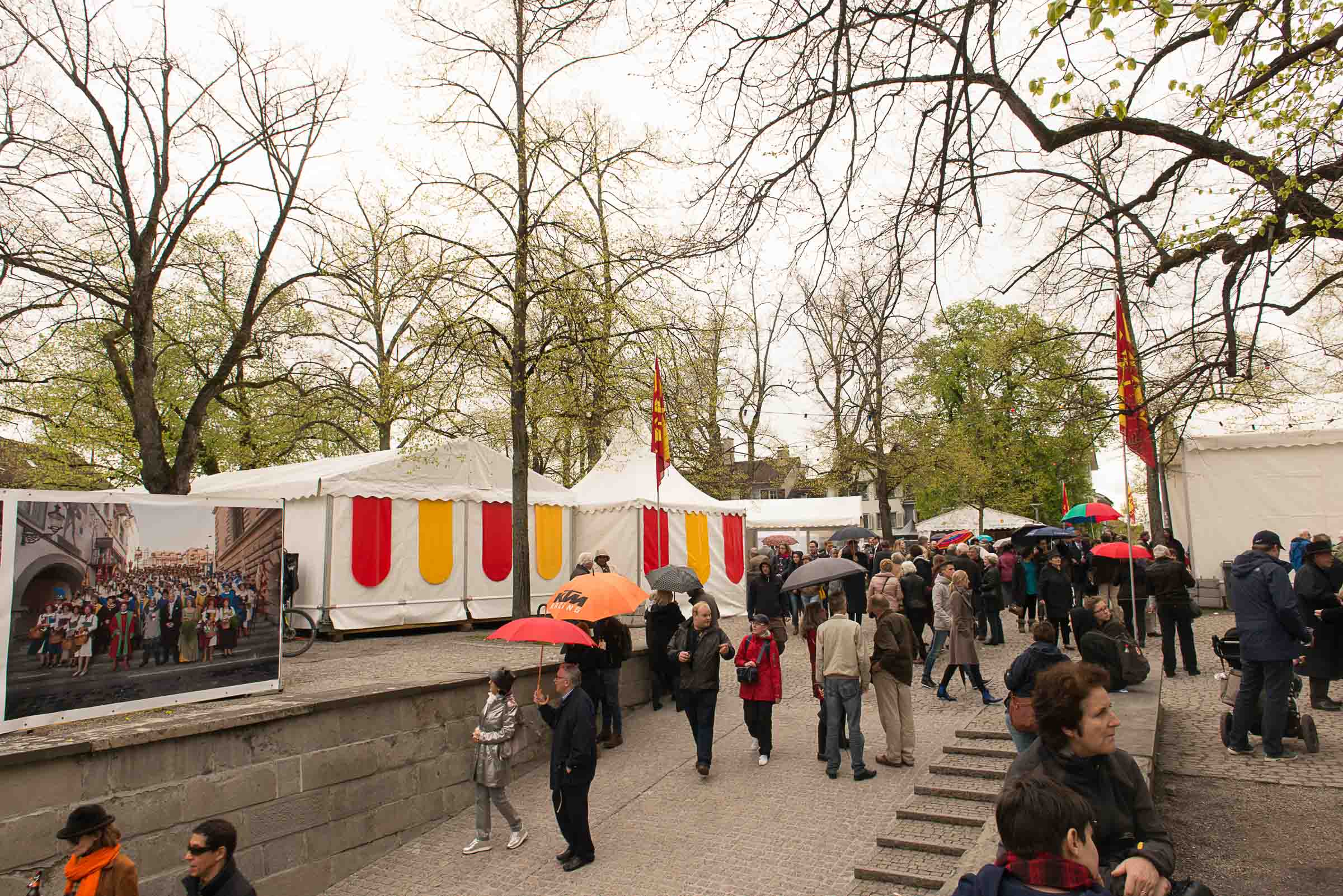 Den Kafi HuerenAff geniesst man im Zelt, wo es andere Lozärner Köstlichkeiten zu kaufen gibt. Die Zürcher Besucher sollen sich wohl fühlen, Gastfreundschaft pur und sie kommen in Scharen und feiern mit. Insider sagen, soviele Leute seien schon lange nicht mehr im Lindenhof am Sechseläuten gewesen.