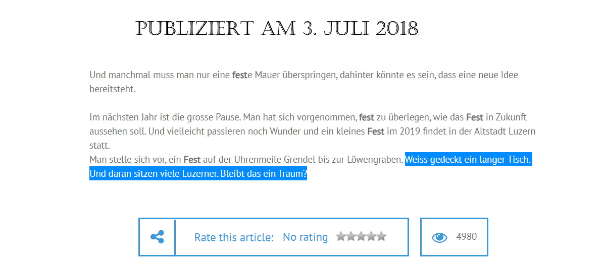 Vor drei Jahren als das letzte Luzernerfest stattfand, wurde unter dem Titel Sitzt das Luzerner Fest fest? der Blogpost mit dem folgenden Schlusssatz publiziert.