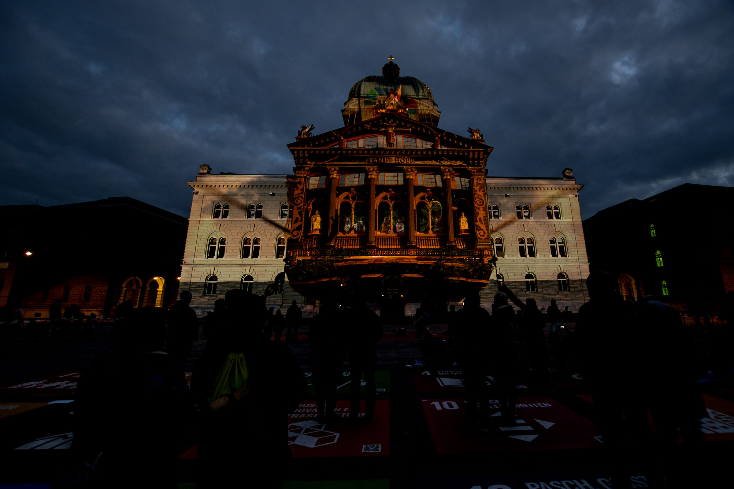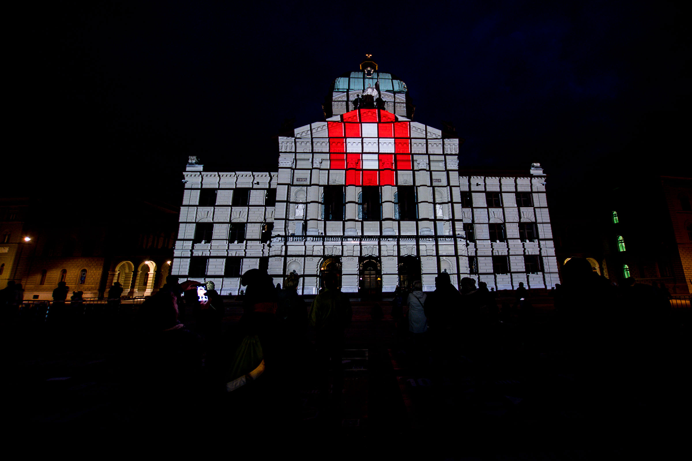 Ein Besuch in Bern, am Tag nach der Premiere. Drei Besucher-Sektoren sind auf dem Bundesplatz eingezäunt. Jeweils 300 BesucherInnen sind erlaubt. Sektor B ist der Beste. Man steht direkt vor dem Bundeshaus und bekommt die Show in einer 180 Grad Sicht vorgeführt. Dass nicht nur das Licht zählt, erfährt der Besucher spätestens bei den Toneffekten, die vom Ständeratsbalkon auf die Besucher herunter rieseln. Platz hat es genug. Vorbei sind die Zeiten, als man nach der Vorstellung glücklich war, dass nur 2 - 3 Besucher oder Kinder über das Stativ mit Camera gestolpert sind. Mit drei Vorstellungen pro Abend unter der Woche und Do und Sa noch eine mehr, sind die Besuchsströme dieses Jahr anders organisiert. Man registriert sich für's Contact Tracing, bekommt einen QR Code und zeigt diesen bein Eintritt. Kosten für den Eintritt: 0 CHF. Nach der Vorstellung verlässt man den Platz über die Seitengassen. Gedränge gibts keines.900 anstatt 10'000 Augenpaare haben eine 30 minütige Show genossen.
