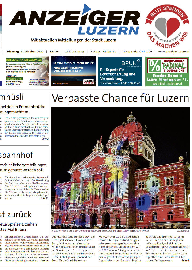 "In Bern seien für sie die drei Punkte Licht, Musik und eine Story dahinter zentral, dies fehle ihr in Luzern noch." sagt die Creatorin des Rendez-vous Bundesplatz, Brigitte Roux im Artikel vom Anzeiger Luzern.