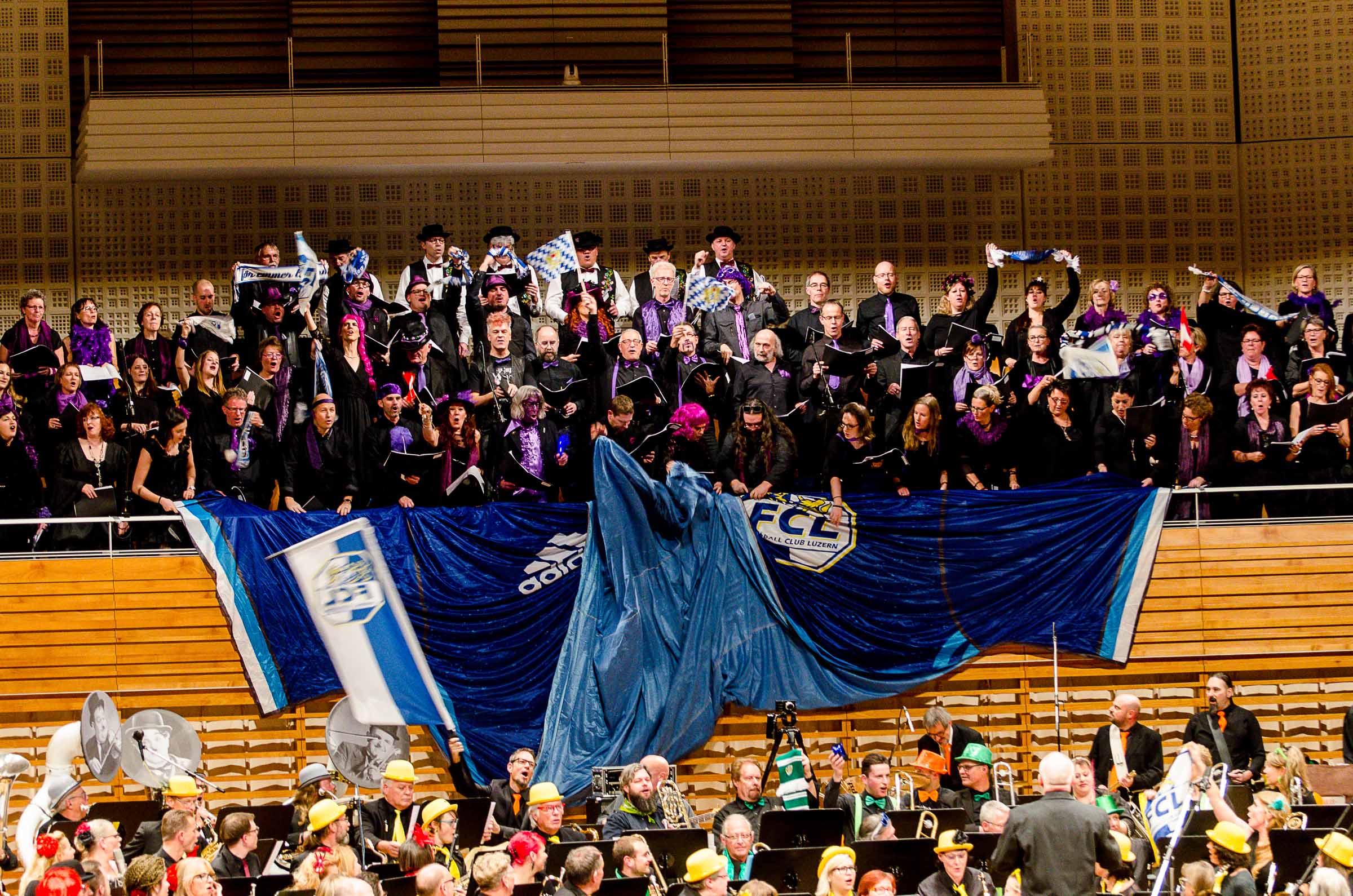 Eine Geschichte über No-Konfetti im KKL, ein roter Slip der an einem Mikrophon hängt und kunstvoll von einem Chor-Mitglied geschwungen wird, die Erfolgs-Geschichte vom Jodlerklub Pilatus der vor 10 Jahren noch keine Homepage hatte und vor dem Aus stand und auf eine geniale Idee wartet um weiterzubestehen, und einem Herr L. aus M., der als einziger im Saal aufstand als eine blaue Fahne vom Chor-Ensemble enthüllt wurde.