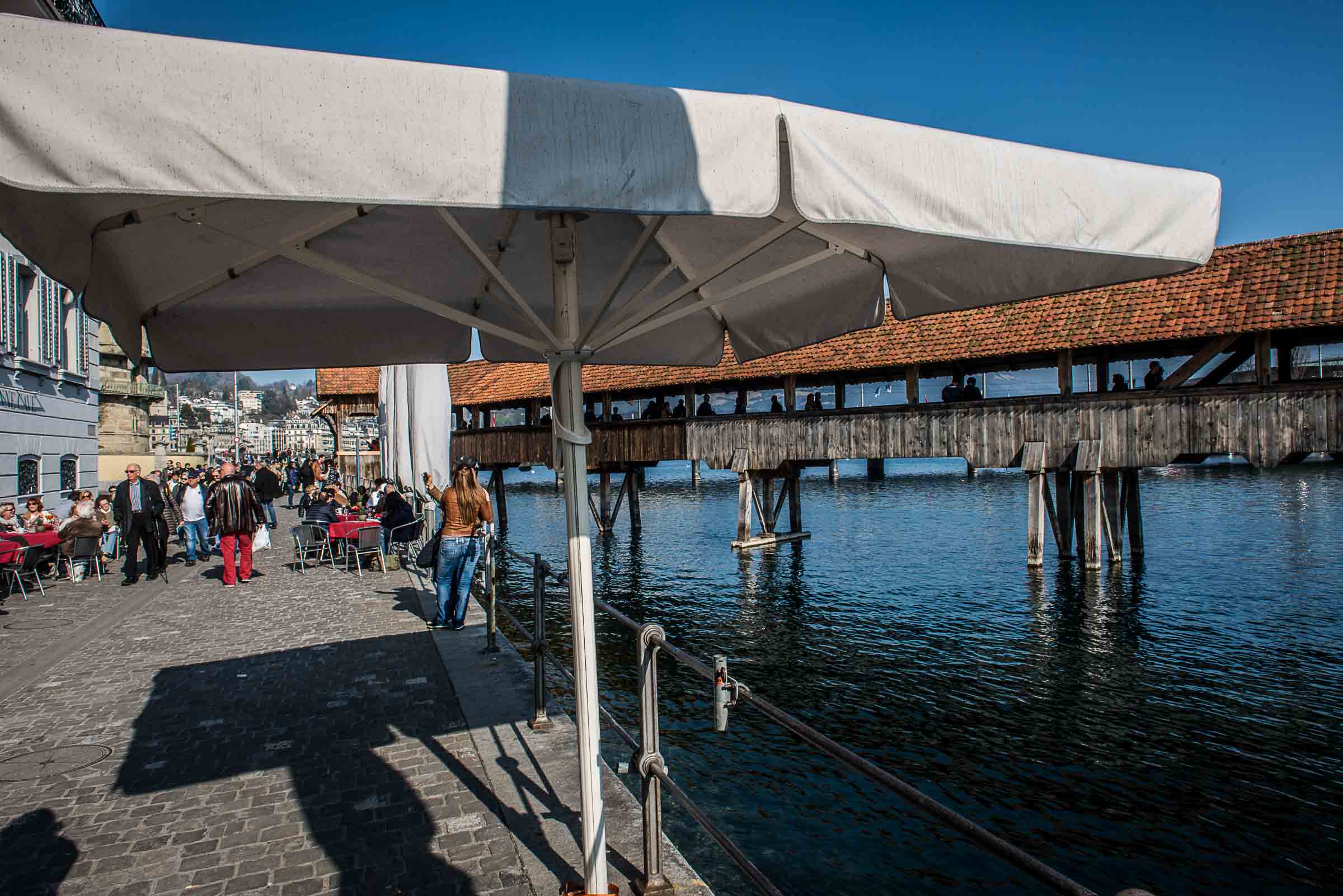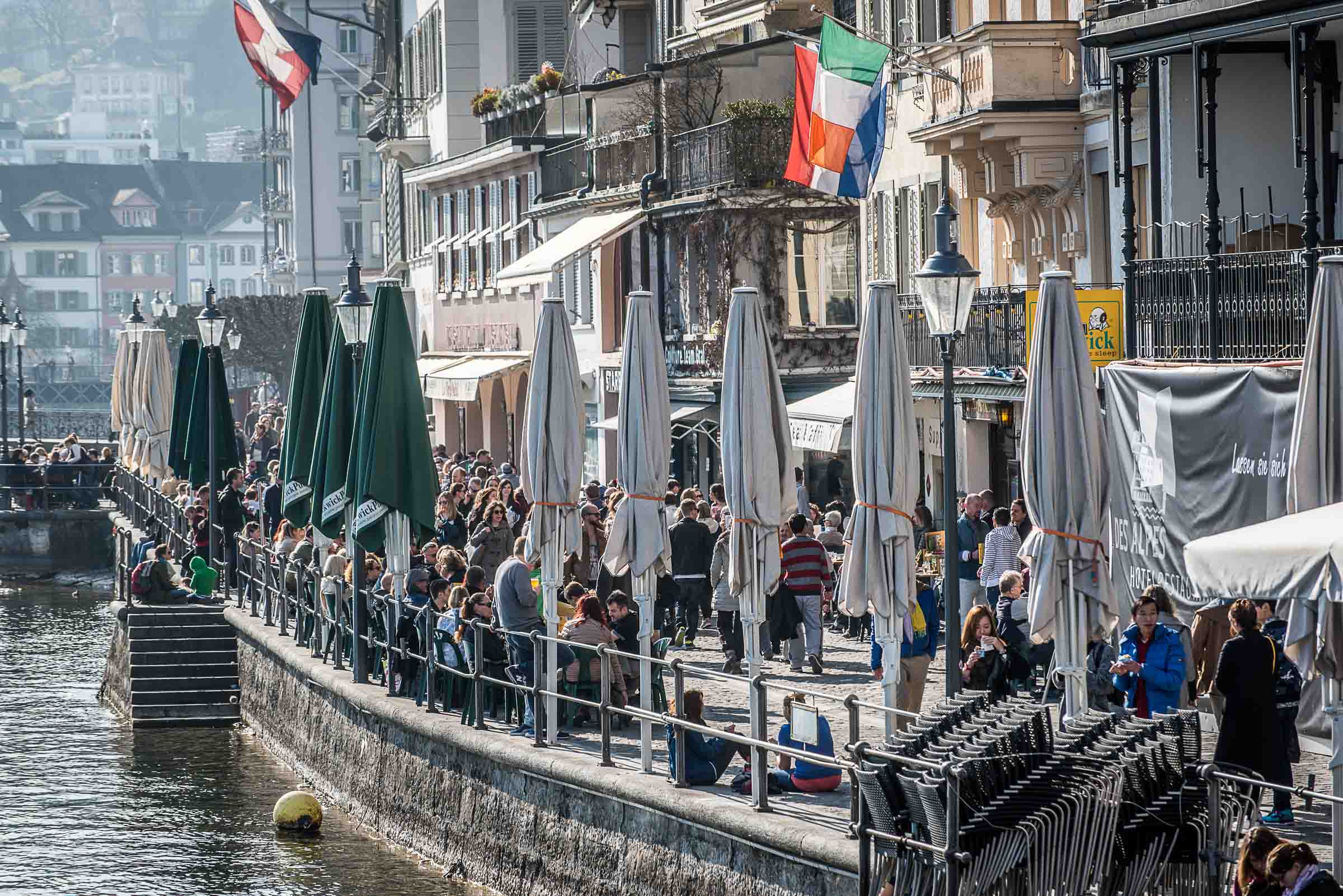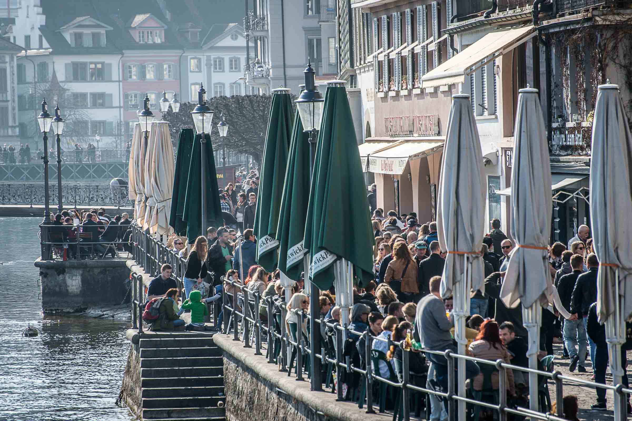 Die Wirte in den Boulevard-Restaurant's entlang der Reuss, haben vorgesorgt und Sonnenschirme montiert.