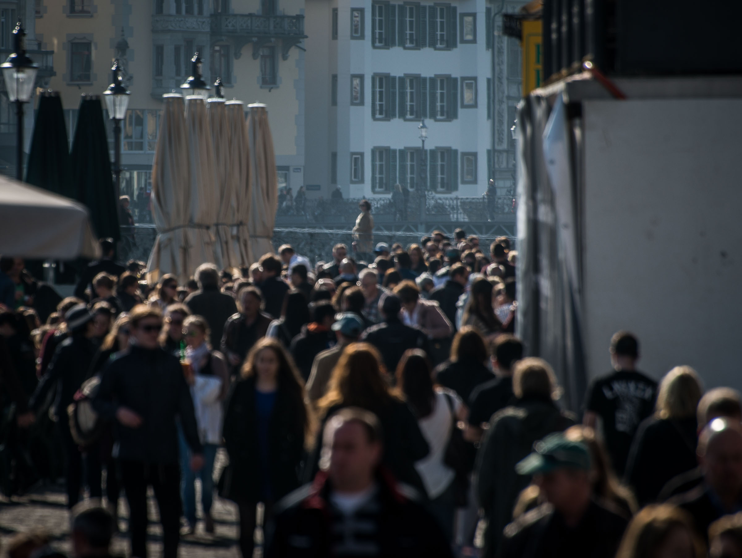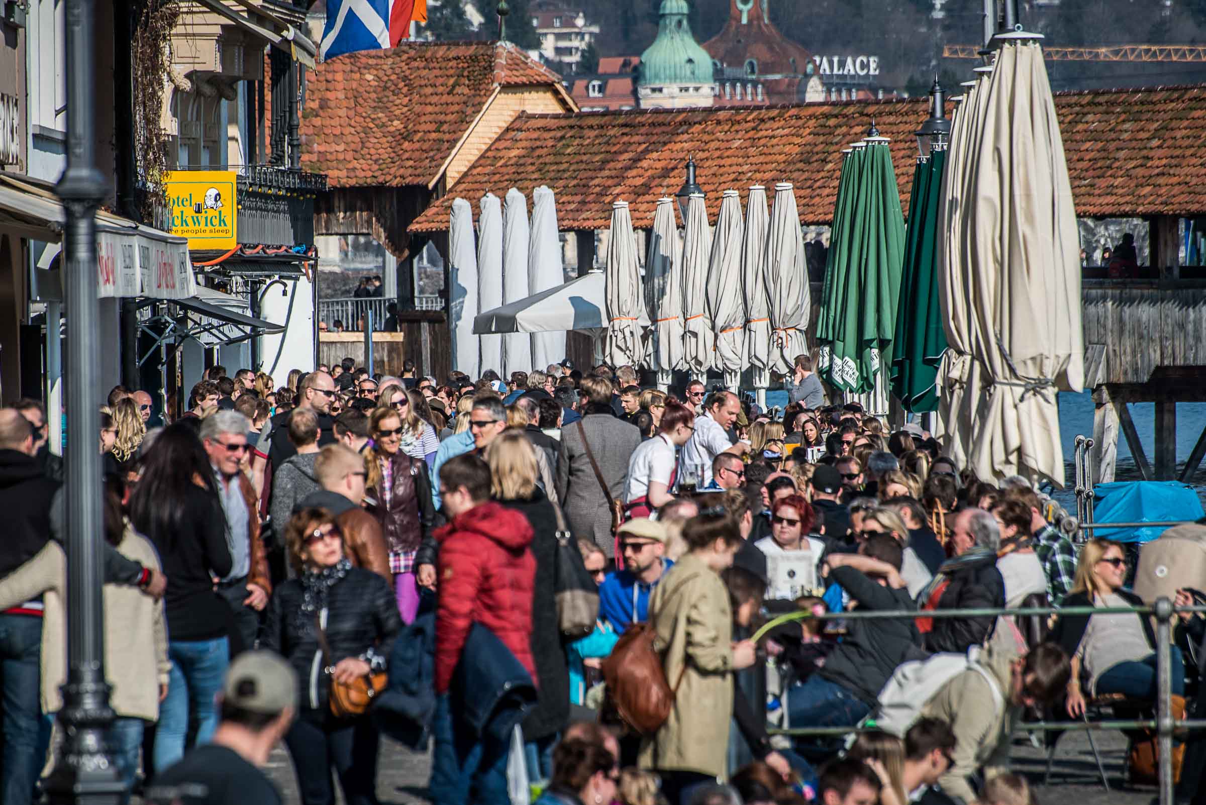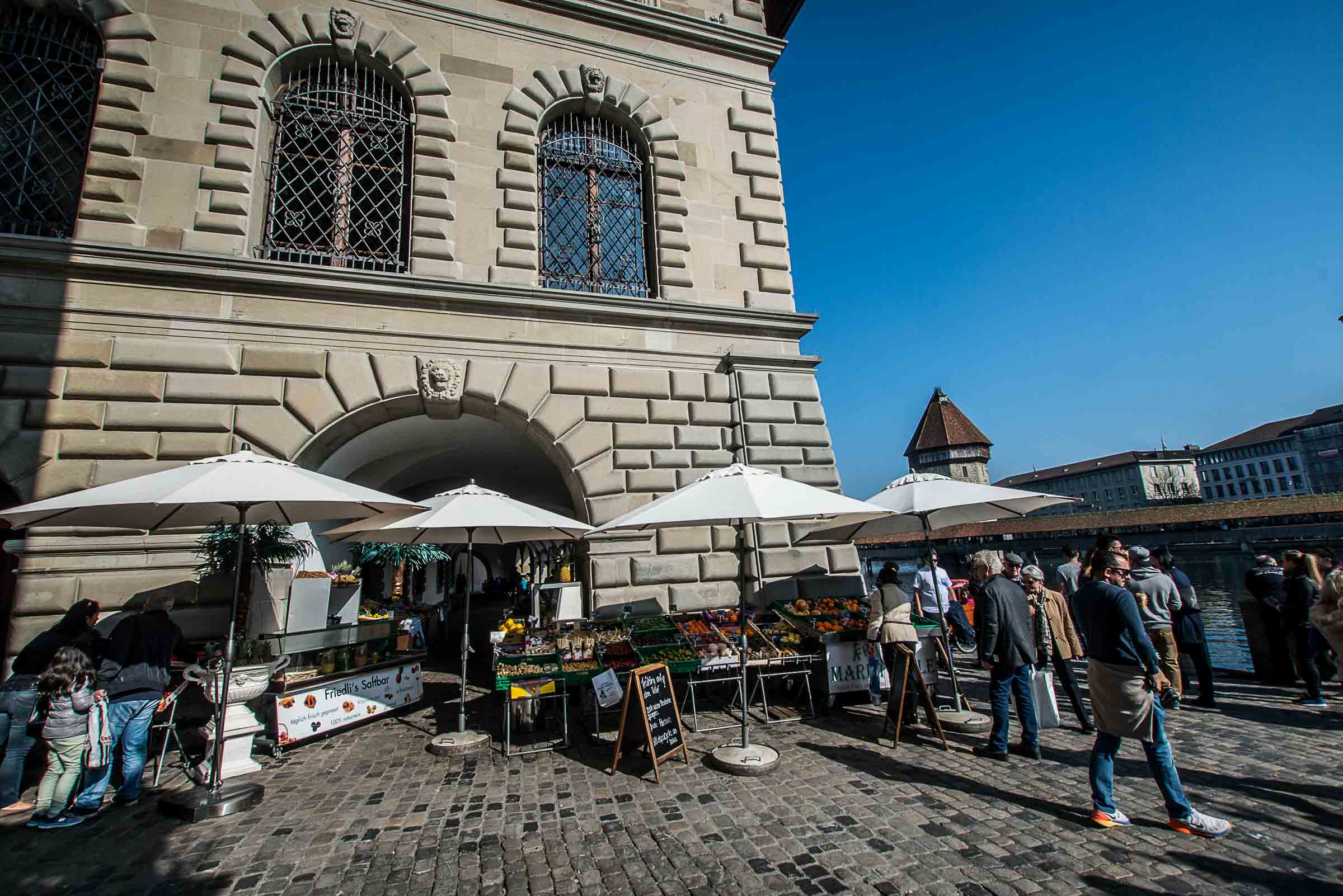 Die Wirte in den Boulevard-Restaurant's entlang der Reuss, haben vorgesorgt und Sonnenschirme montiert.