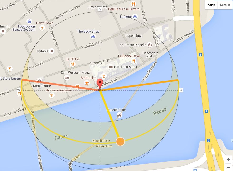 Mit der neuen Regelung die ab 1. April 2016 in Kraft getreten ist, müssen die Gastgeber an der Reuss akribisch aufpassen, dass der Schattenwurf der aufgestellten Sonnenschirme nicht zu gross ist. Dazu gibt’s einen Internet Sonnenverlaufs Kalkulator, der die Schattenlänge, je nach Höhe der Sonnenschirme berechnet. Details anzeigen