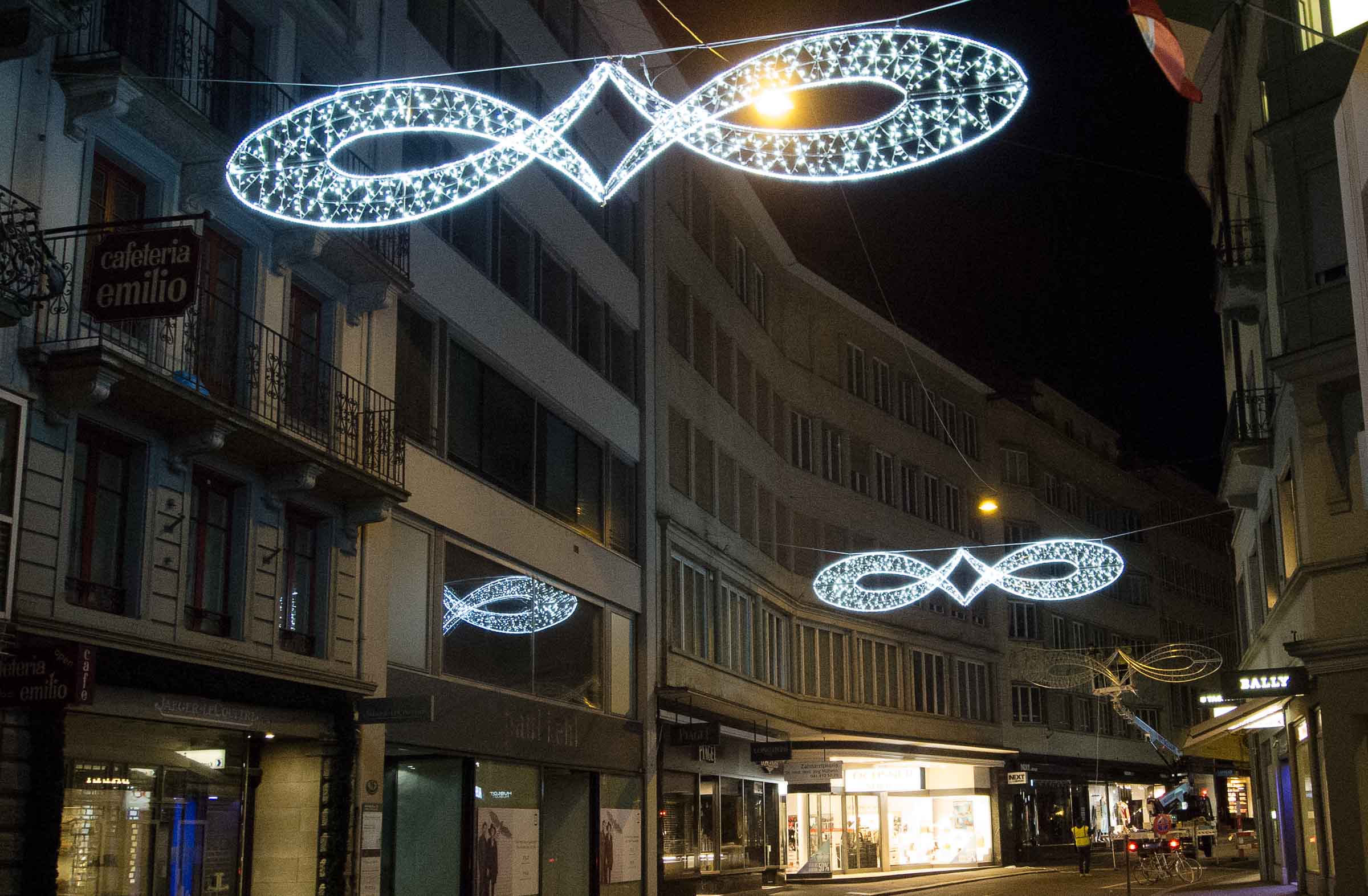 "It looks very nice!" sagt der Mann auf der Hebebühne zur neuen Weihnachtsbeleuchtung am Grendel in Luzern. Und eines wollte er noch wissen, wo er um diese Zeit noch einen Coffee trinken kann.