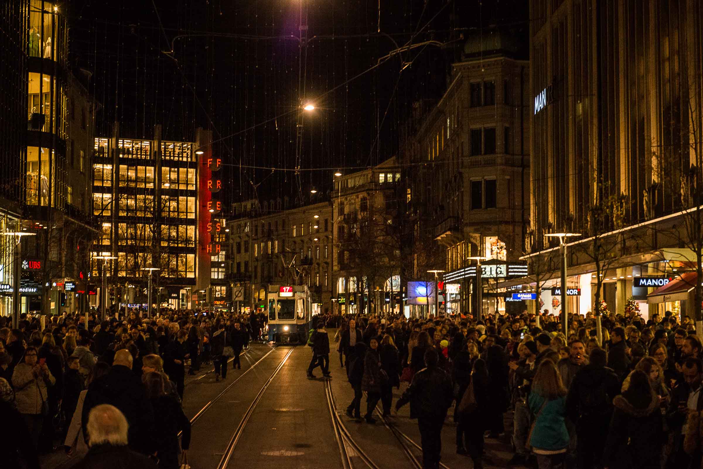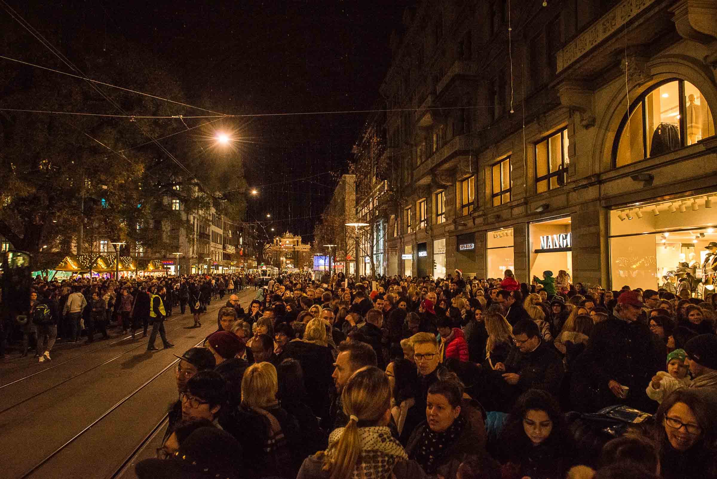 Am Züricher Illumininations Abend, mit Oeffungszeiten bis 22.00 Uhr am Donnerstag, war ein Durchkommen in der Bahnhofstrasse,