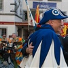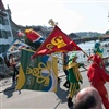 gelangen wir unter den Klängen der Noggeler zum Hirschenplatz. Schon wieder ein Halt. Genau, jetzt erfolgt die Uebergabe an die Zunft zu Safran, aus der der LFK-Präsident dieses Jahr erkoren wurde. Wie wird mein neues Zuhause sein? Wo werde ich schlafen? So viele Fragen.