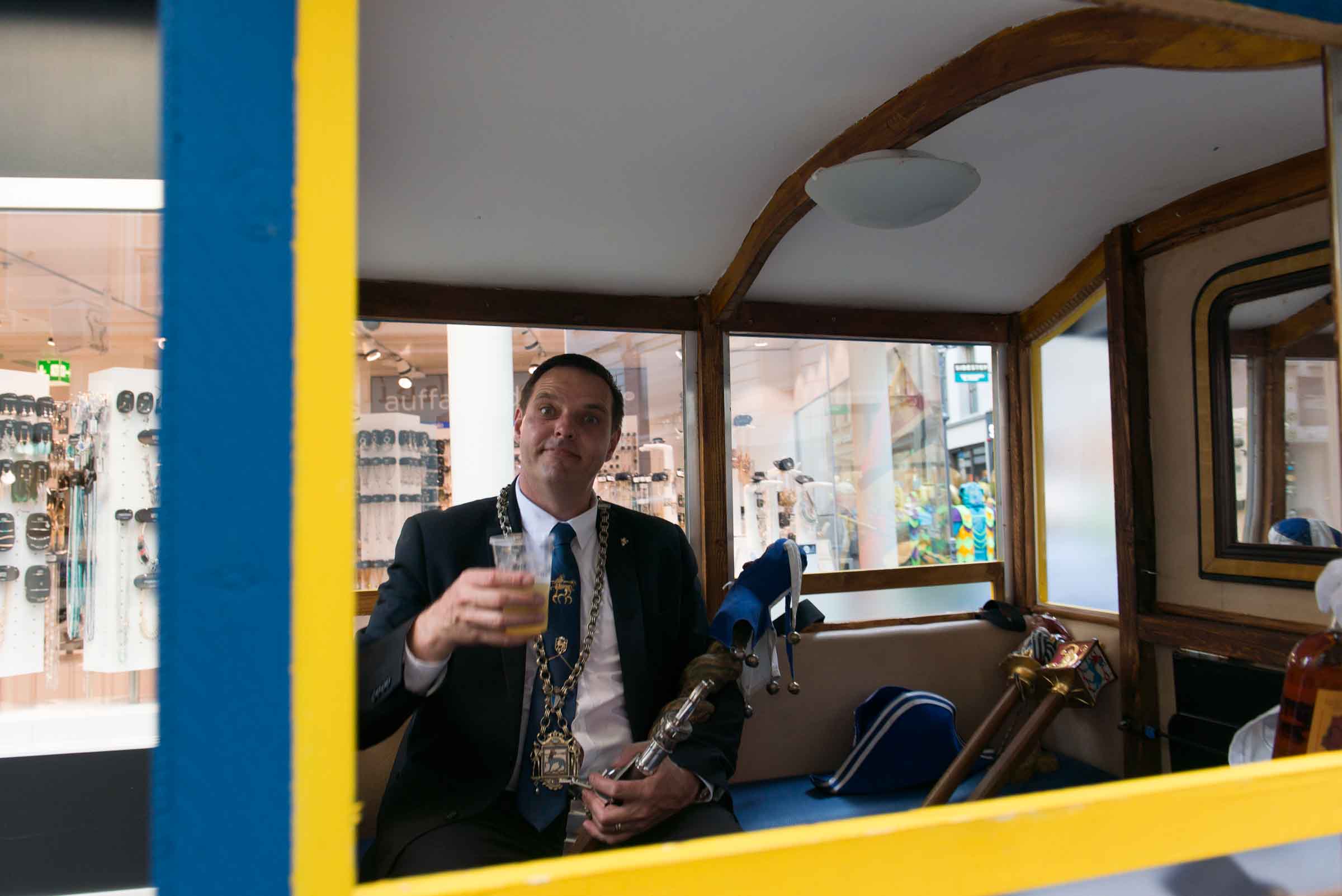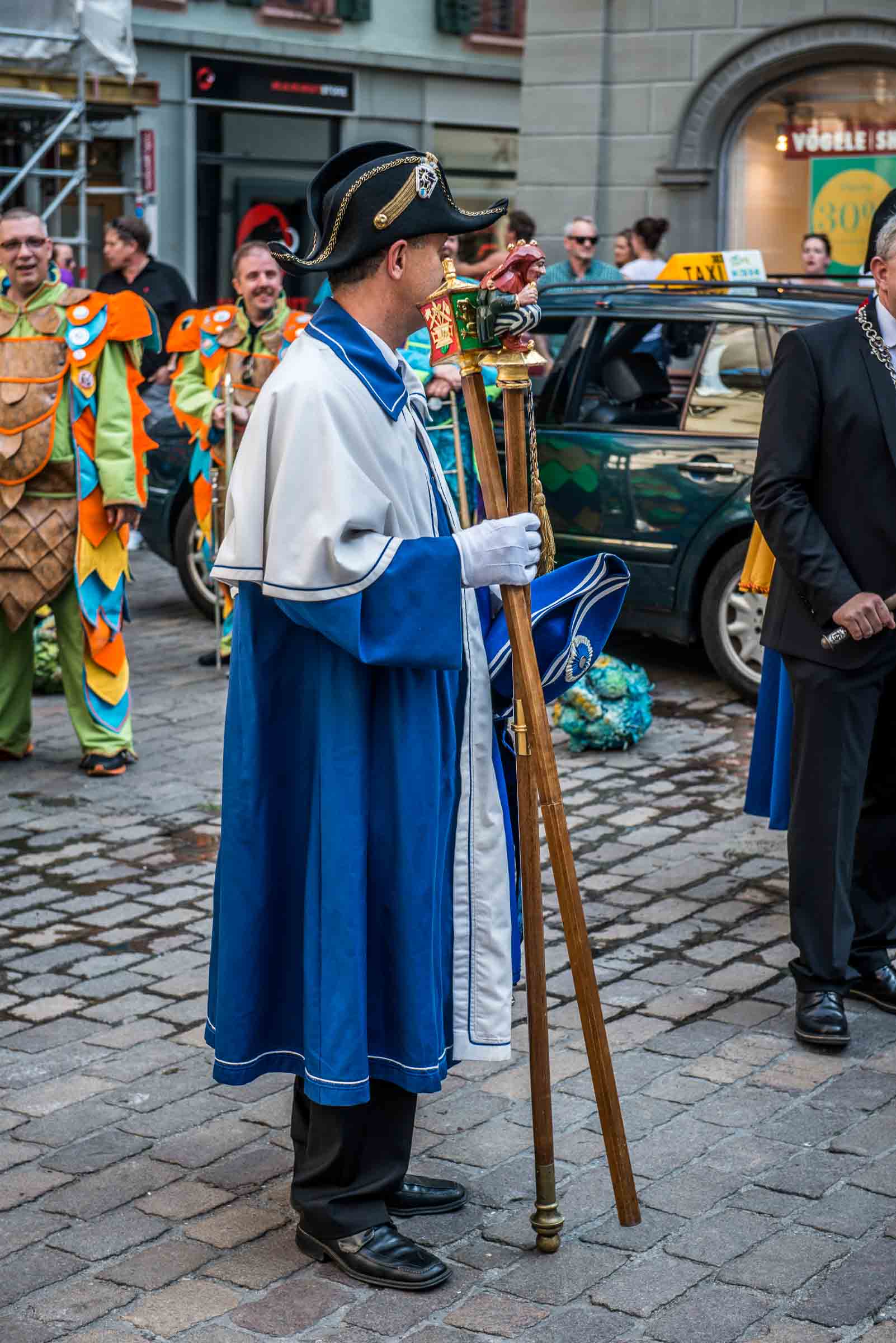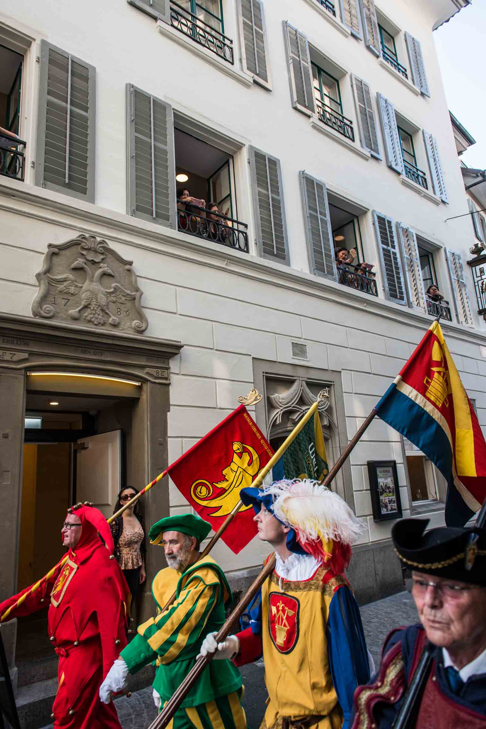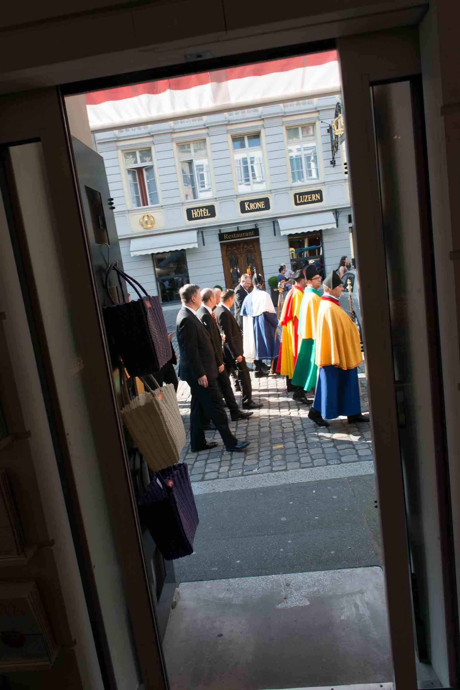 Ich darf nun meinen Schirmherrn verlassen. Der Weibel, Bruno Wespi,  wird  sein Gewand wieder abziehen dürfen. Ich gelange in die Hände des Präsidenten der Fidelitas Lucernensis. Durch die Kapellgasse, mit Halt beim Stadtkessel,