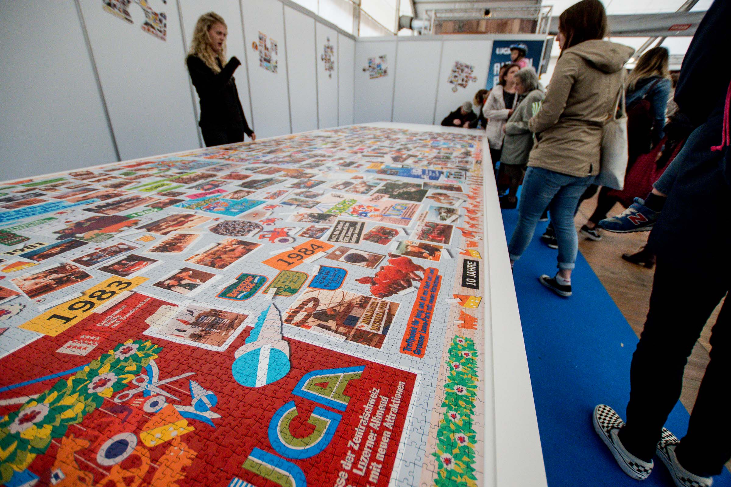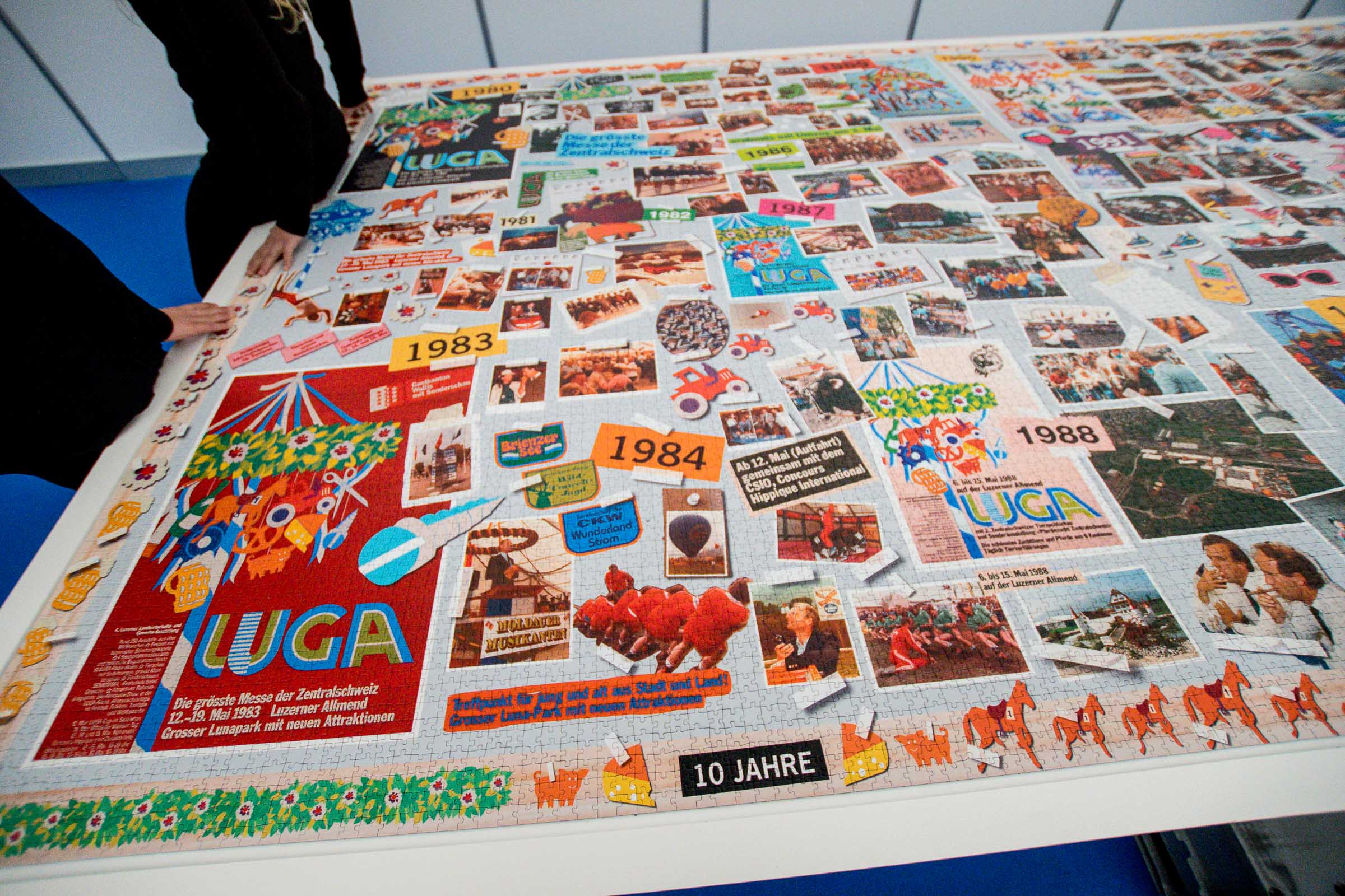 Zumindest im Puzzle, das zum Jubiläum der Luga in der Halle aufgestellt wurde, gibt es eine Lücke. Jeder Besucher oder jede Besucherin kann ein Set von zusammenhängenden Puzzleteilen am Stand abholen und versuchen, seine Teile zum Gesamtwerk zusammen zu stellen.