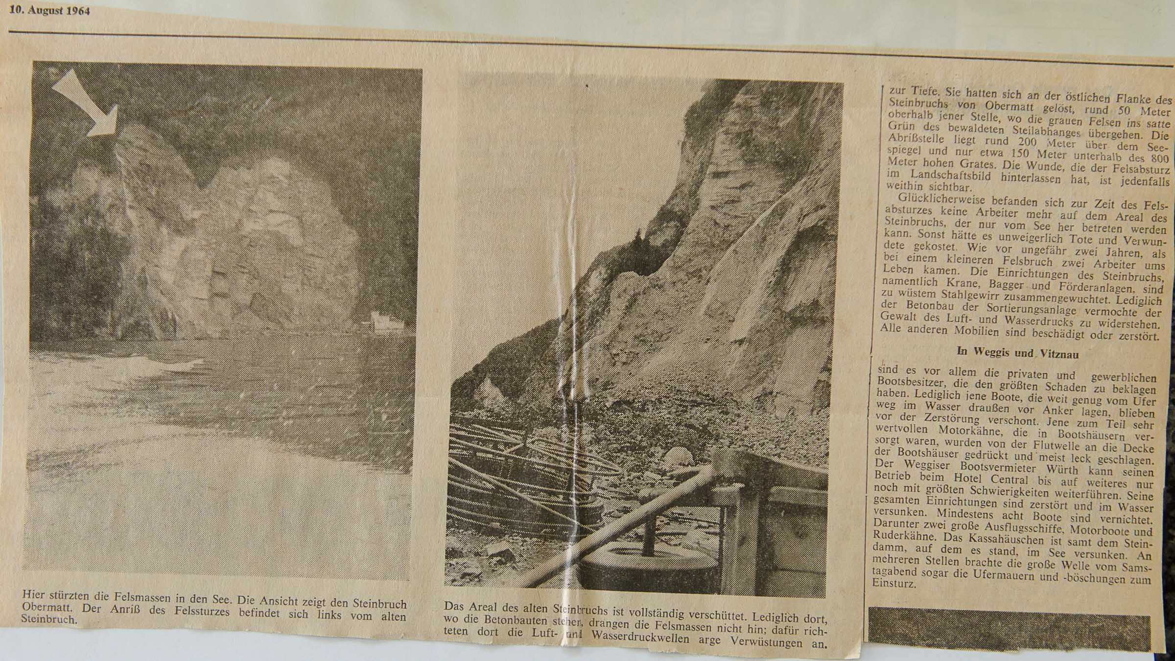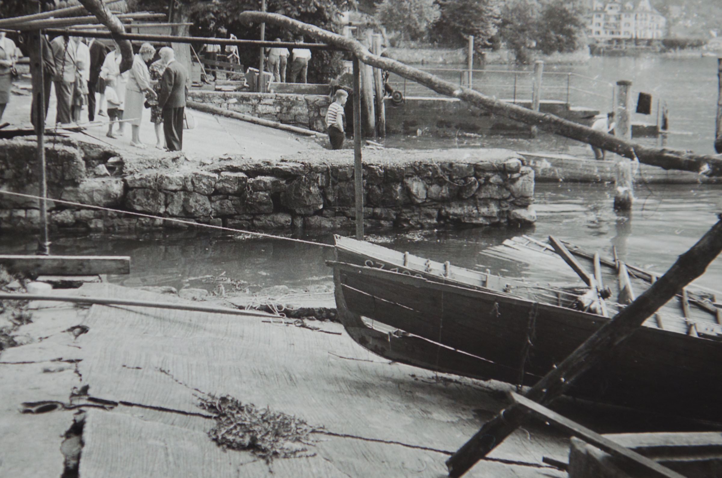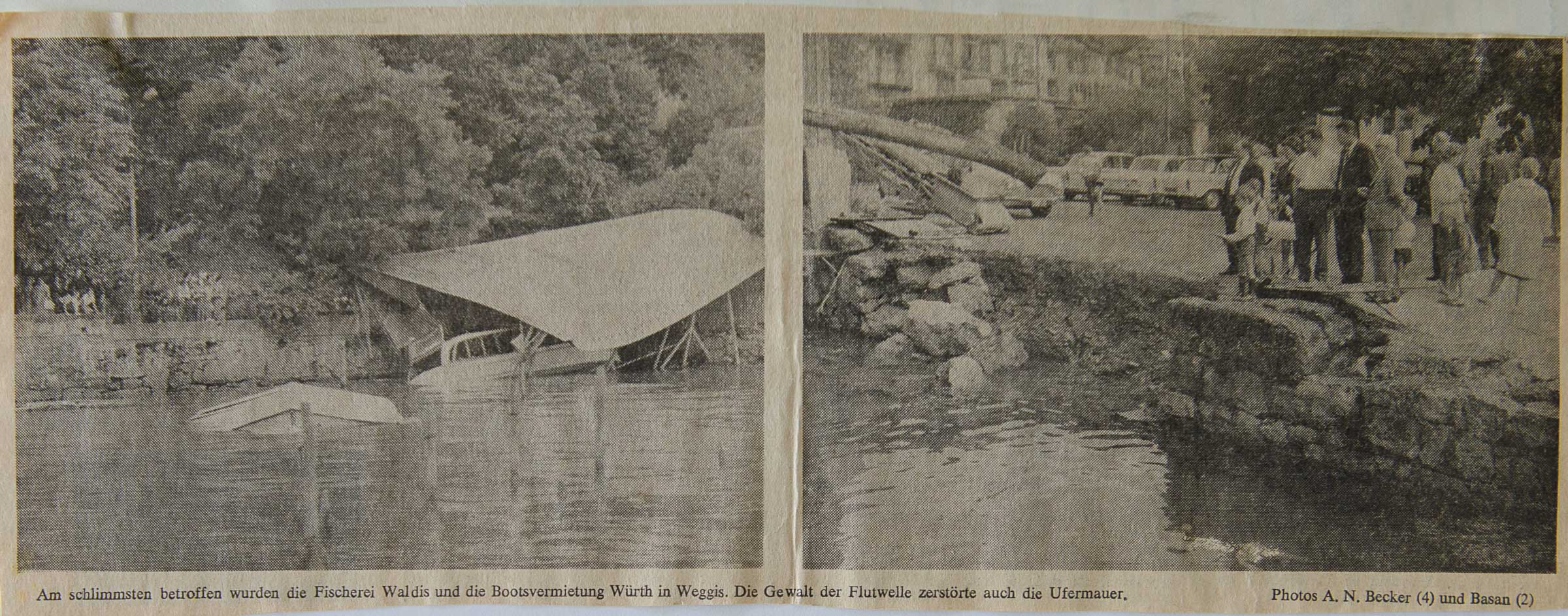 Weggis war am schlimmsten betroffen. Der Schiffslandesteg, der aus Beton und Eisen gebaut war, wurde von der zurückflutenden Welle weggerissen. Der Seegrund ist dort ca. fünf bis sechs Meter tief. Für einen Augenblick konnte man auf den Seegrund sehen.