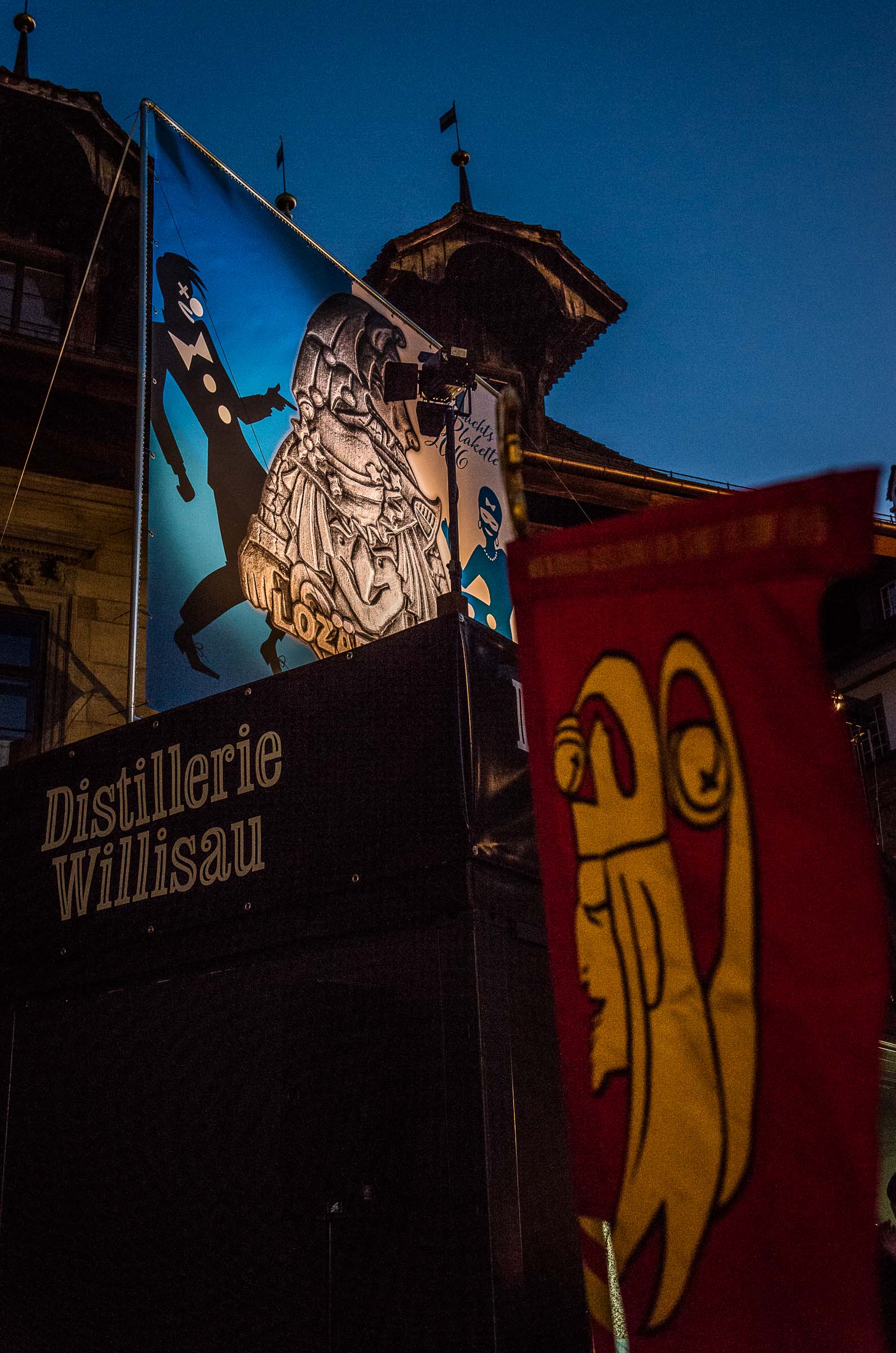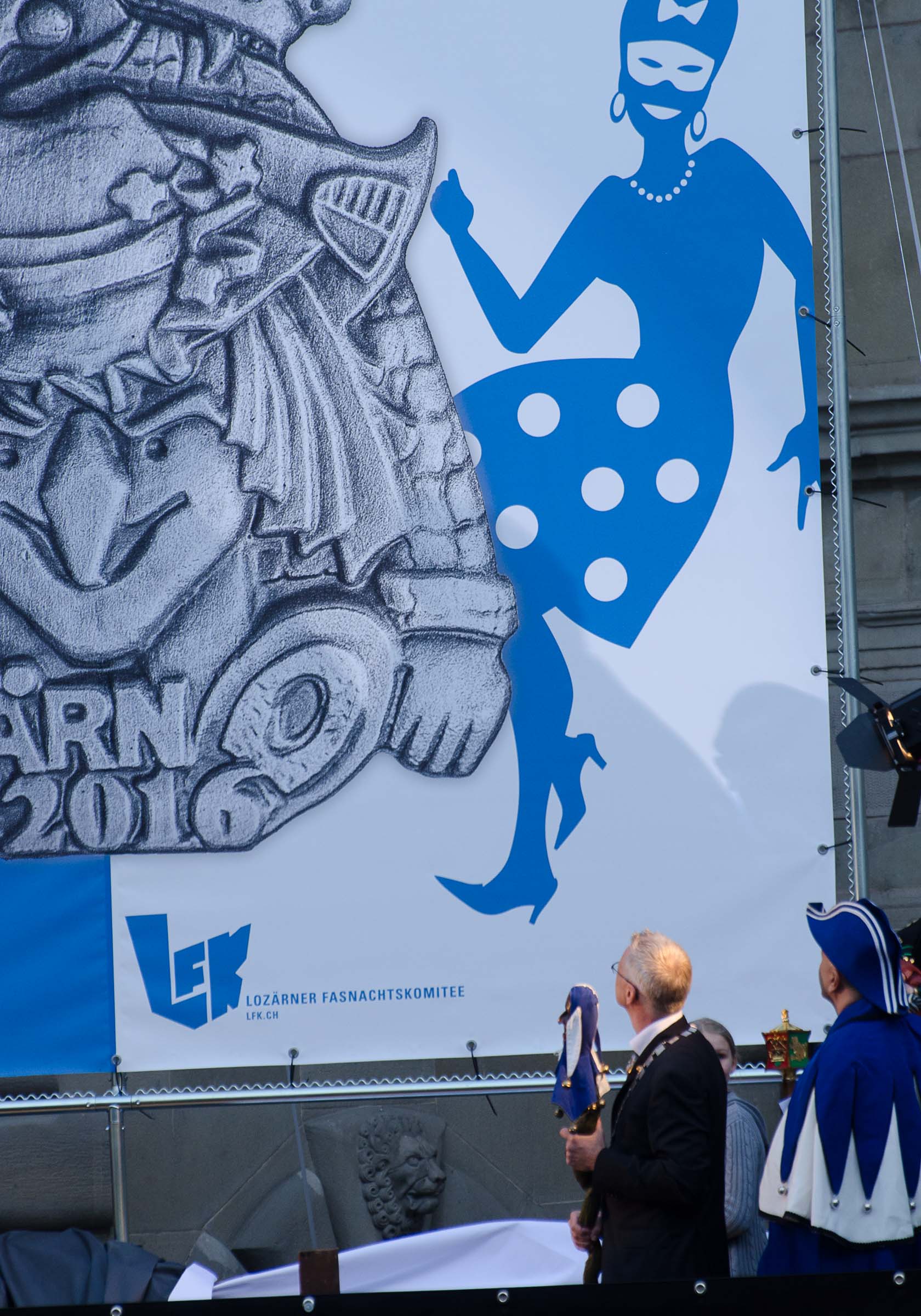 Der Künstler gibt der Plakette den Titel „zum frässe gern“. Die Plakette zieren zwei grundverschiedene Figuren. Zum einen der Fasnächtler, oder auch Fasnächtlerin, welcher gemäss dem Motto des LFK Präsidenten „Mer tanzed dor d`Fasnacht“ bis zu den Löchern in den Sohlen und bis zur Erschöpfung durchgetanzt hat. Die andere Figur, ein fasnächlicher Hund, der sich liebevoll seiner annimmt, und wer weiss, mit einem Augenzwinkern heimbringt zu seinem Frauchen, oder Herrchen? Dass der Vierbeiner dem Hund aus dem Zunftwappen der Fidelitas ähnlich sieht, ist kein Zufall! Auch wenn die Protagonisten der Fasnacht aus verschiedenen Ecken stammen, so haben sie doch ein gemeinsames Ziel, zusammen eine tolle Fasnacht zu feiern.