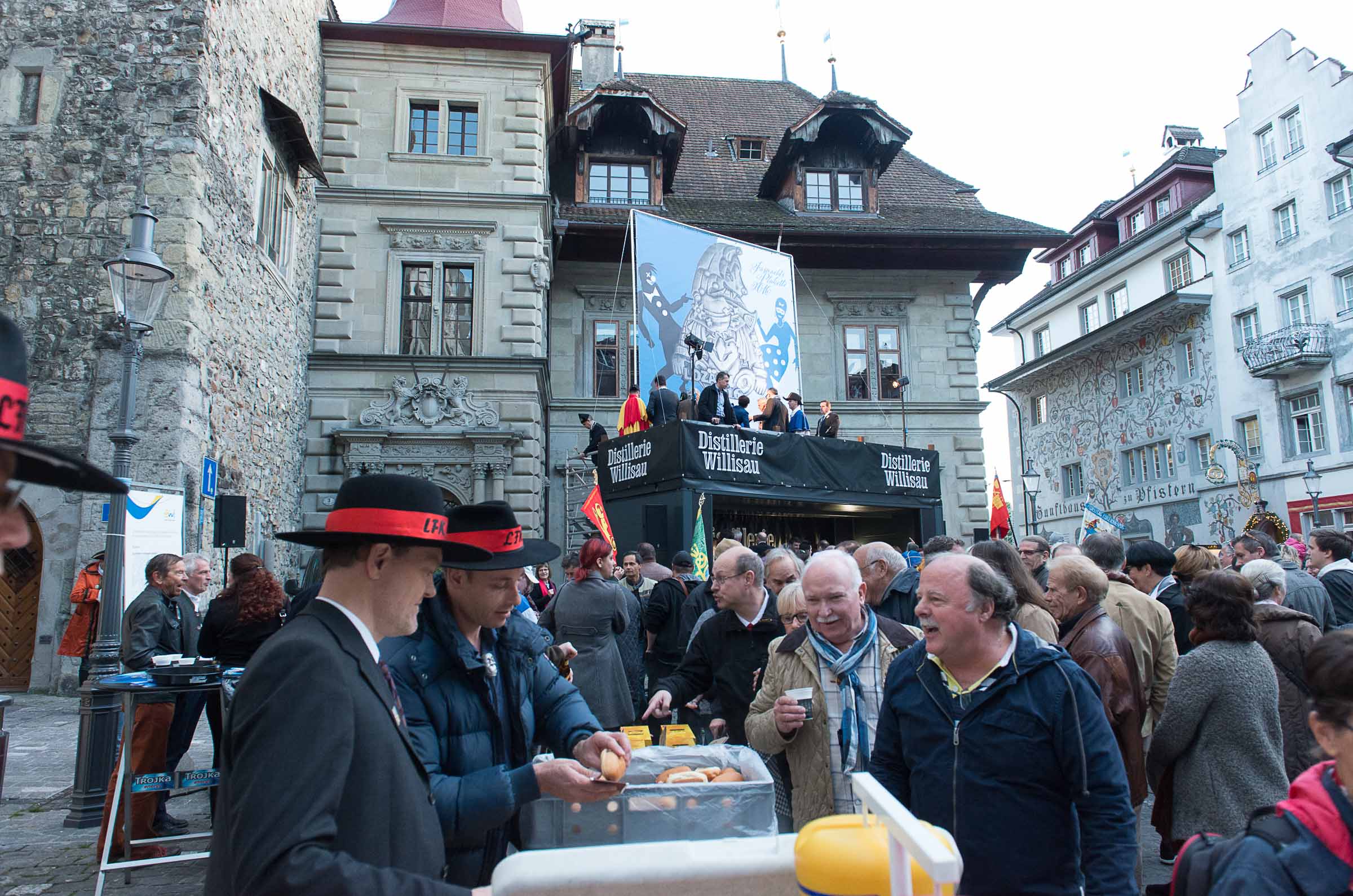 so intensiv an der Fasnacht teilnehmen wie er es gerne möchte. Vorallem die Fasnacht selber verlangt von ihm eine sehr intensive Präsenz am Arbeitsplatz. Während dieser Zeit kann er sich nur sporadisch ins Fasnachtsgeschehen stürzen. Aber kaum ist die Fasnacht vorbei, ist er dann (meistens) in Gedanken plakettenmässig schon wieder mitten drin. Er versucht also die Fasnacht ohne Pauken und Trompeten zu bereichern..