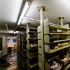 Auf vier Stöcken stehen die Metallgestelle. In der internen Cafeteria ist die Farbe bunter, jedoch mit der gleichen Aufgabe. Die Stützen müssen auf jedem Stockwerk am genau gleichen Ort stehen, damit die Tragfähigkeit während der Lagerung der Bücher im Haus gewährleistet wird. Sonst kamen die Jahresbände des Vaterlands, der neuen LZ, Luzerner neusten Nachrichten LNN, Chemische Rundschau und Technische Rundschau in Schieflage und liegen auf der alten Tante (NZZ).