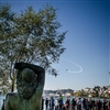 Die Dame sitzt am General-Guisan-Quai in Luzern und schaut Richtung Himmel. Die Air & Space Days 2017 im Verkehrshaus finden heute statt, vor ihr stehen die Leute dicht gedrängt am Ufer des Vierwaldstättersees.