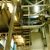 Ein Stockwerk tiefer unter der Maschine: Das Papier der ersten Rolle ist aufgebraucht. Automatisch gibt’s Ersatz, die restlichen Meter fallen in den Auffangbehälter und die neue grosse Rolle wird eingespannt.
