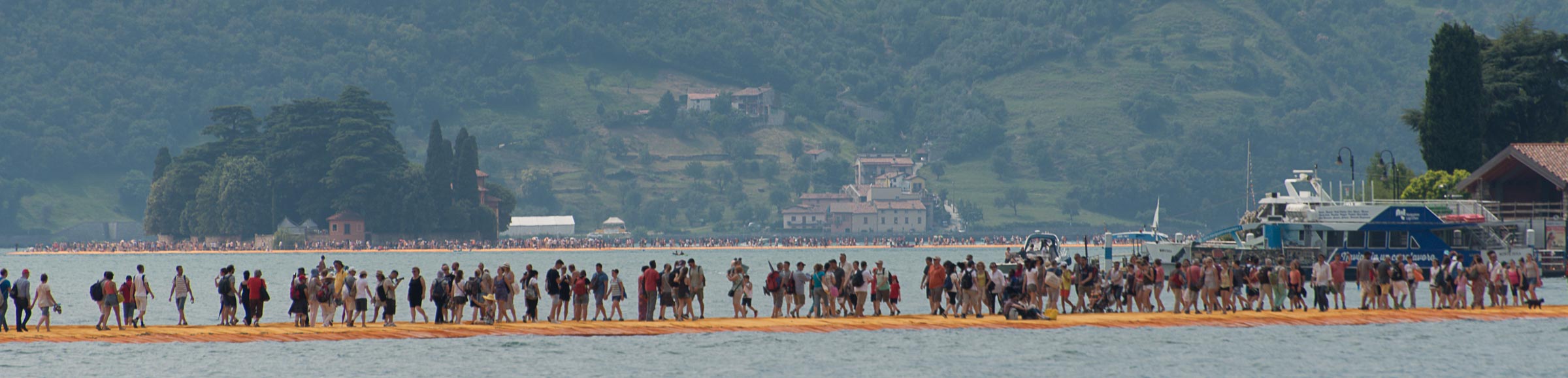 Während fast drei Wochen wurde auf dem norditalienischen See Iseo, der Weg über den See geöffnet. Über eine Million Schaulustige besuchten das vom Verpackungs-Künstler Christo initierte Projekt. Die Idee die zuerst in zwei Ländern gescheitert ist, wurde innerhalb eines Jahres geplant und umgesetzt.