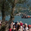 Lange Warteschlangen und 30 Grad im Schatten. Jetzt geht's weiter durch die Gassen, über einen Steg auf den floating pier. Damit nicht zu viele Personen gleichzeitig auf das ohne Geländer im Wasser schaukelenden Pier gelangen, sind pro Stunde höchstens 11'000 Personen zugelassen.
