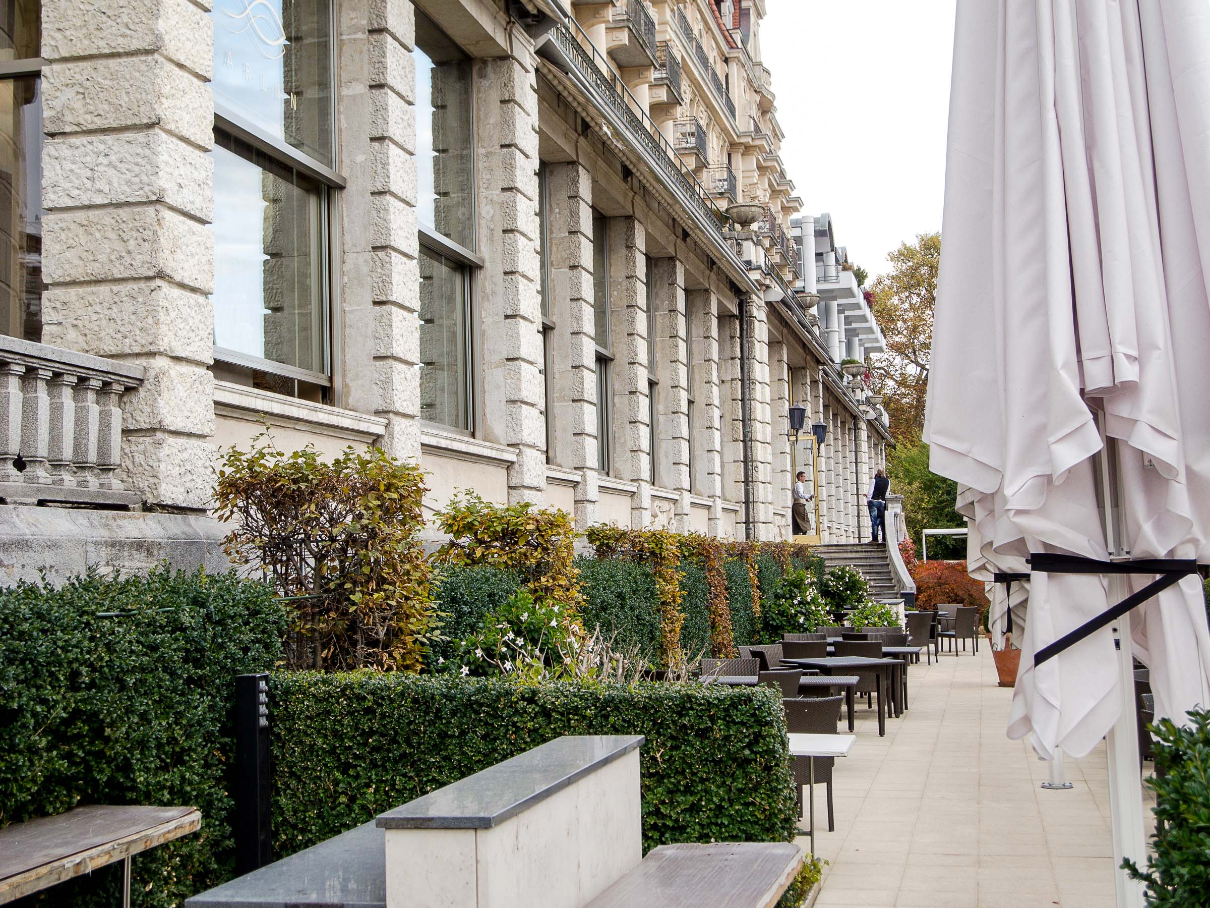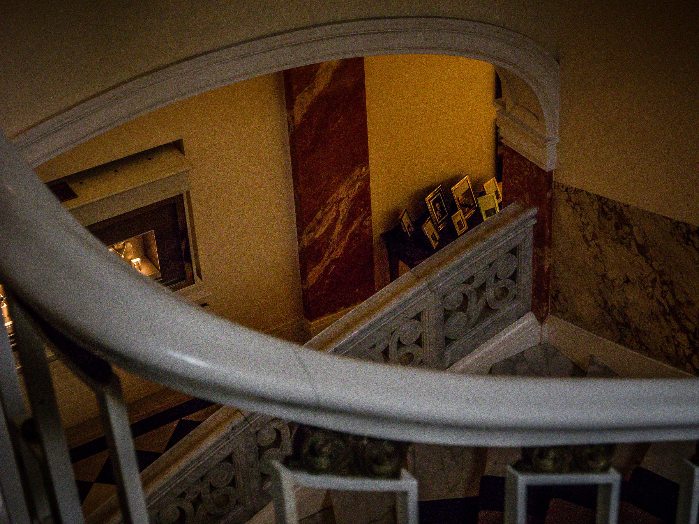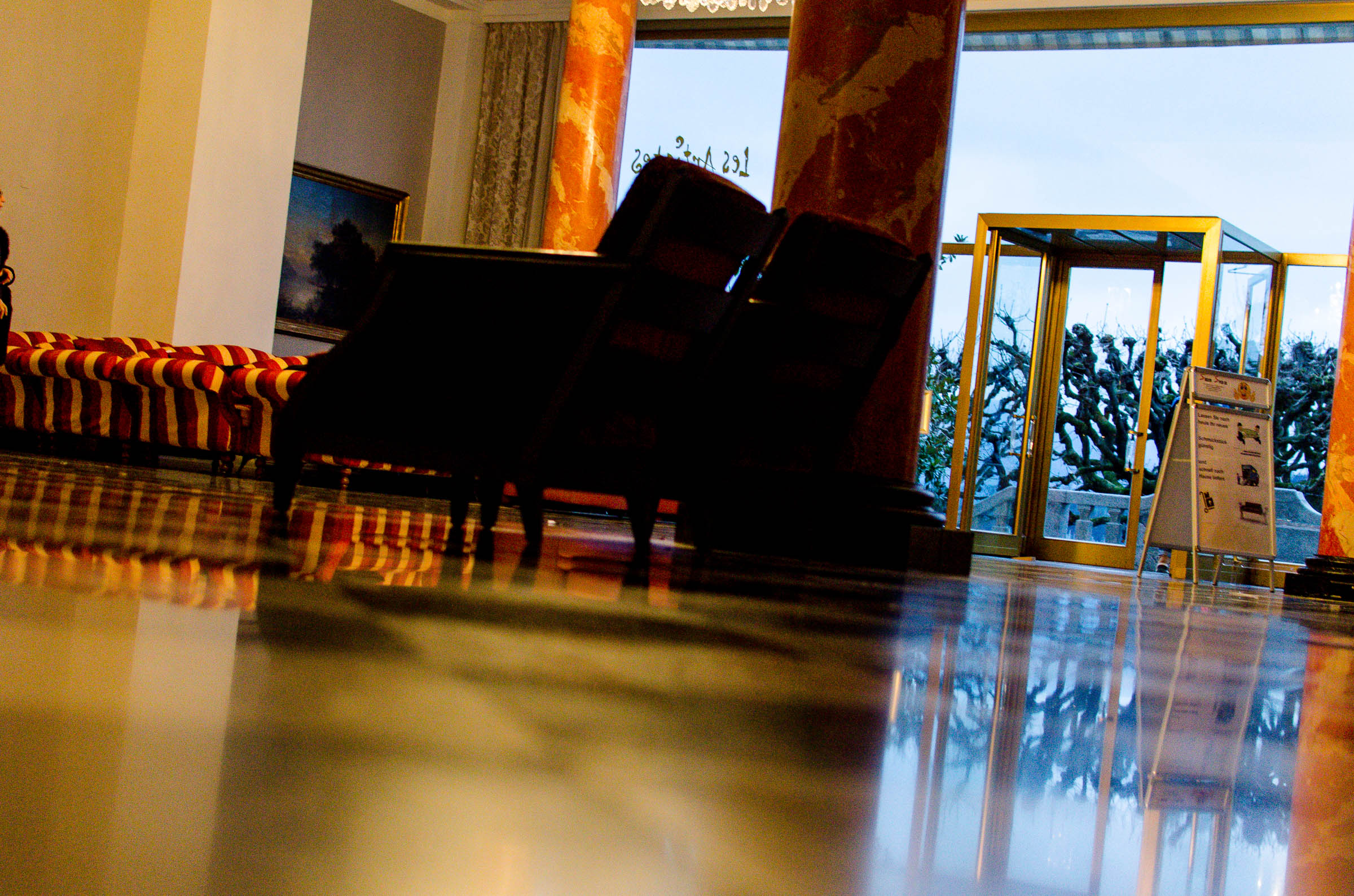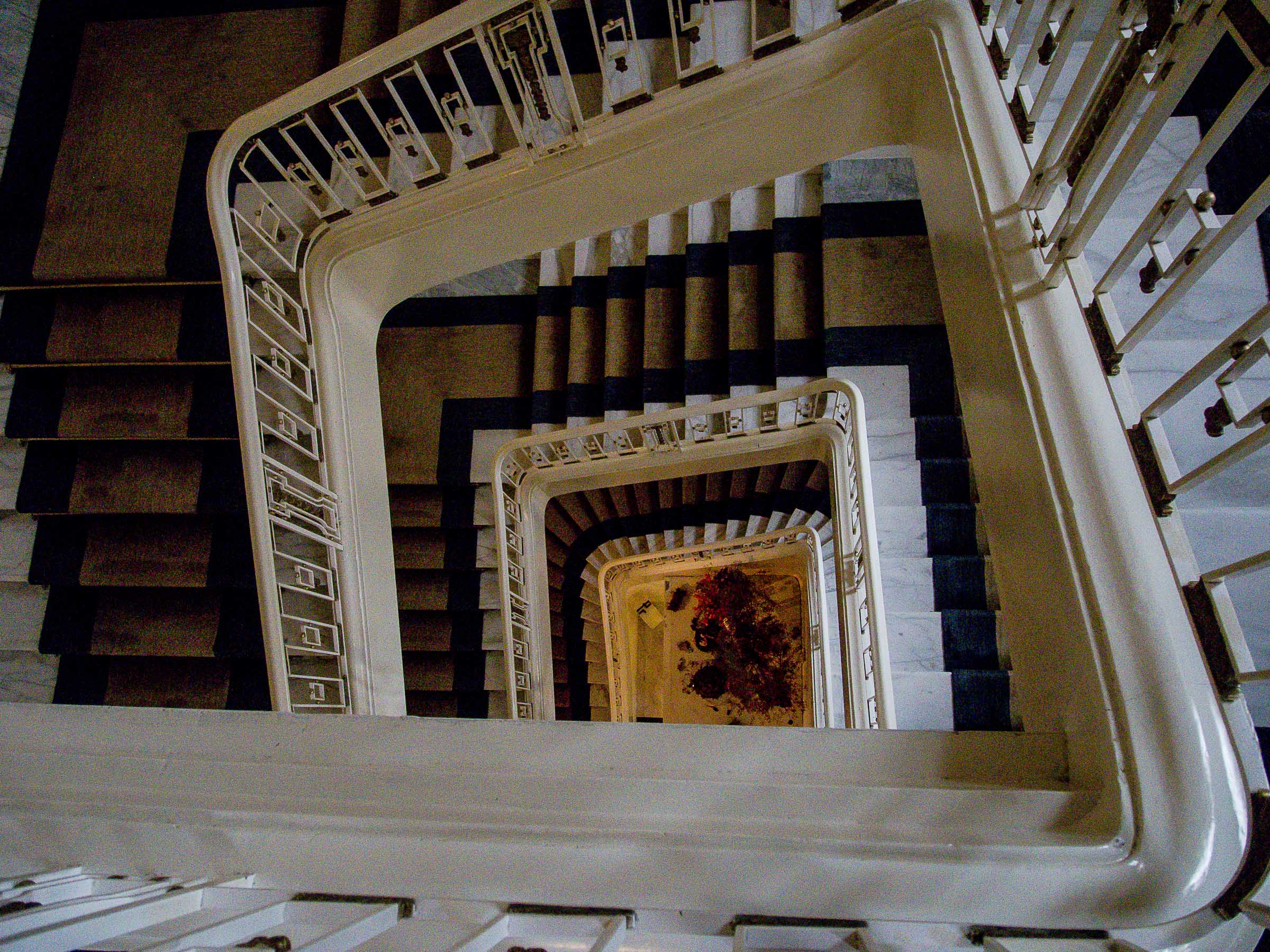 Bis ans Ende des Nationalquais schallt die Musik des Blueballs. Sind die Blues-Rhythmen laut genug, um das Hotel Palace aus dem Dornröschenschlaf zu erwecken? Die Steintreppe versteckt sich hinter einem grünen Pflanzen-Teppich. Die Zeit scheint in diesem Hotel stehen zu bleiben.